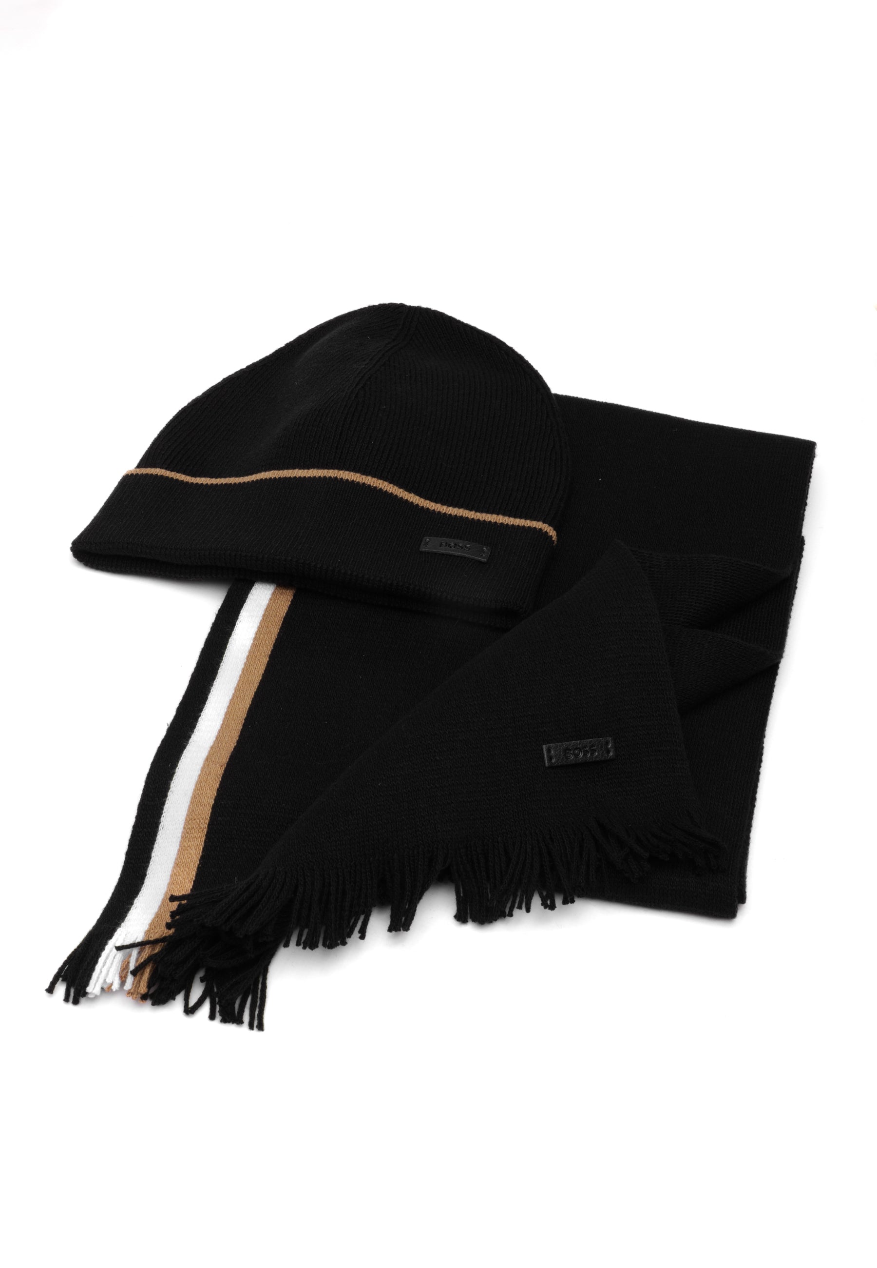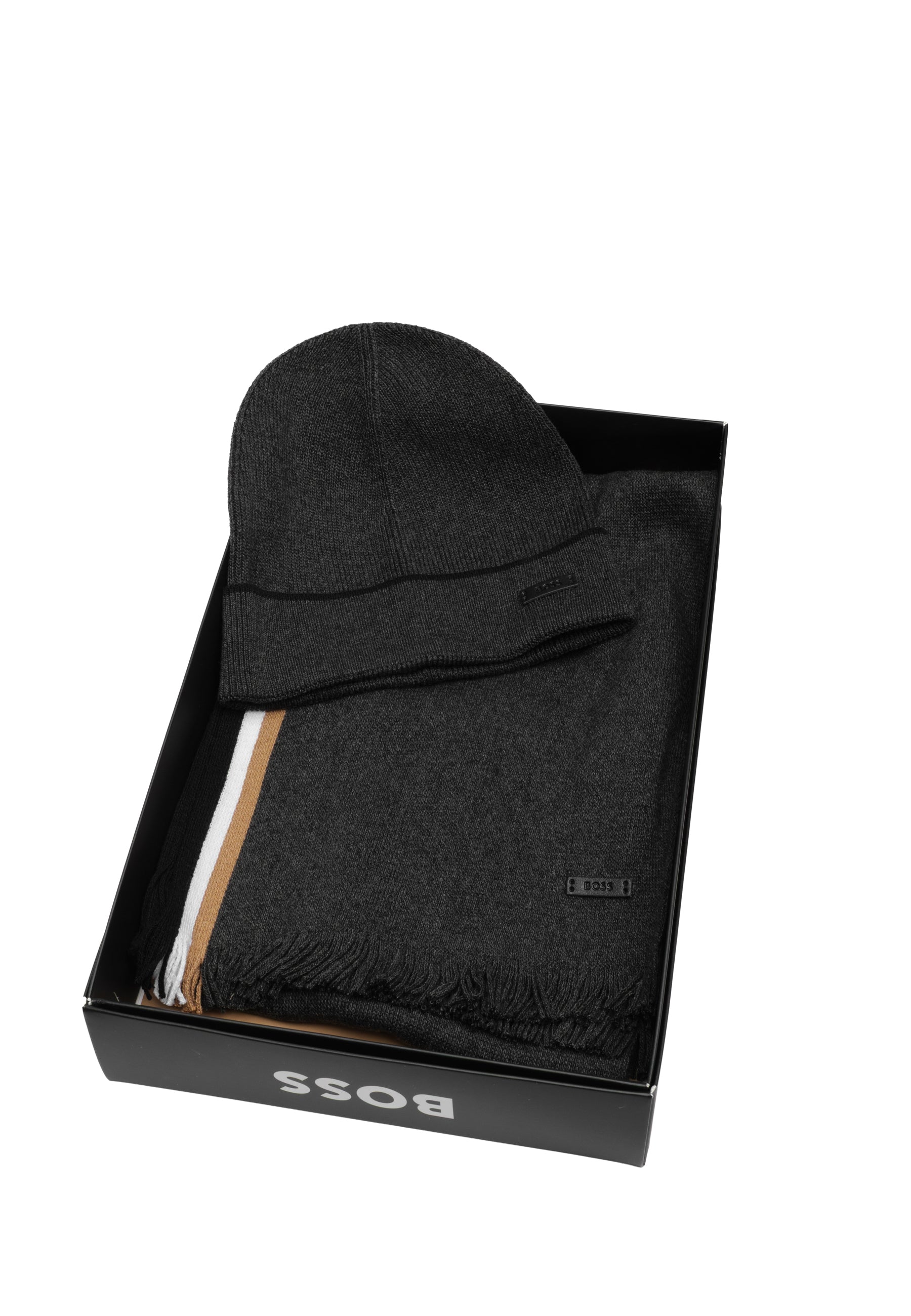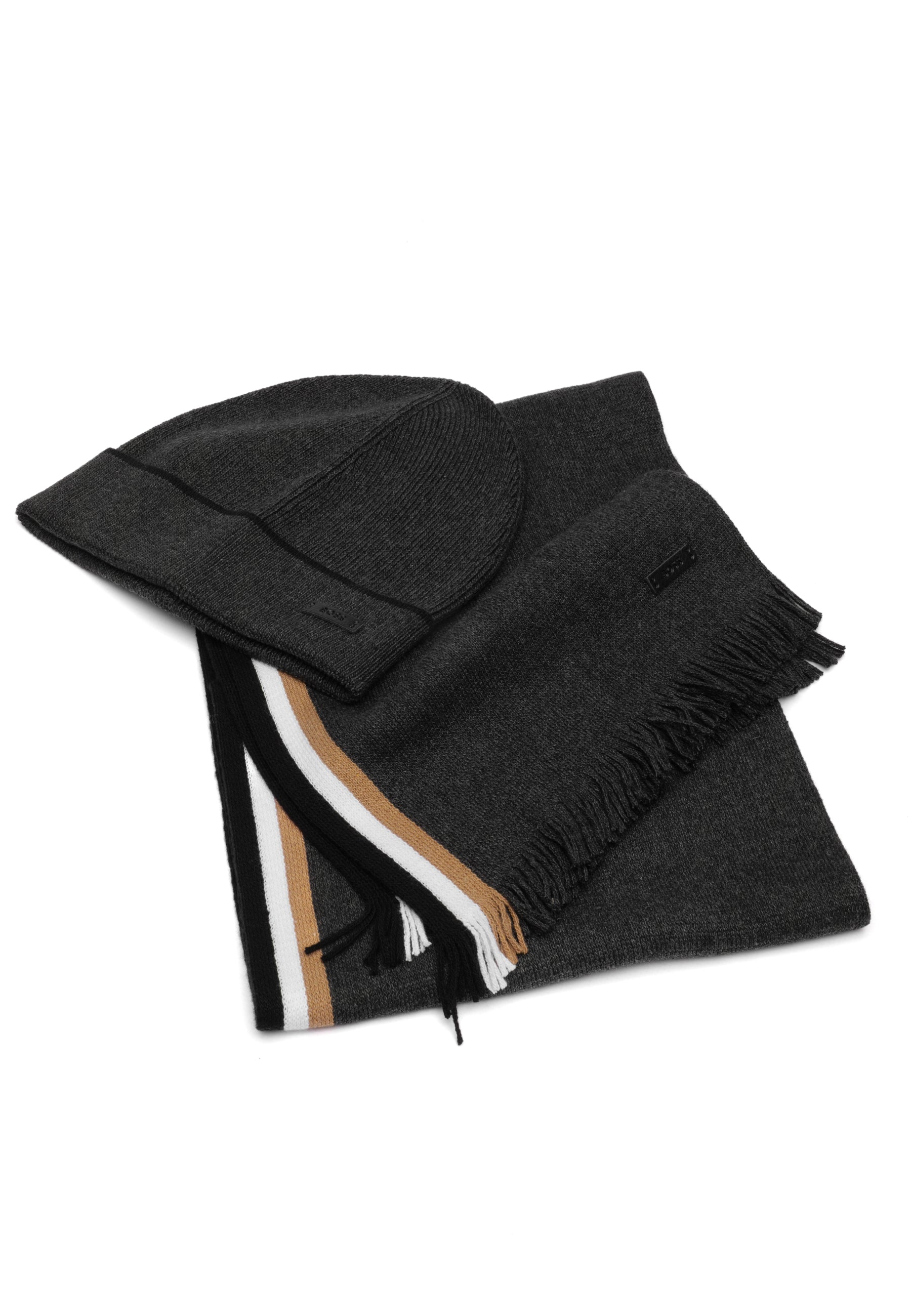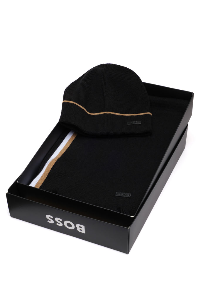Set coordinato BOSS Uomo in misto cotone, ideale per la stagione invernale. Comprende cappello e sciarpa in maglia Raschel, realizzati con materiali di qualità per garantire comfort e calore. Il design coordinato assicura un look coeso e raffinato. Perfetto come regalo per chi apprezza l'eleganza e la praticità negli accessori invernali.