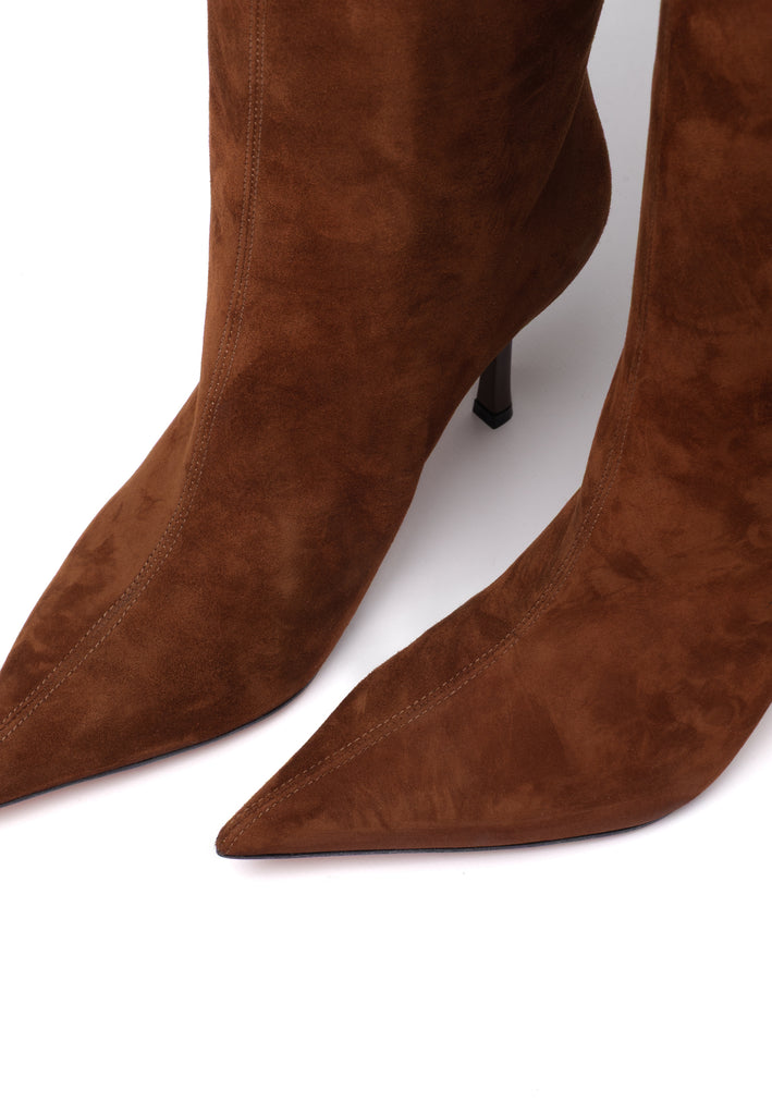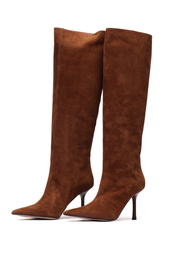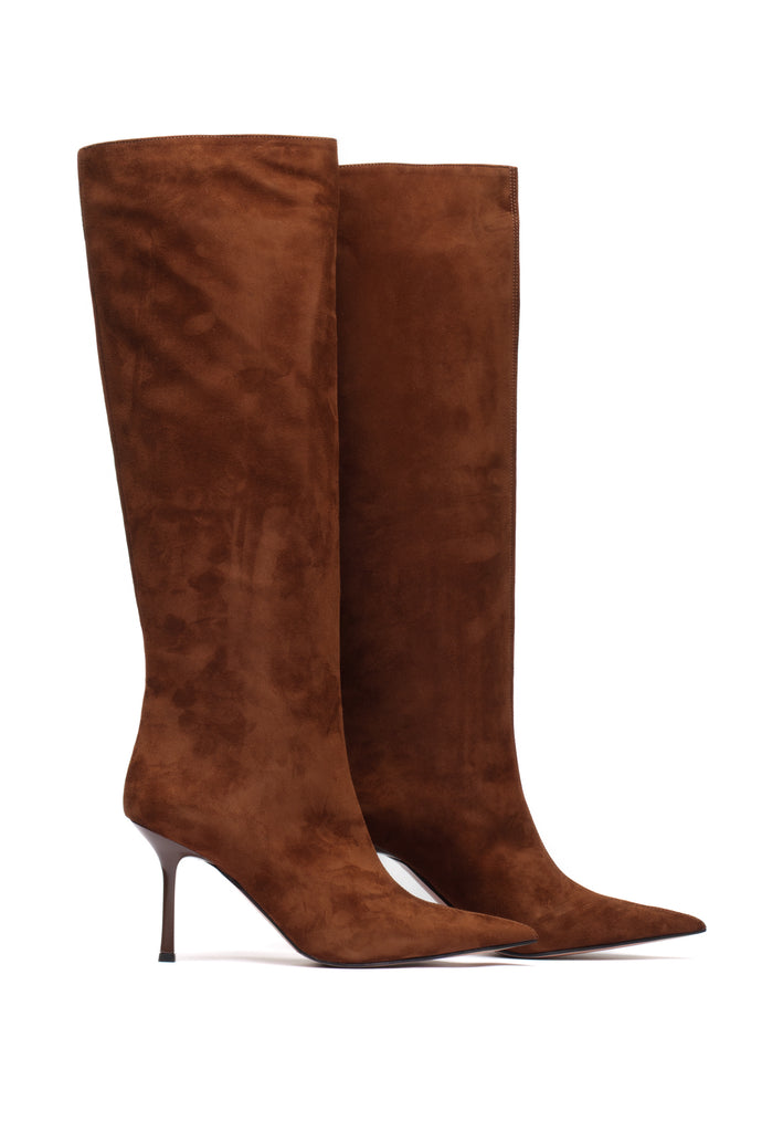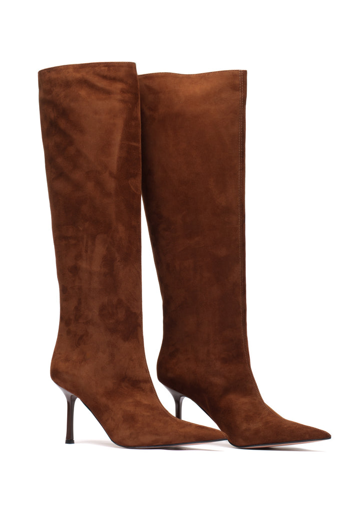 WENDY - Stivale in camoscio castagna dal design elegante e versatile. Realizzato con materiale pregiato, offre comfort e morbidezza naturale. La tonalità castagna si abbina facilmente a diversi outfit, dal casual al più raffinato. Perfetto per chi ricerca qualità costruttiva e stile senza compromessi. Un capo essenziale che valorizza il guardaroba con sobria sofisticazione.