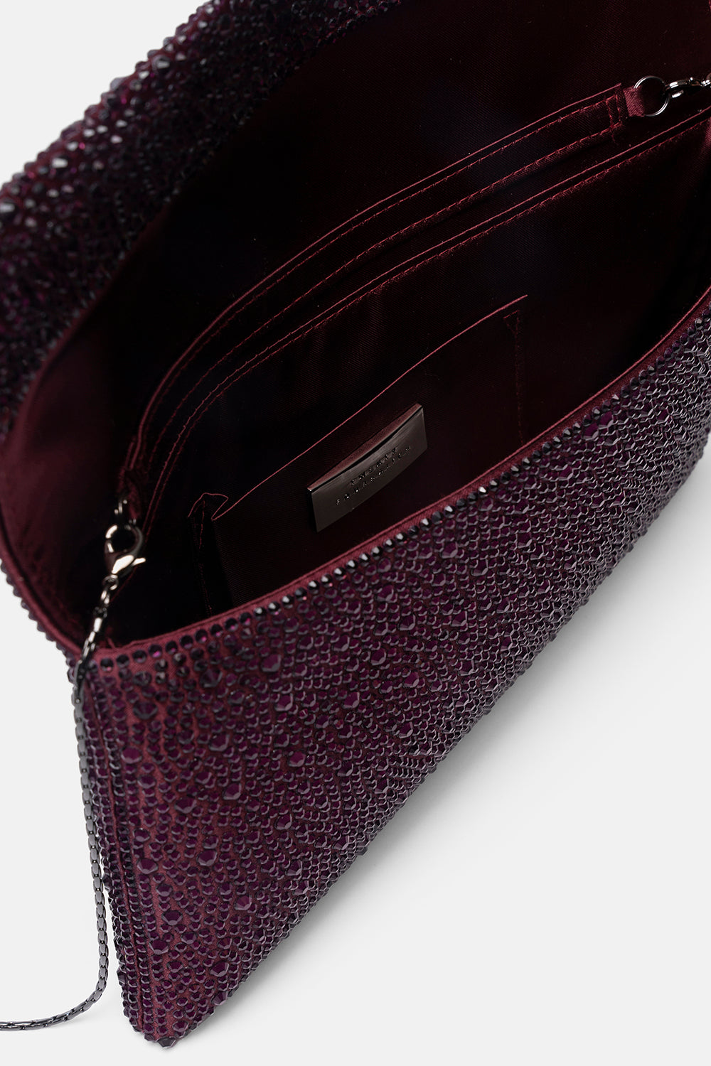 Elegante e scintillante, la pochette Carena è interamente decorata con strass di alta qualità, perfetta per aggiungere un tocco di raffinata luminosità a ogni look serale. La sottile tracolla in metallo unisce funzionalità e stile, garantendo comodità senza sacrificare l’eleganza. Ideale per occasioni speciali, questa borsa unisce artigianalità e design contemporaneo per chi cerca un accessorio distintivo e di classe.