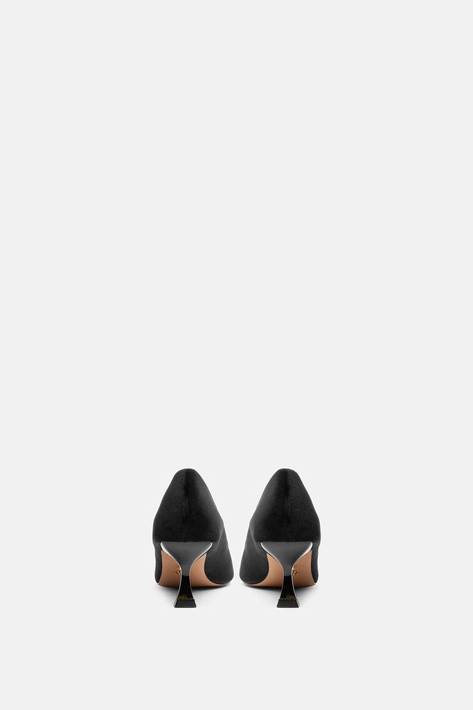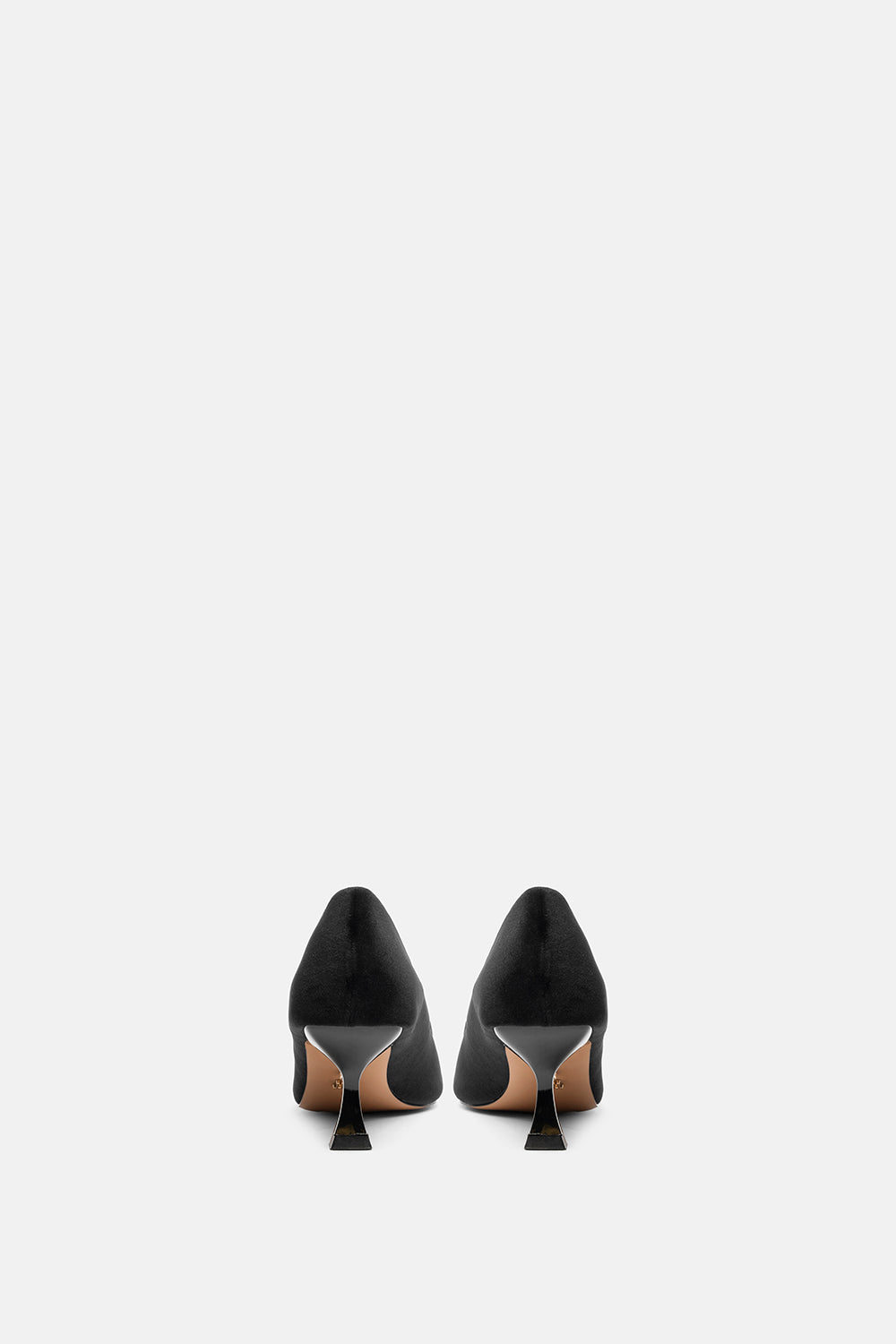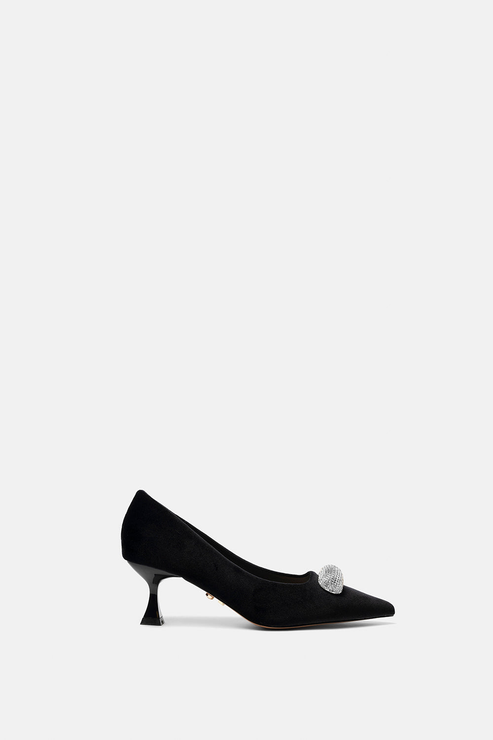 Décolleté Gacrux in velluto nero, caratterizzata da un raffinato accessorio gioiello posizionato sulla punta. Questa scarpa unisce eleganza classica e dettagli preziosi, offrendo un tocco di lusso discreto ideale per occasioni formali e serate speciali. La scelta perfetta per chi cerca stile e sofisticatezza in ogni passo.