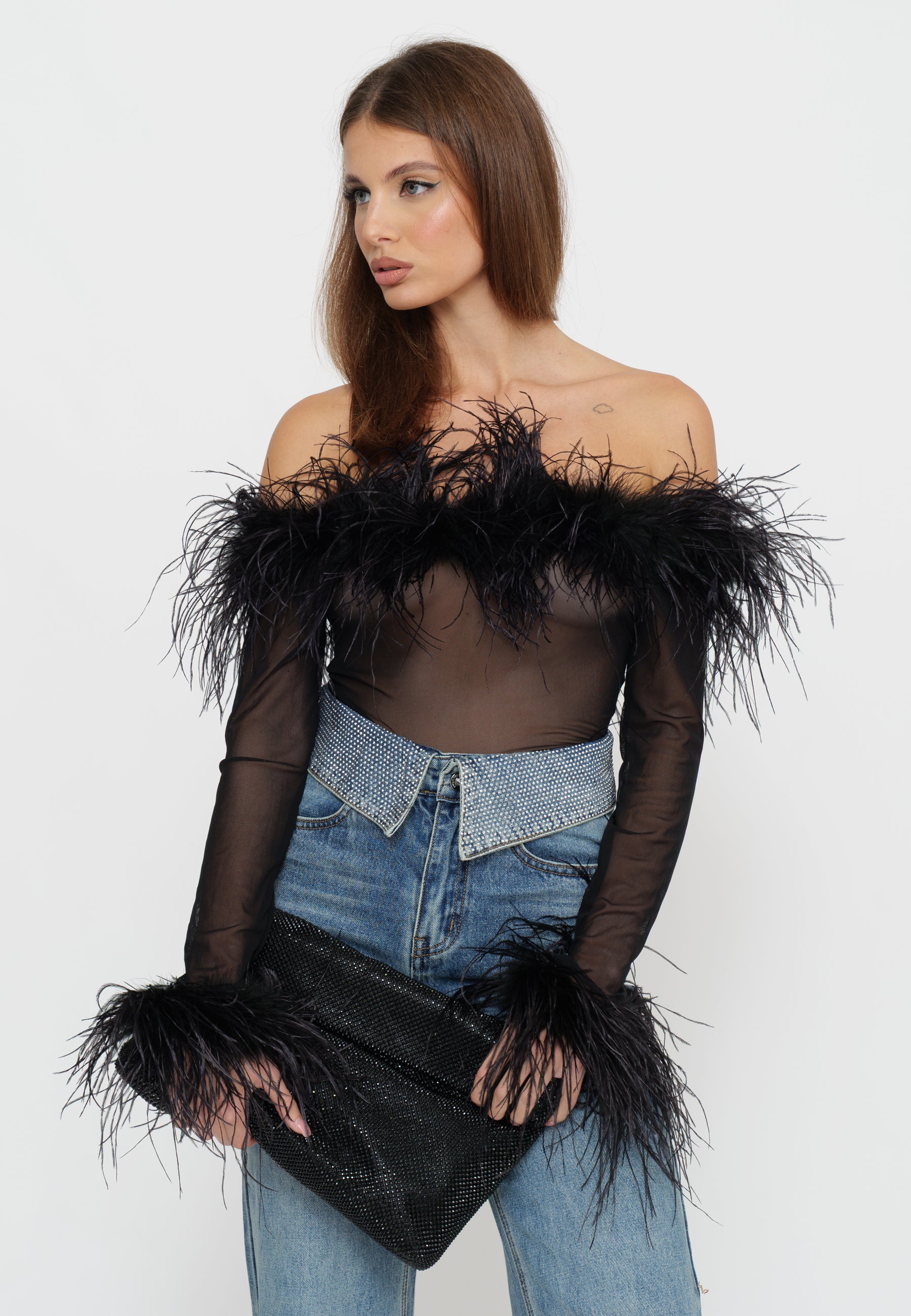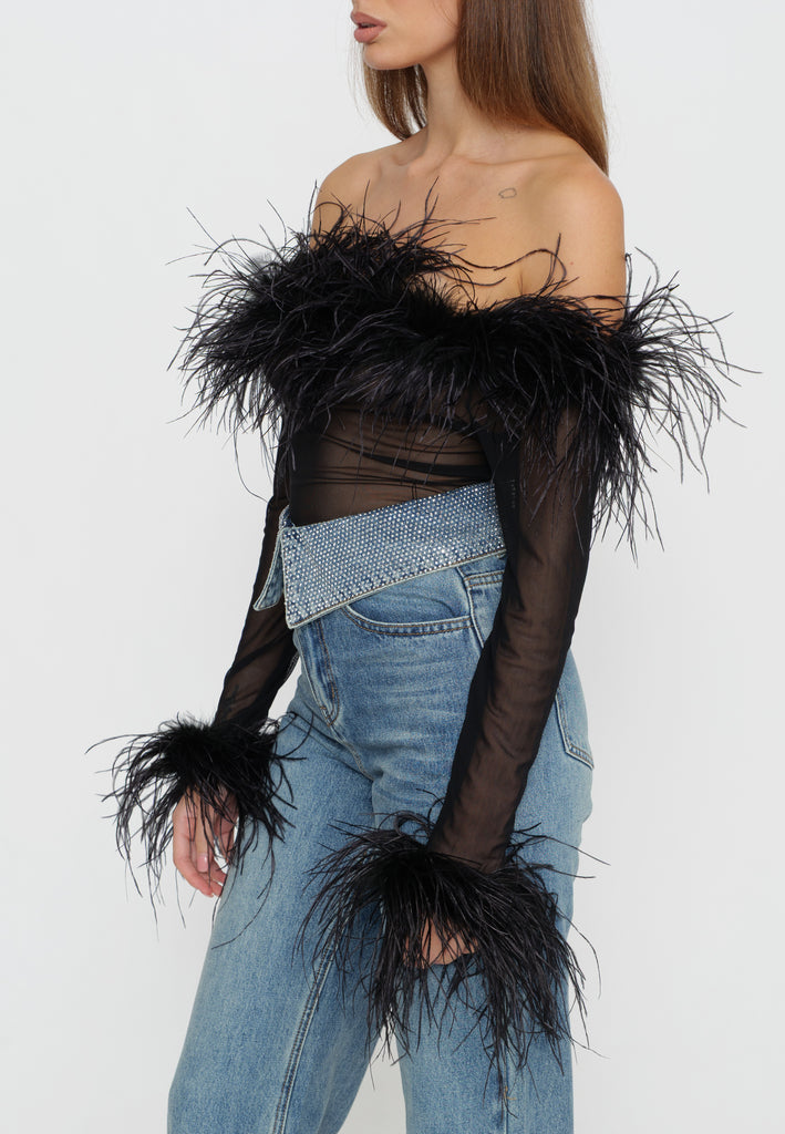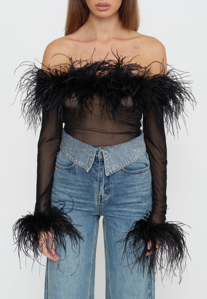 ZUBEN è un top sofisticato che unisce eleganza minimalista e dettagli ricercati. Realizzato con un design body con piume strategicamente posizionate, questo capo cattura l'essenza del lusso contemporaneo. La silhouette aderente esalta le forme naturali, mentre le piume aggiungono movimento e una dimensione tattile affascinante. Perfetto per occasioni speciali o per chi desidera un pezzo statement che comunichi personalità e raffinatezza. Un investimento in stile senza tempo.