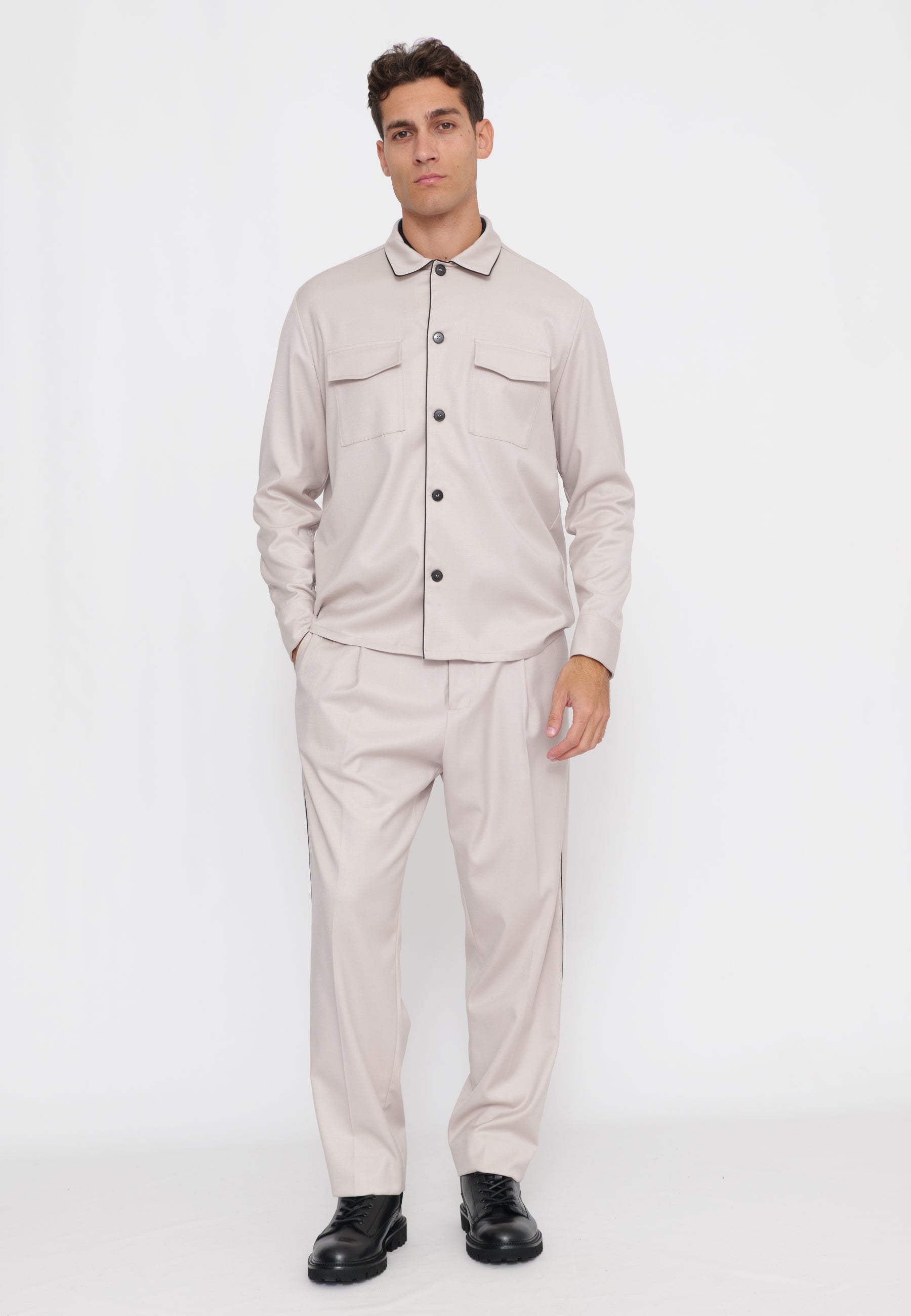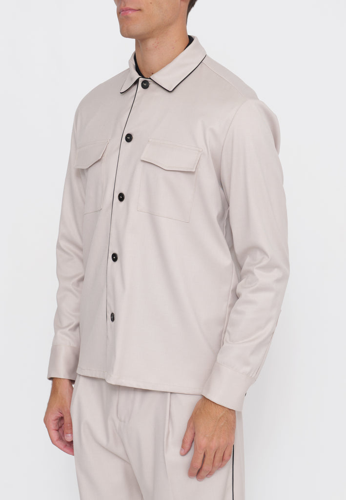 Giacca camicia in tessuto di qualità superiore, caratterizzata da un profilo a contrasto che ne esalta la silhouette moderna. Il design ibrido combina la praticità di una camicia con la struttura di una giacca leggera, perfetto per layering versatile. I dettagli a contrasto conferiscono personalità al capo, rendendolo ideale sia per look casual che smart-casual. Realizzata con attenzione ai particolari, questa piece rappresenta un'aggiunta sofisticata al guardaroba contemporaneo.
