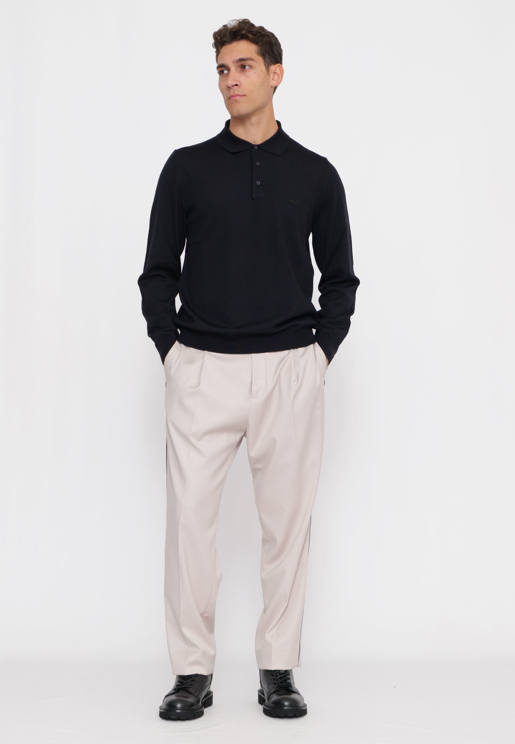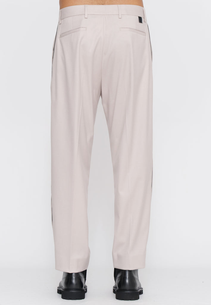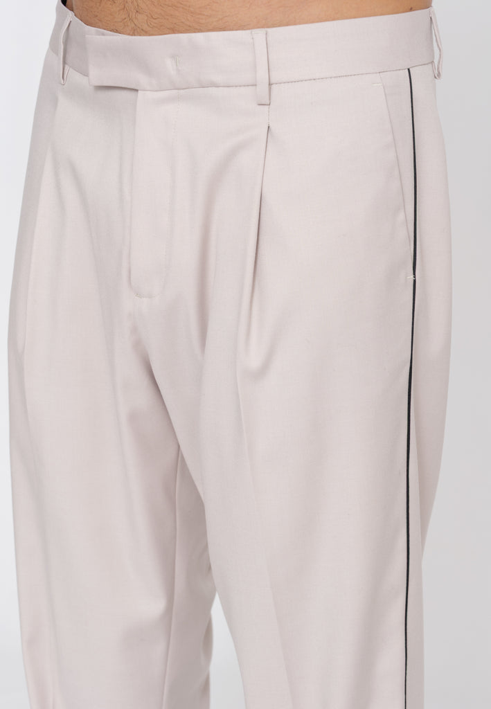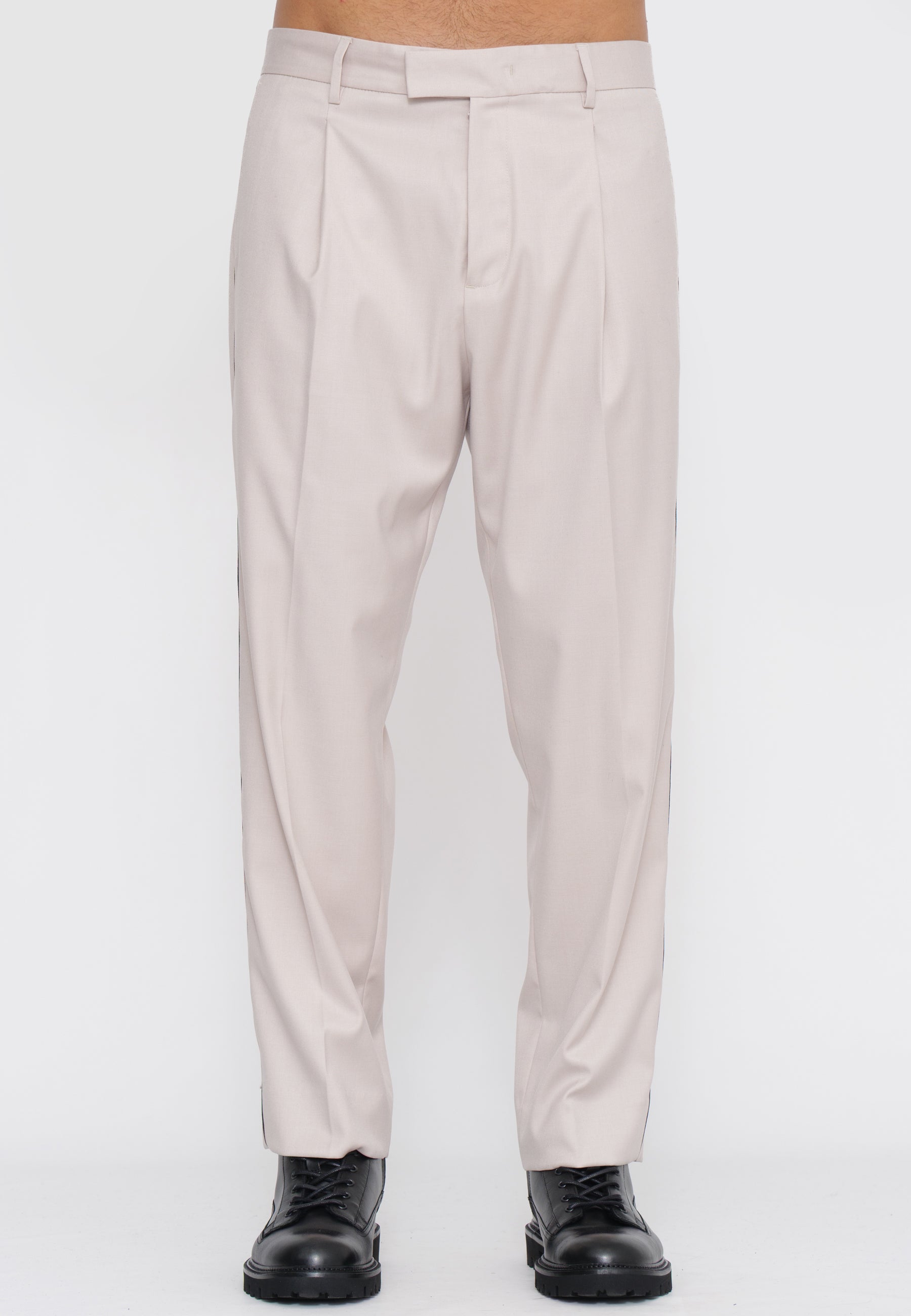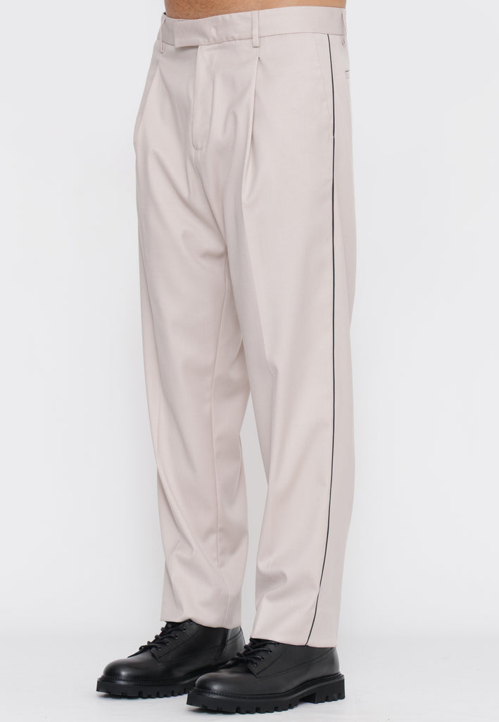 Pantalone dalla silhouette contemporanea caratterizzato da una plissettatura centrale con profilo a contrasto che ne esalta la struttura. Il dettaglio della pence crea un effetto visivo sofisticato, conferendo al capo un'eleganza sartoriale. Realizzato con attenzione ai particolari, questo pantalone si distingue per la ricerca estetica e la qualità costruttiva tipica del brand. Perfetto per chi ricerca un pezzo versatile che combina stile classico e dettagli contemporanei.