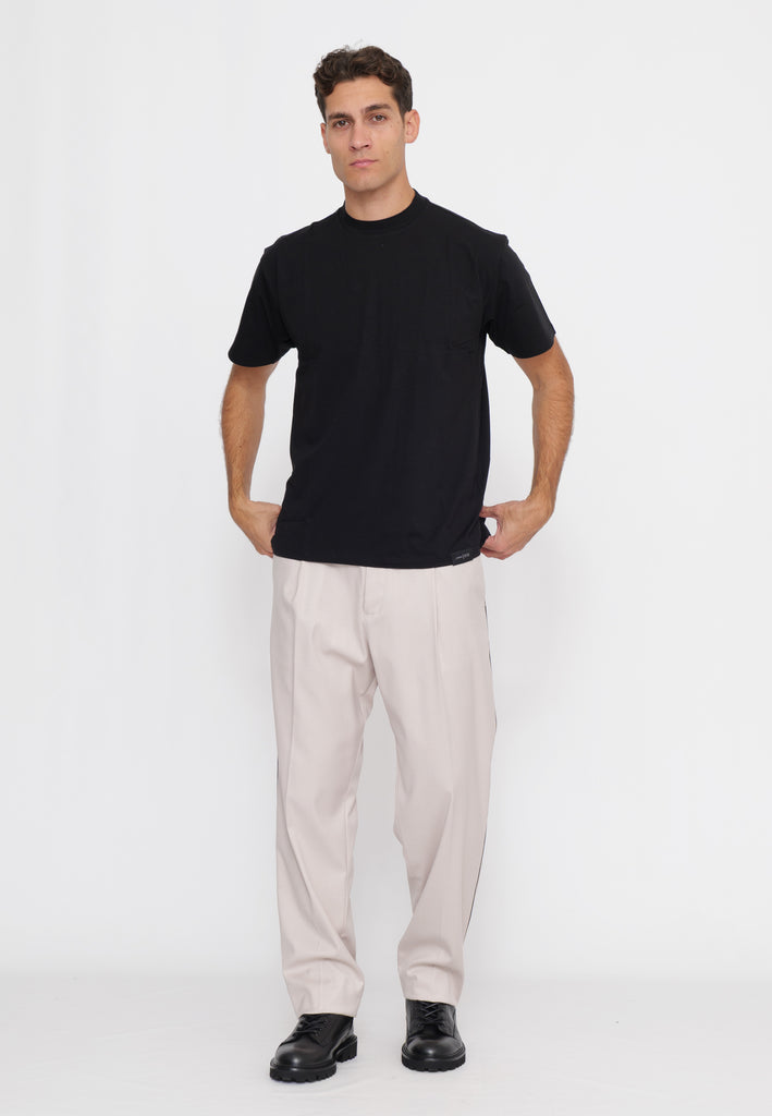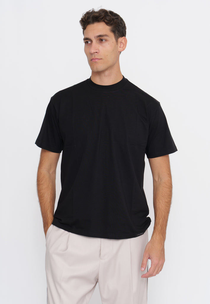 T-shirt in jersey elastico dalla vestibilità moderna e confortevole. Realizzata con tessuto di qualità superiore che garantisce morbidezza e traspirabilità, questa maglietta si adatta perfettamente al corpo grazie alla composizione elastica. Ideale per l'uso quotidiano, mantiene la forma nel tempo e offre una sensazione di benessere durante tutto il giorno. Un capo versatile e affidabile per chi ricerca qualità e praticità nel proprio guardaroba.