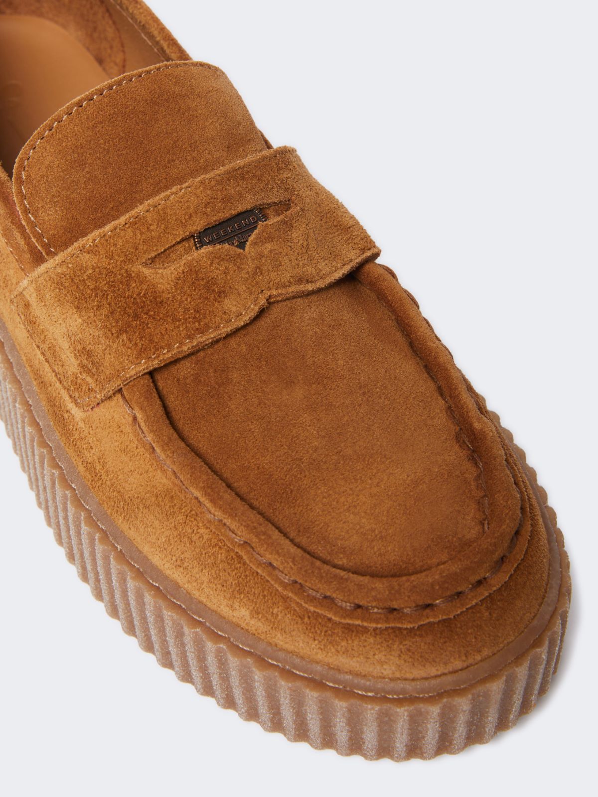 Mocassino caratterizzato da suola alta in gomma dalla texture zigrinata.