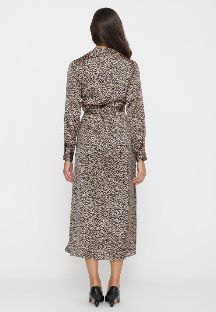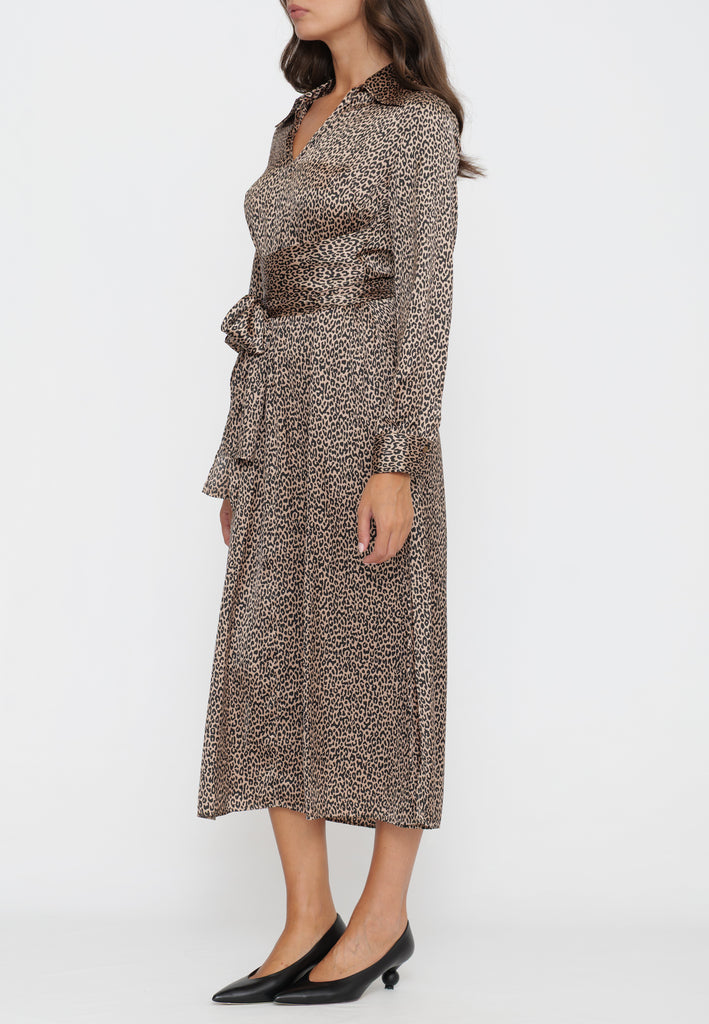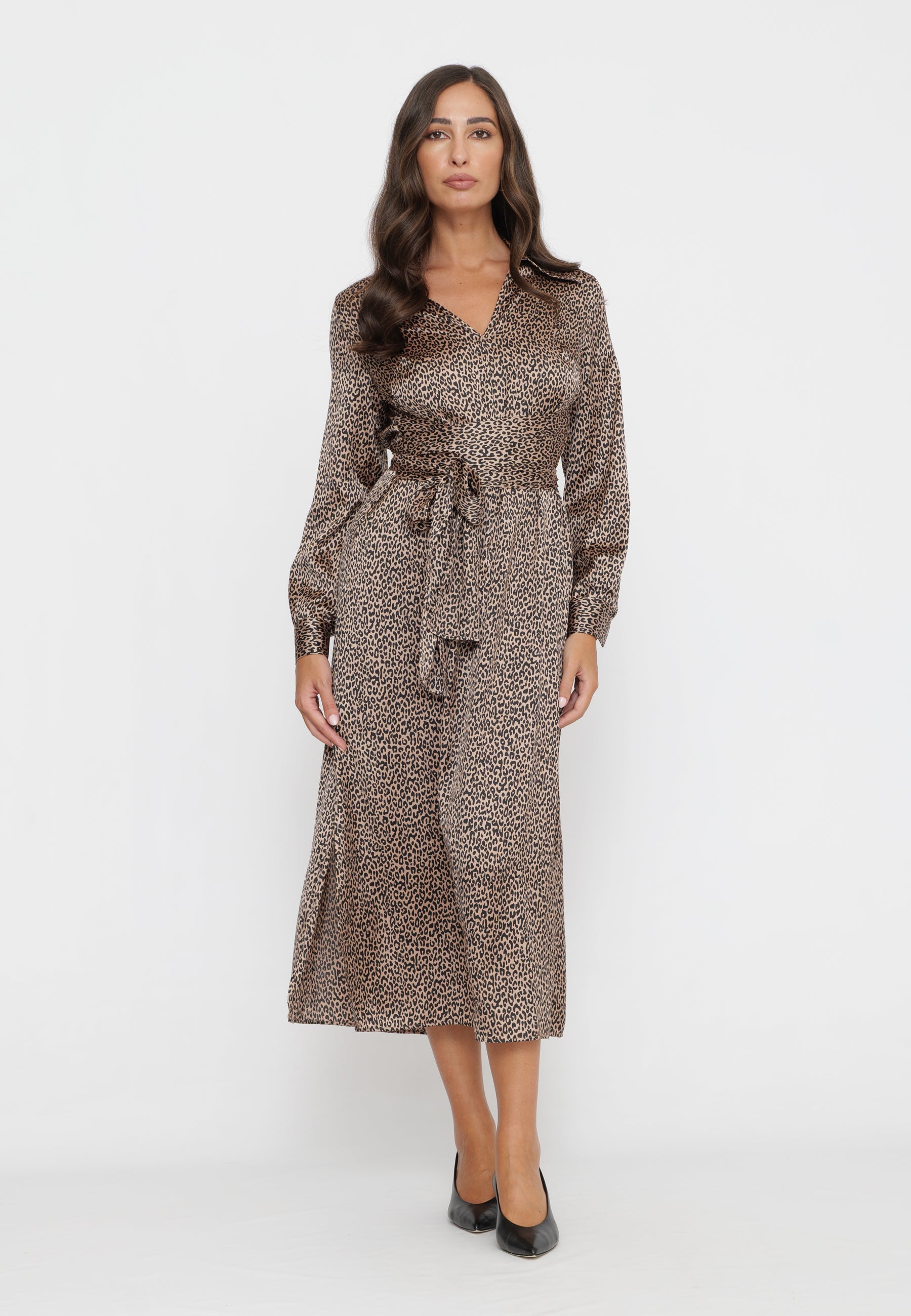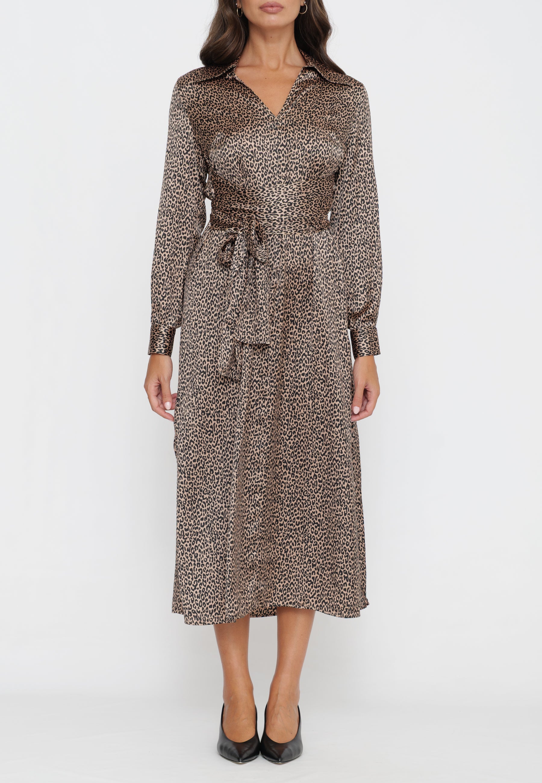Realizzato in raso liscio, offre una sensazione lussuosa e la fascia in vita esalta la silhouette. Ideale per le occasioni più sofisticate, questo abito bilancia motivi audaci con una sartorialità raffinata per offrire uno stile sicuro e impeccabile.