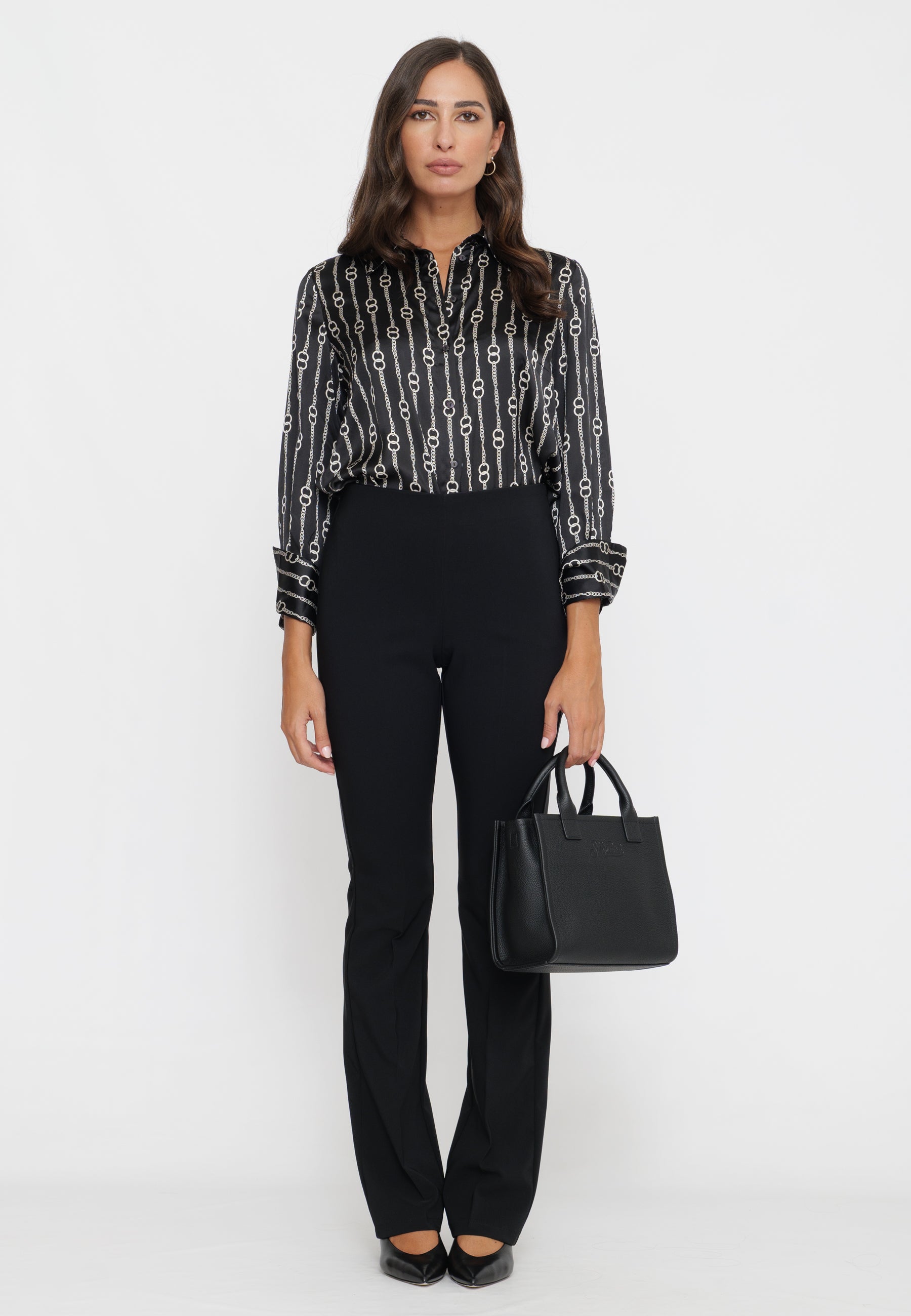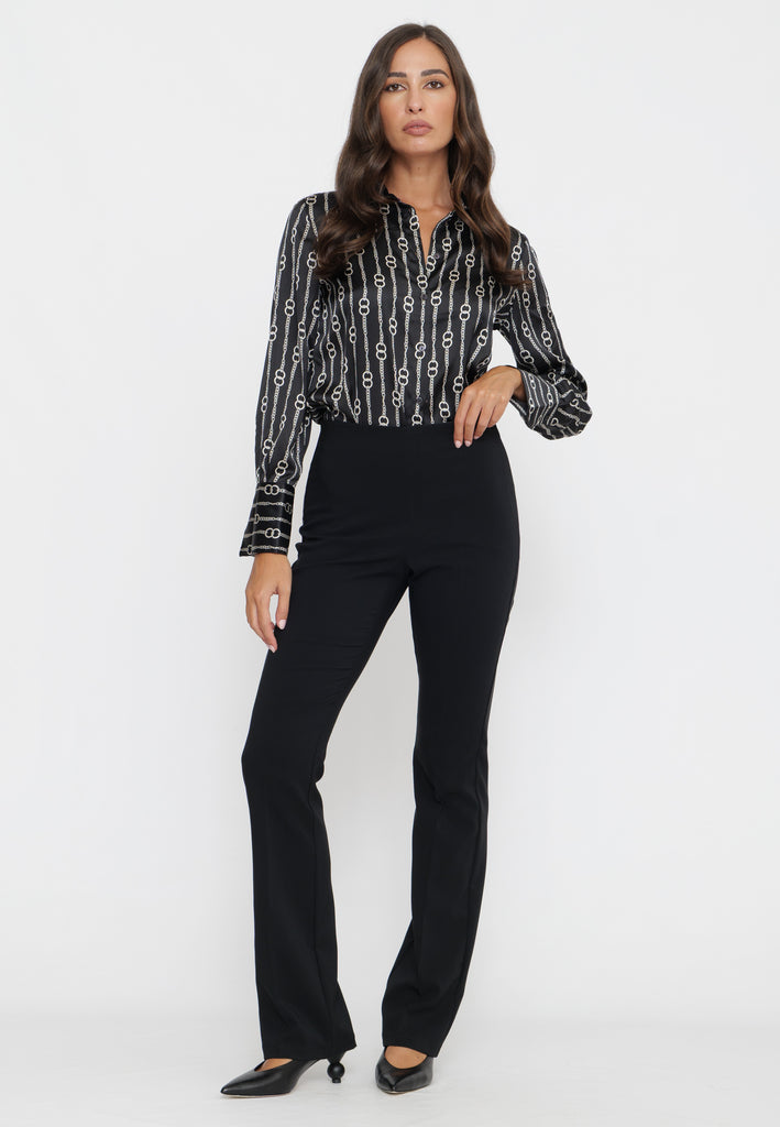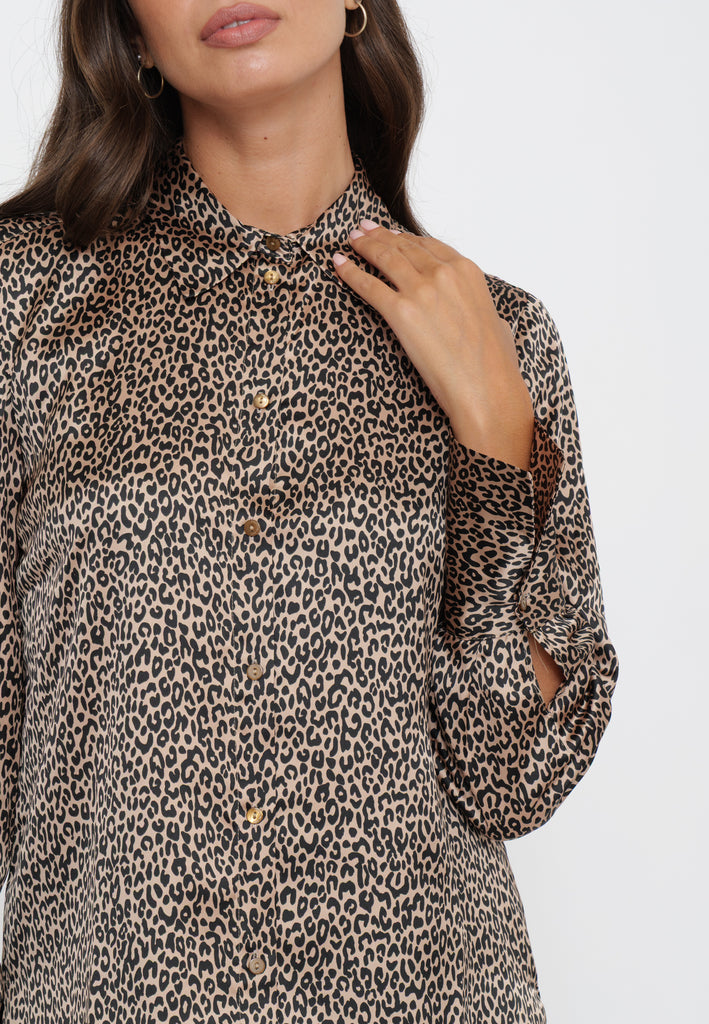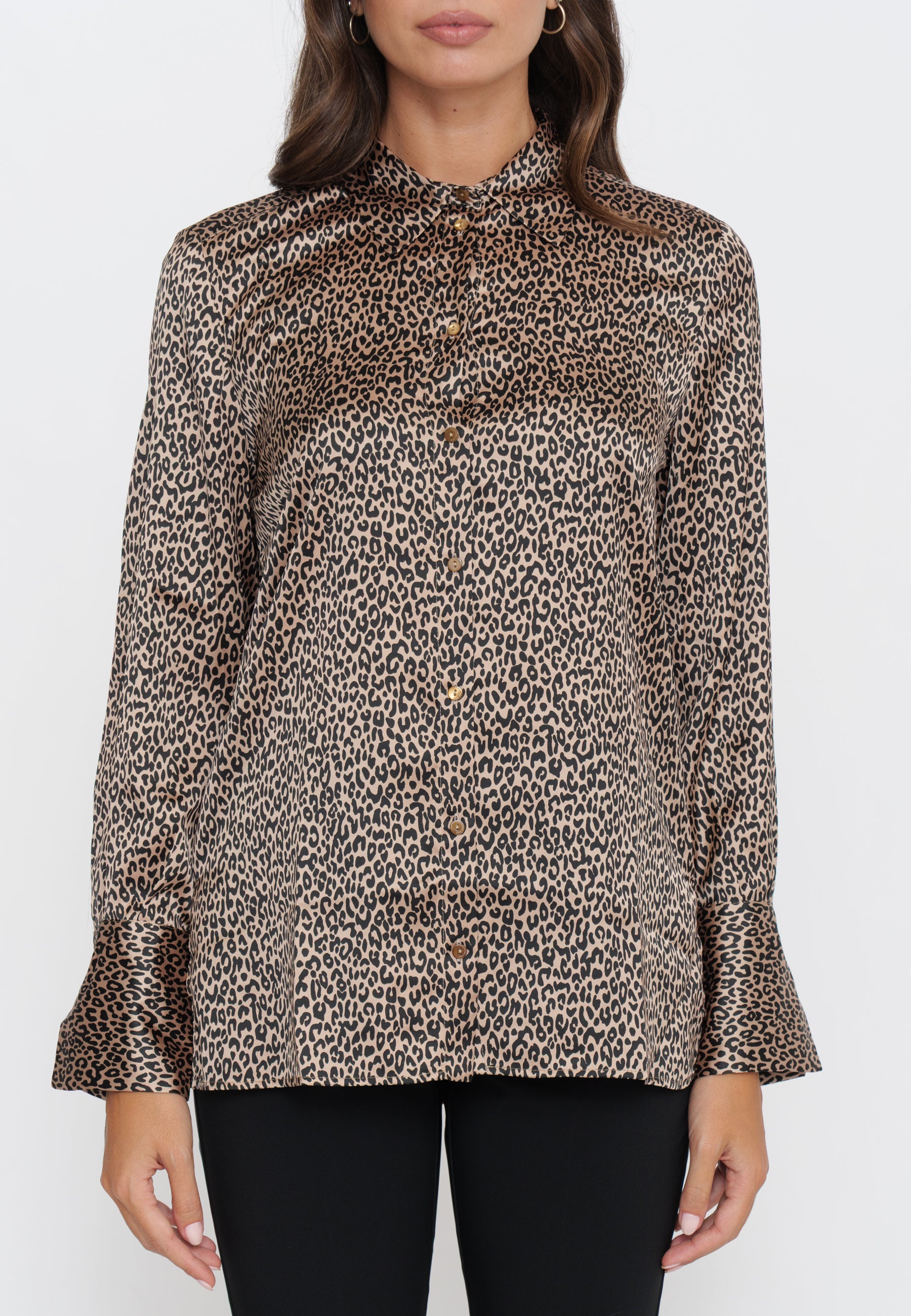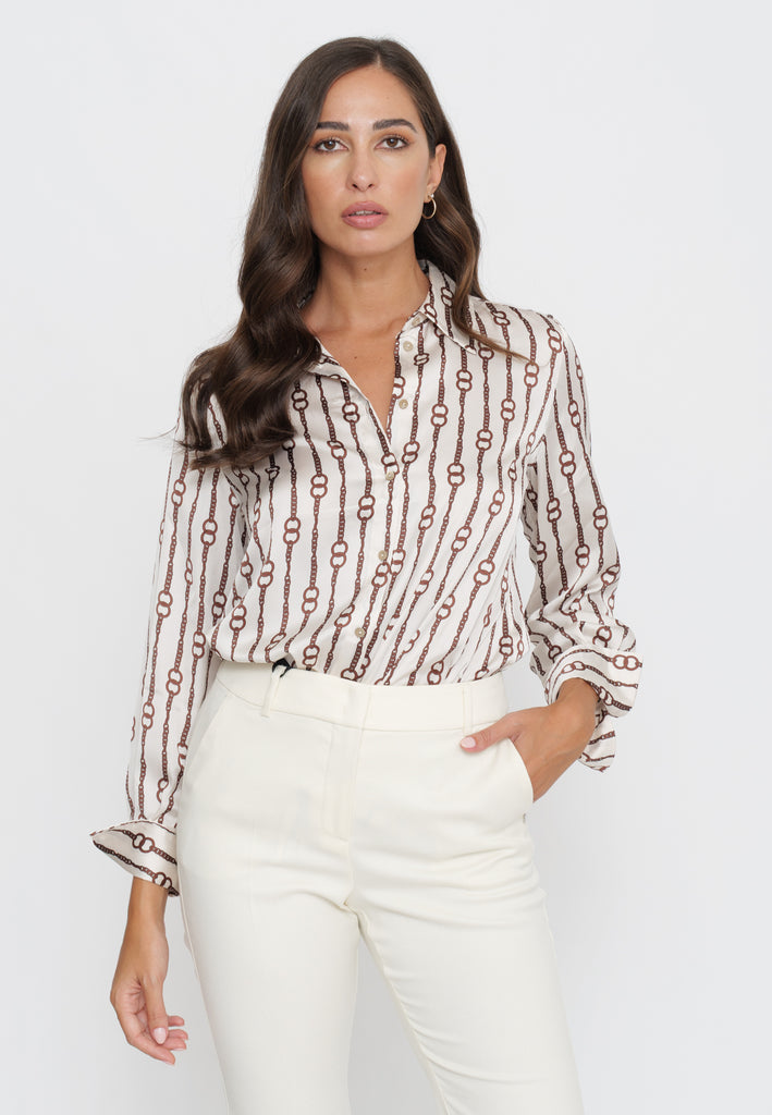 Elegante camicia in raso con fantasia ricercata. Il tessuto lucido e morbido valorizza ogni movimento. Perfetta per occasioni importanti o per aggiungere un tocco di classe a un outfit quotidiano.