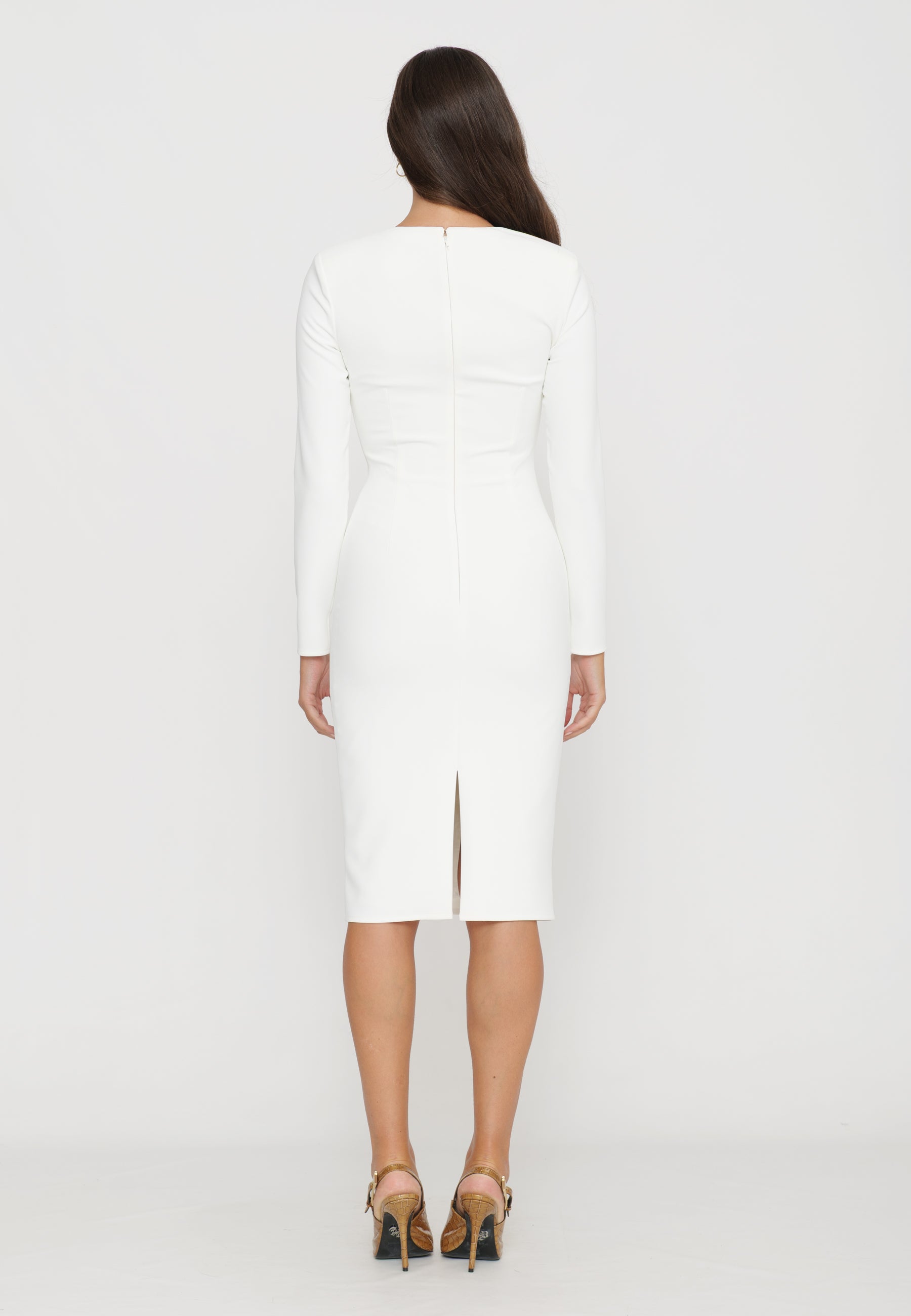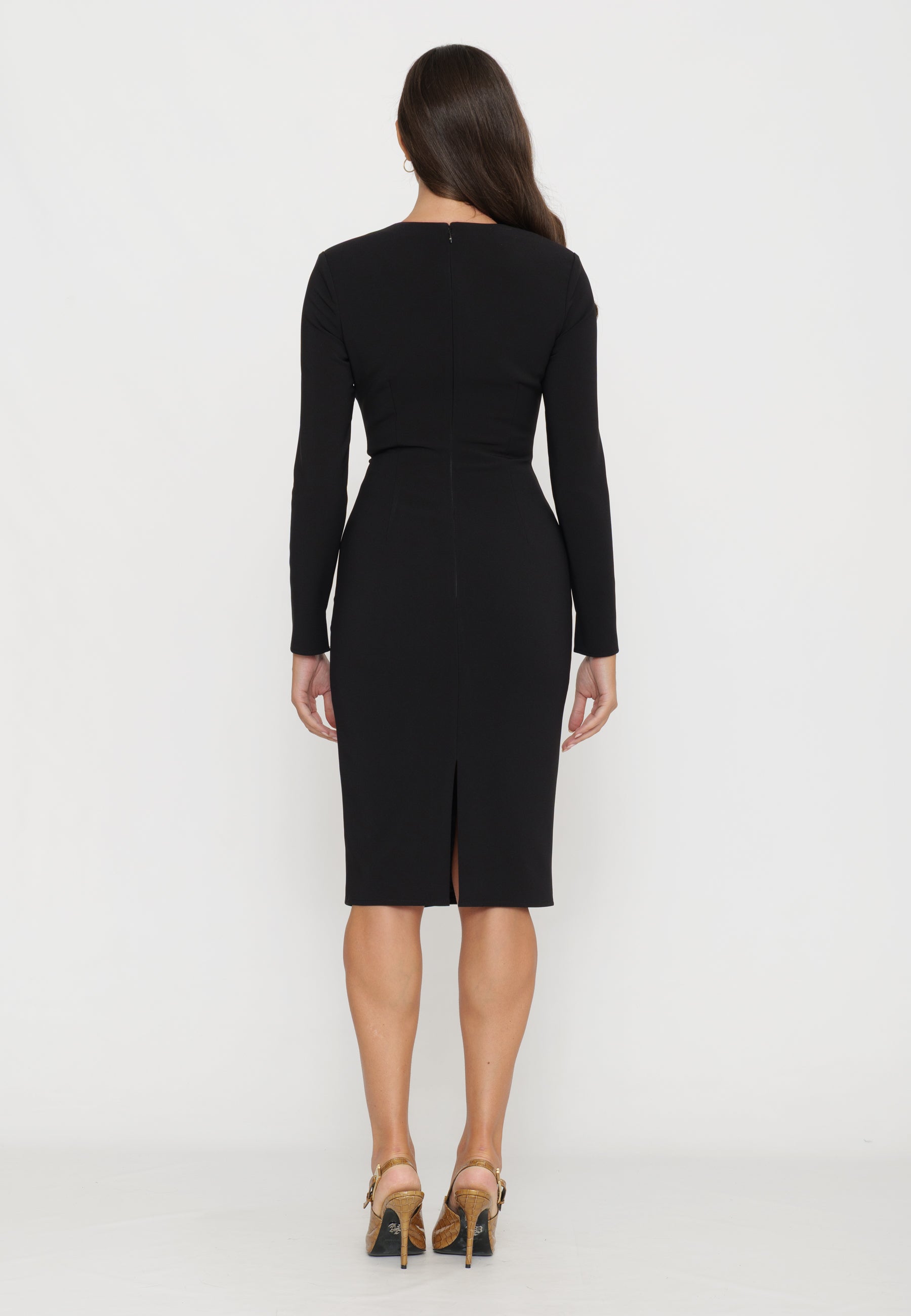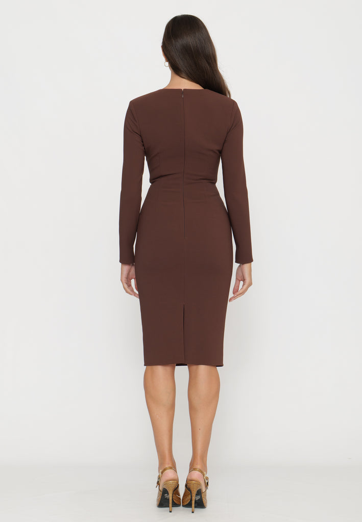 Questo abito in crêpe leggero a vestibilità slim combina eleganza e modernità. Le spalle strutturate donano definizione, mentre il girocollo con scollo a V impreziosito da gemelli a catena con nappine in trama snake, rimovibili per varie combinazioni di stile, aggiunge un tocco distintivo. La cintura con logo valorizza il punto vita, e lo spacco posteriore crea una silhouette audace e sofisticata, perfetta per chi cerca un capo raffinato e versatile.