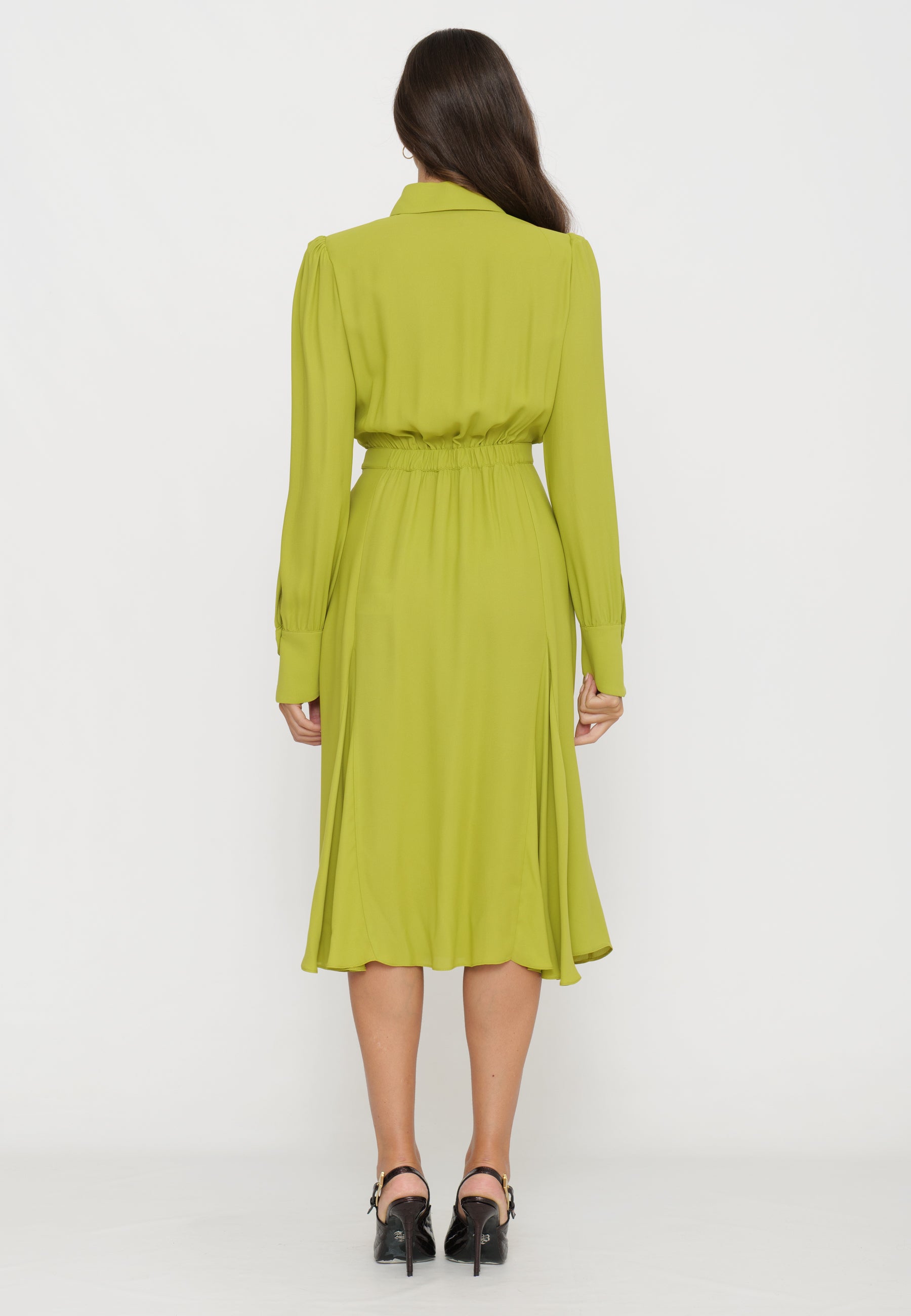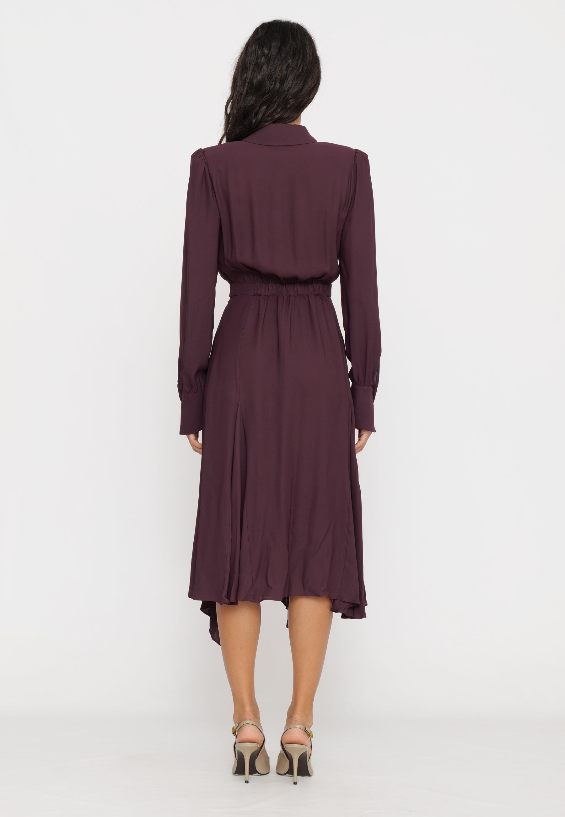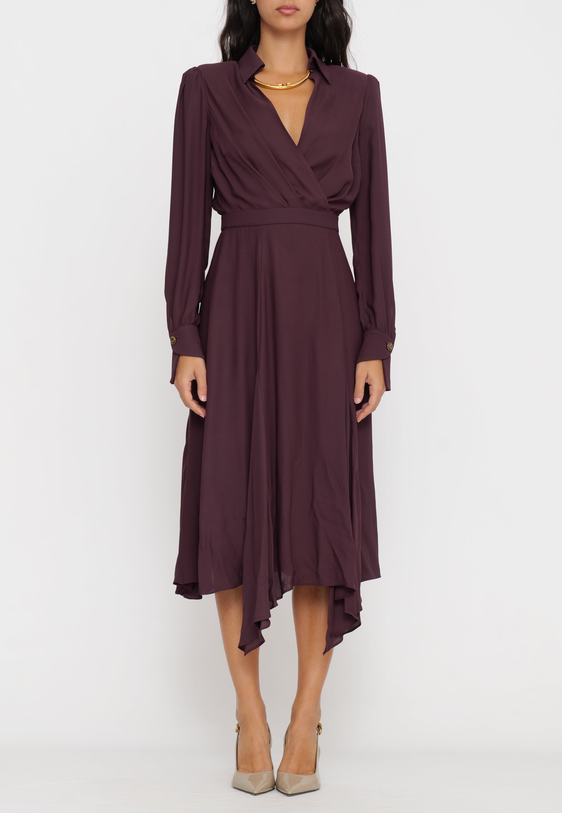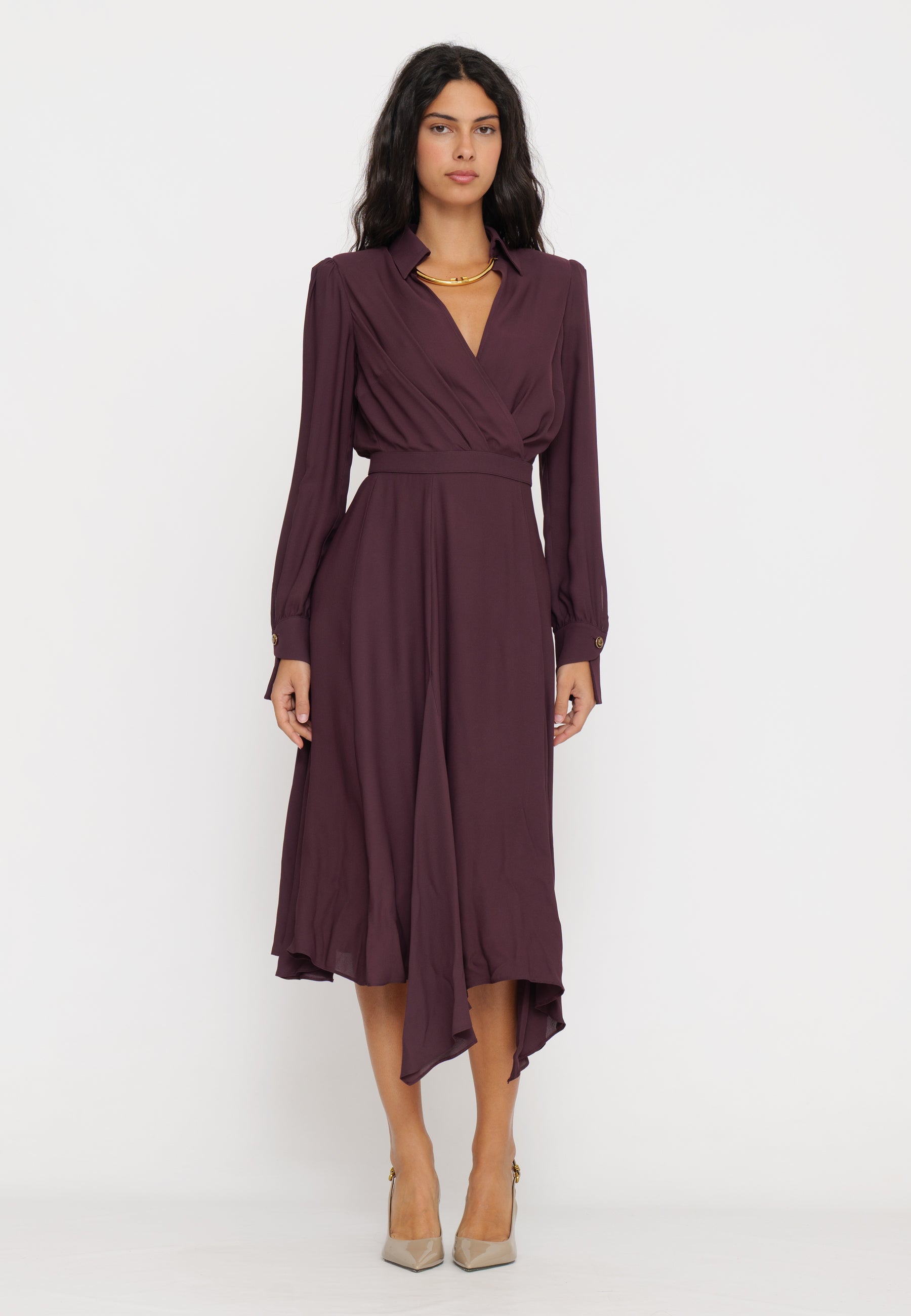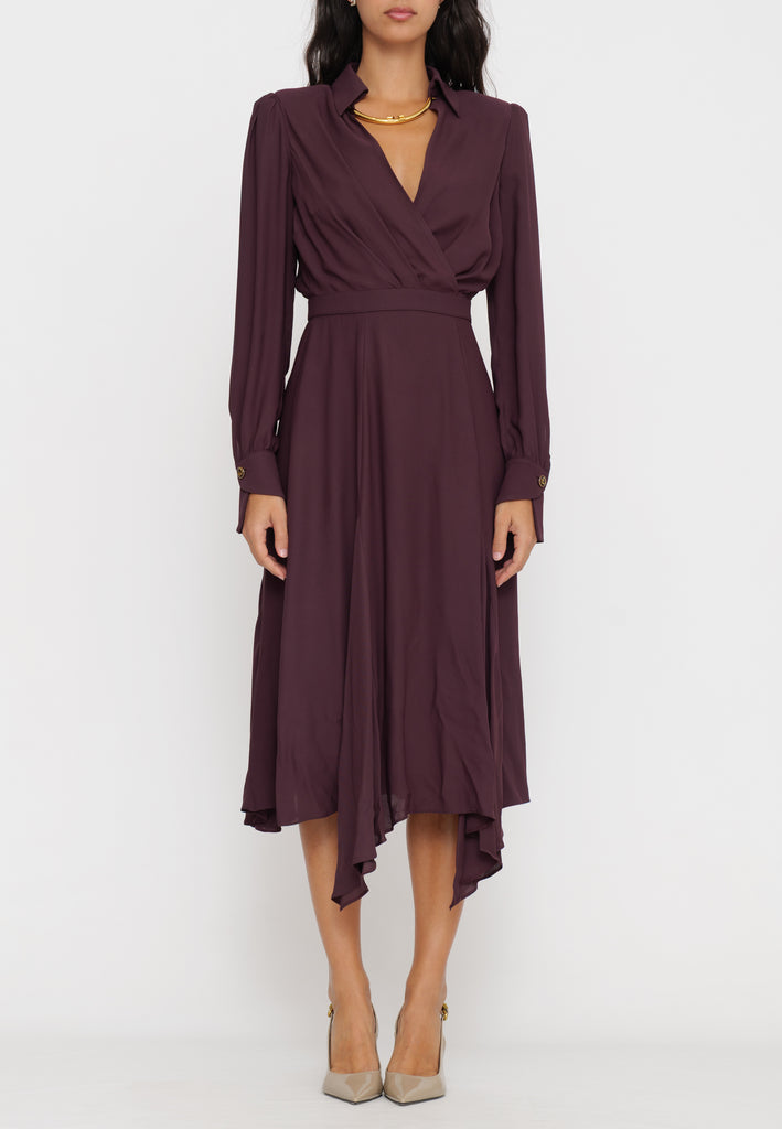 Abito midi modello chemisier di Elisabetta Franchi che unisce eleganza e praticità. La silhouette raffinata è arricchita da una collana dorata integrata che aggiunge un tocco di lusso discreto. Realizzato con materiali di alta qualità, garantisce comfort e vestibilità impeccabile per ogni occasione formale o professionale.