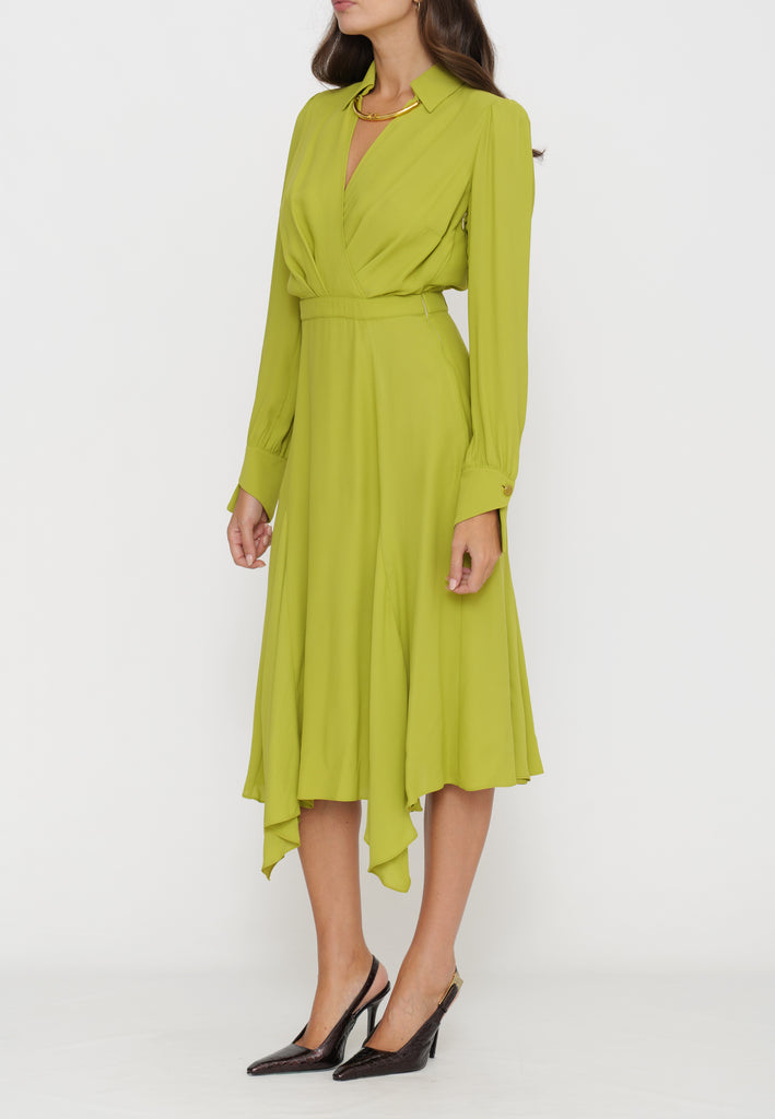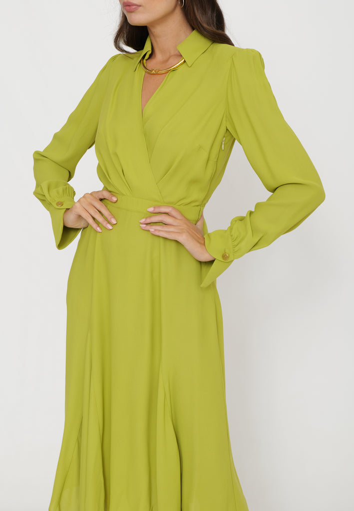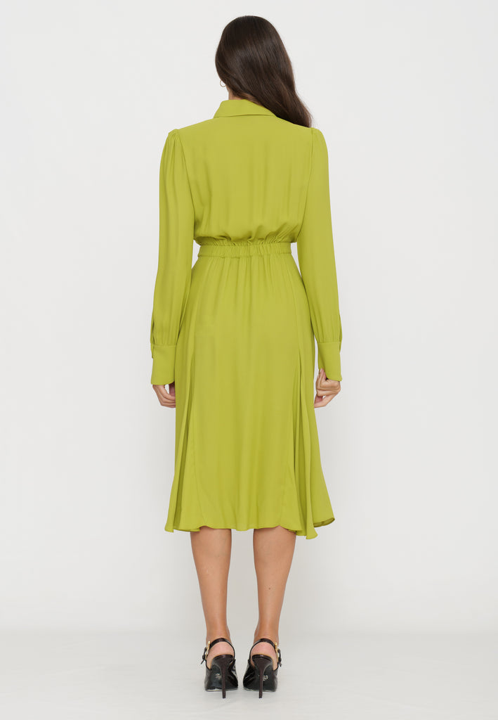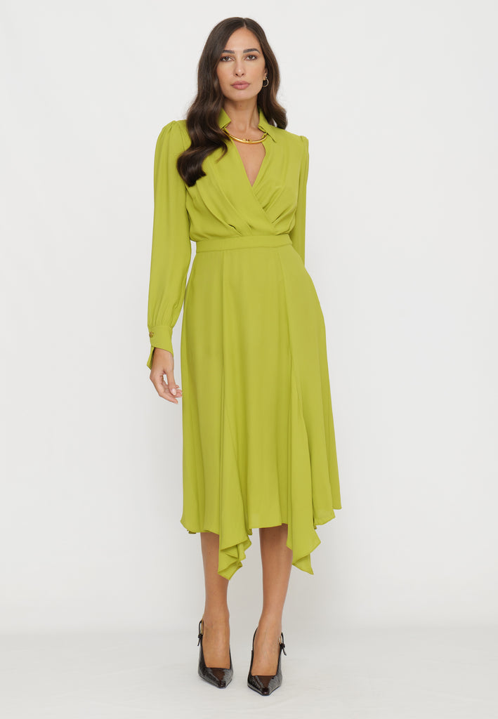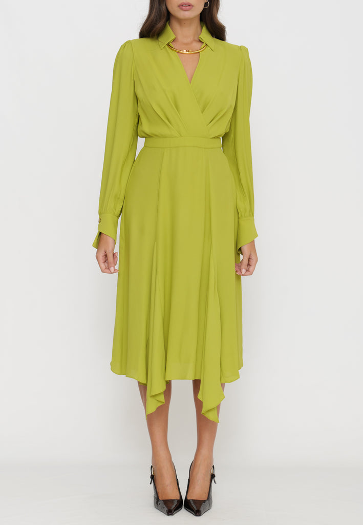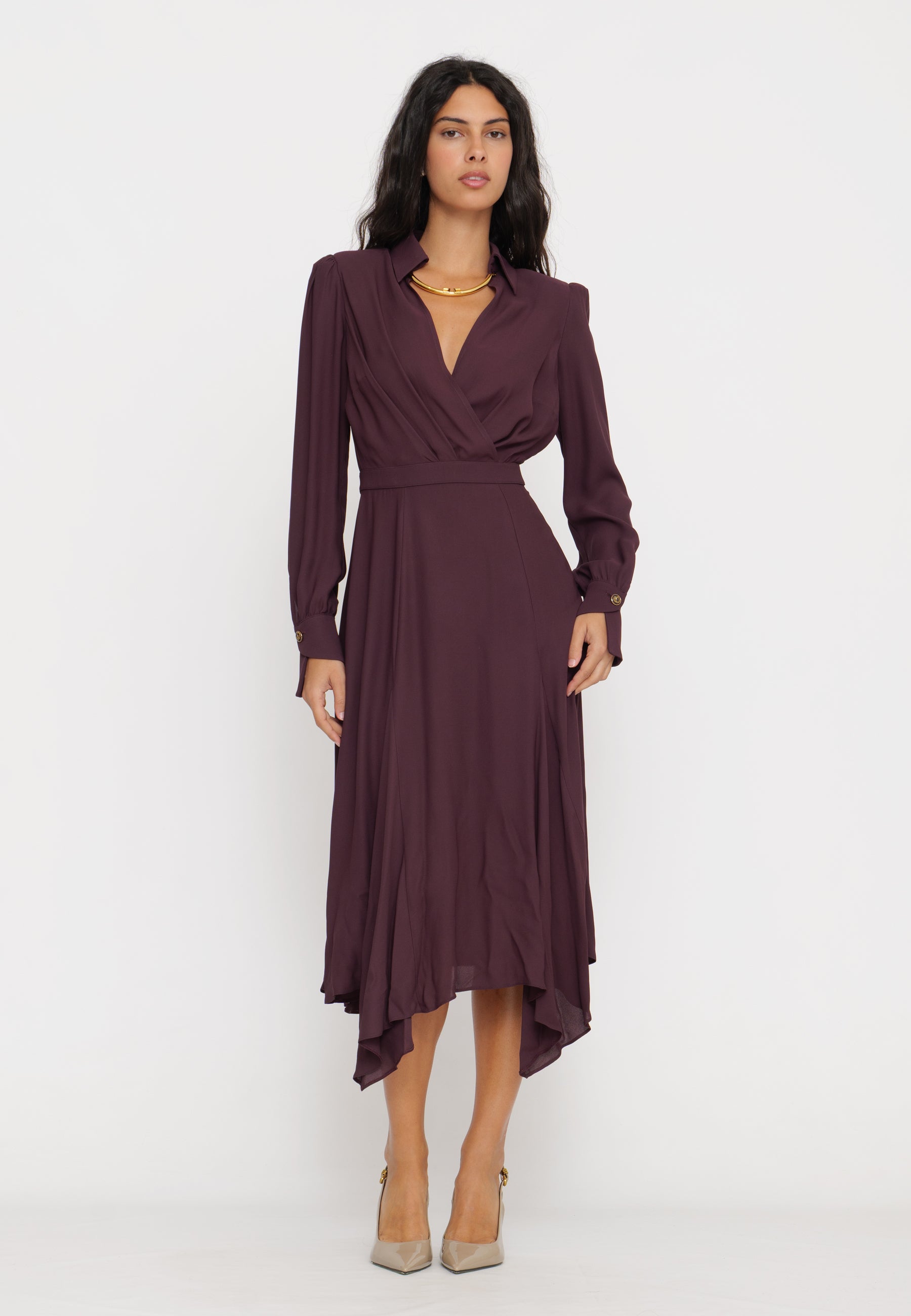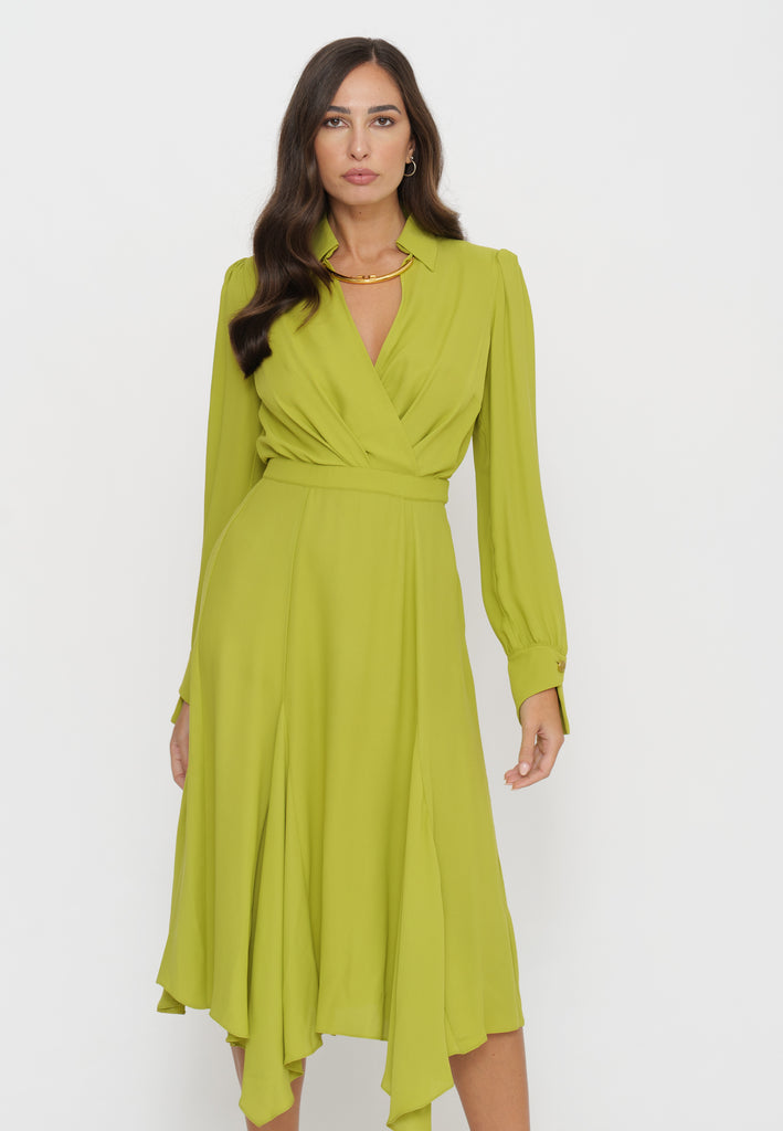 Abito midi modello chemisier di Elisabetta Franchi che unisce eleganza e praticità. La silhouette raffinata è arricchita da una collana dorata integrata che aggiunge un tocco di lusso discreto. Realizzato con materiali di alta qualità, garantisce comfort e vestibilità impeccabile per ogni occasione formale o professionale.