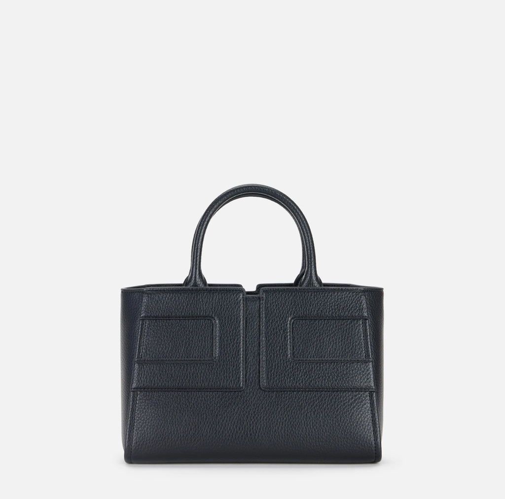 Questa borsa tote media in materiale sintetico effetto pelle unisce eleganza e funzionalità. La sua forma morbida e compatta garantisce praticità, mentre i manici tubolari offrono comfort di trasporto. I dettagli cuciti con logo tono su tono definiscono con raffinatezza la parte superiore dell’accessorio, rendendola un elemento distintivo e sofisticato per il tuo guardaroba.