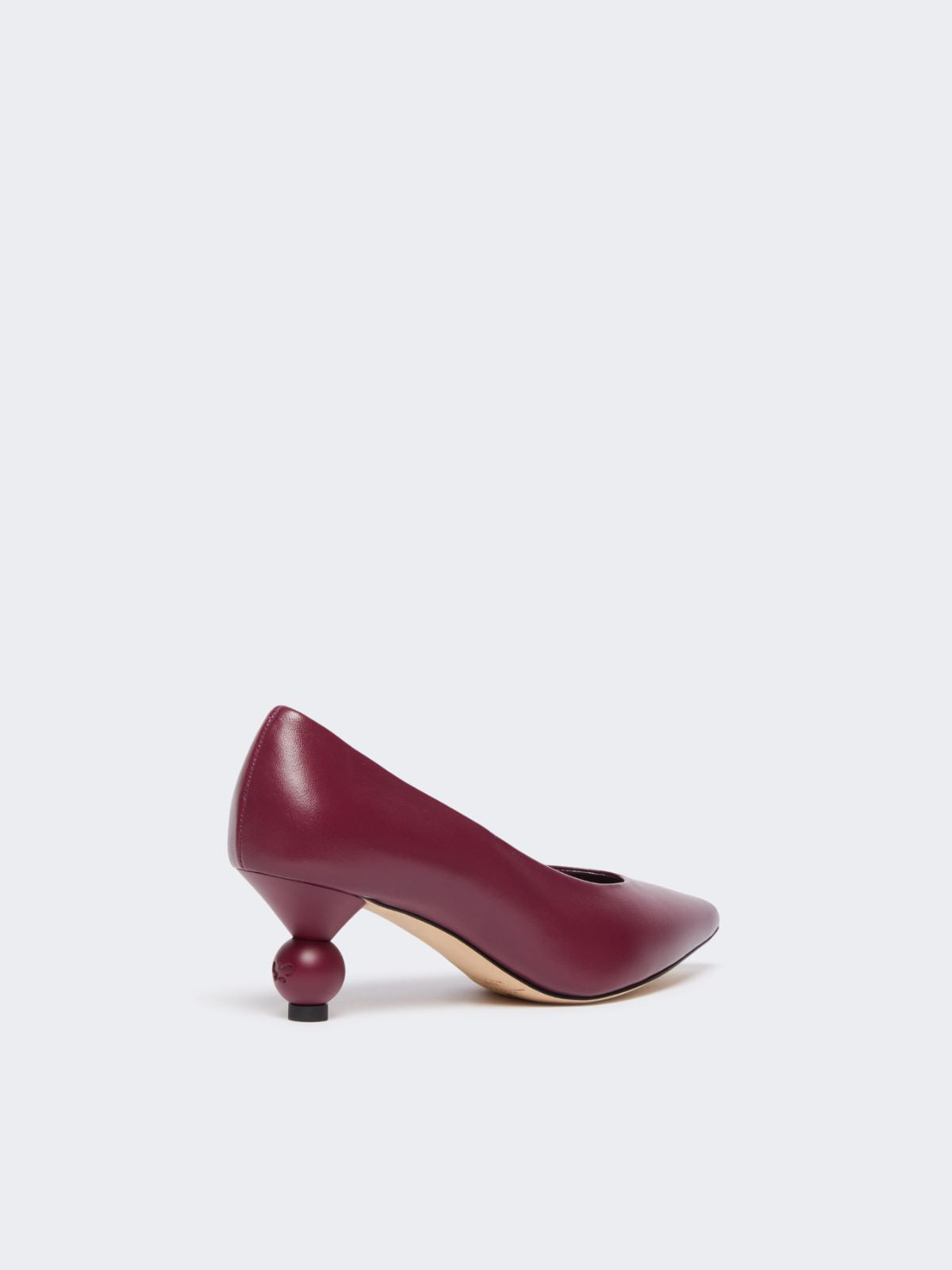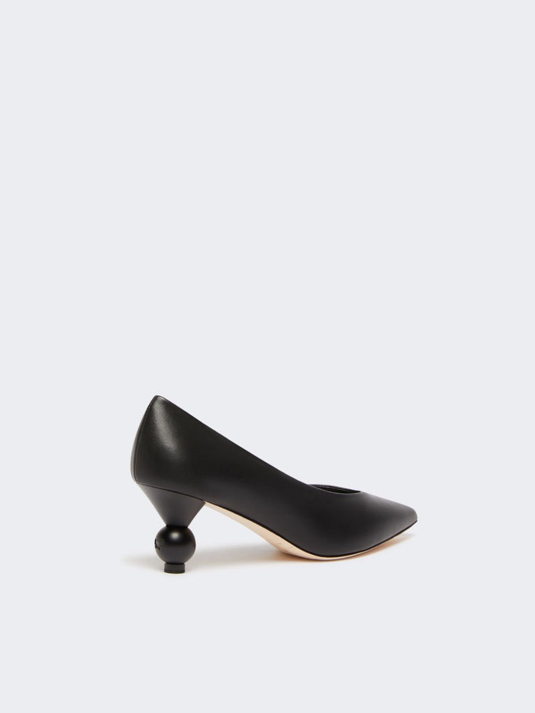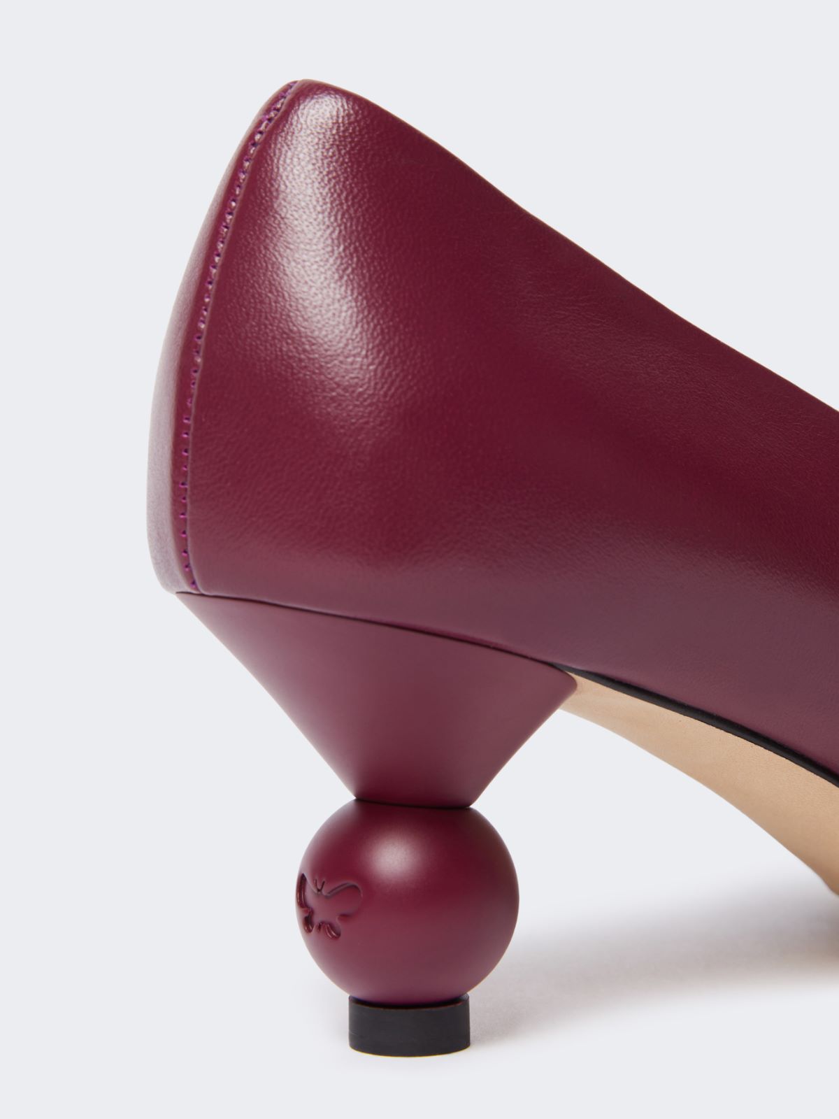 Pump in morbida nappa con scollo a uovo e punta leggermente affusolata. Il design è caratterizzato dal tacco boule, ispirato all'iconica linea di borse Pasticcino Bag, logato e laccato in tono. Un design esclusivo unito ad una calzata stabile.