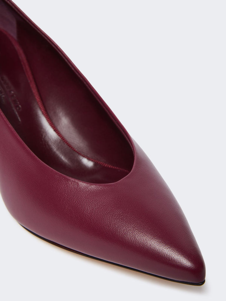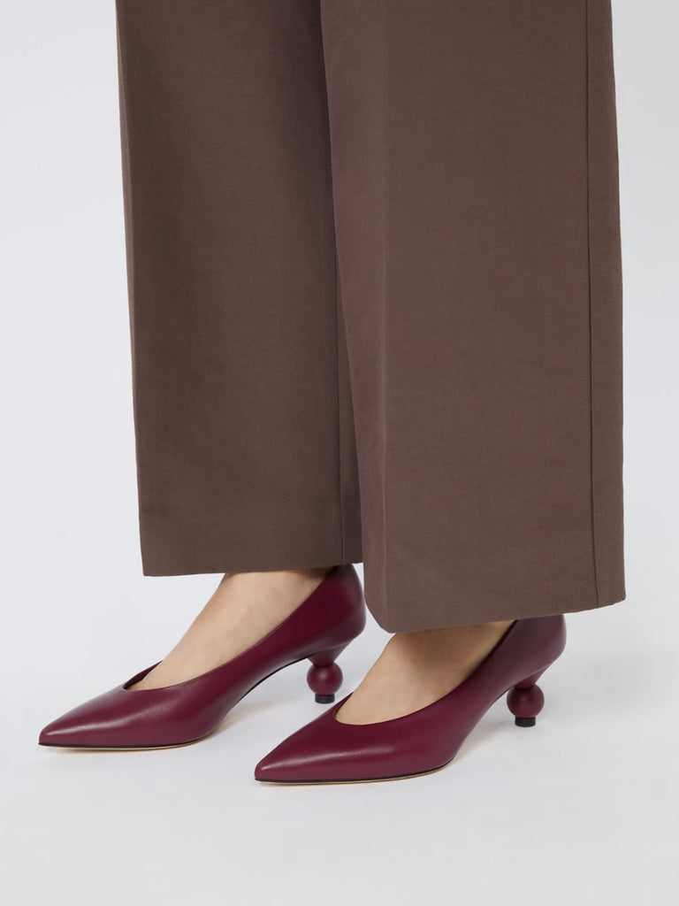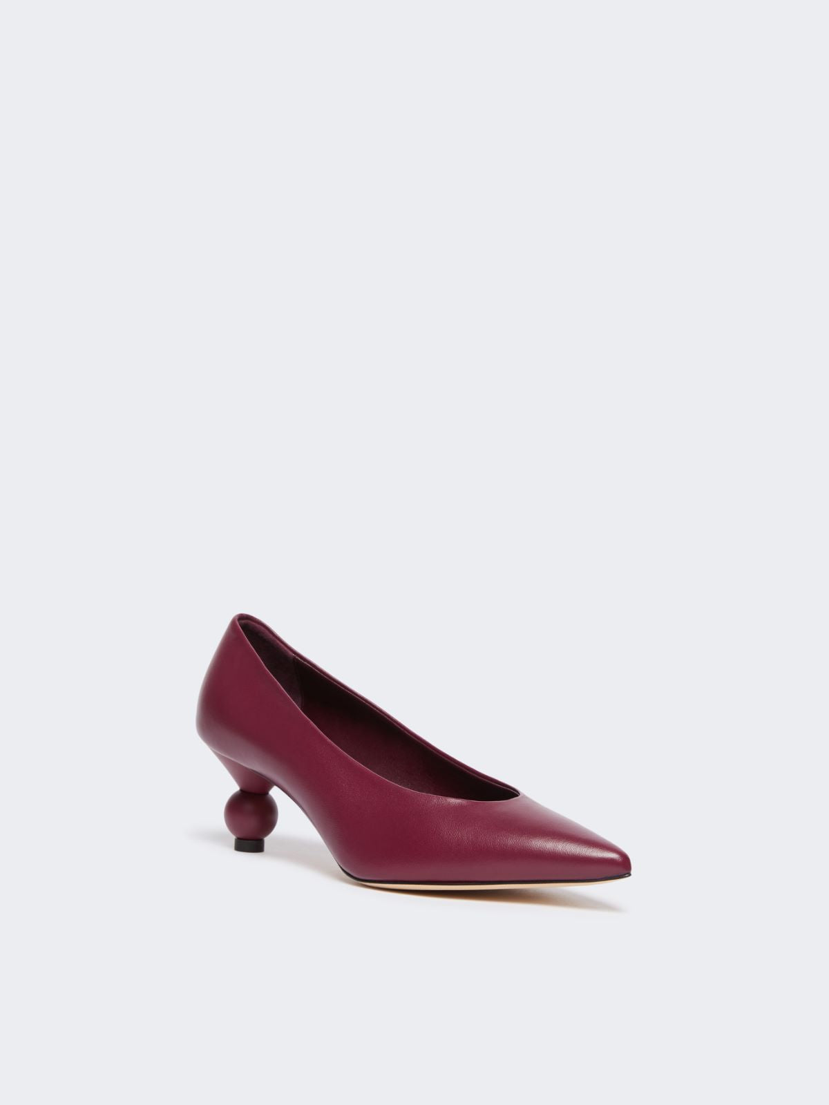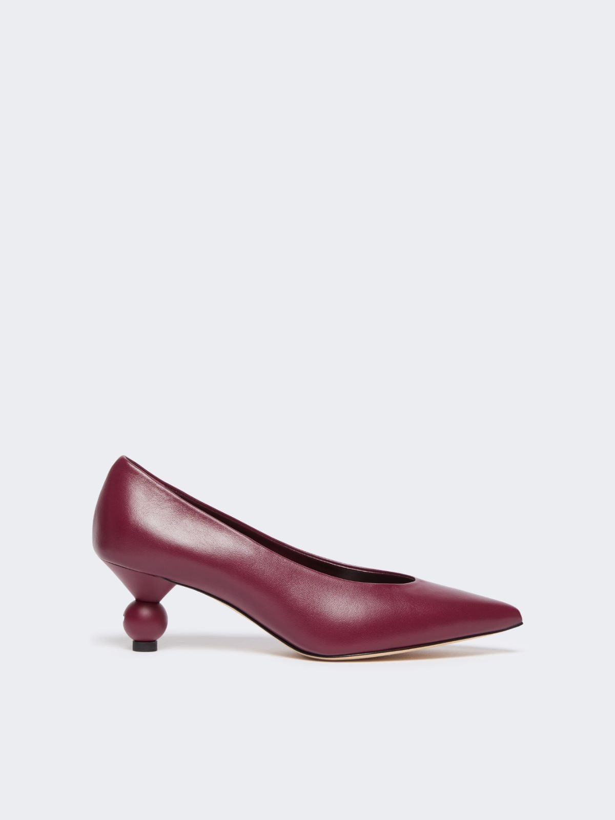 Pump in morbida nappa con scollo a uovo e punta leggermente affusolata. Il design è caratterizzato dal tacco boule, ispirato all'iconica linea di borse Pasticcino Bag, logato e laccato in tono. Un design esclusivo unito ad una calzata stabile.