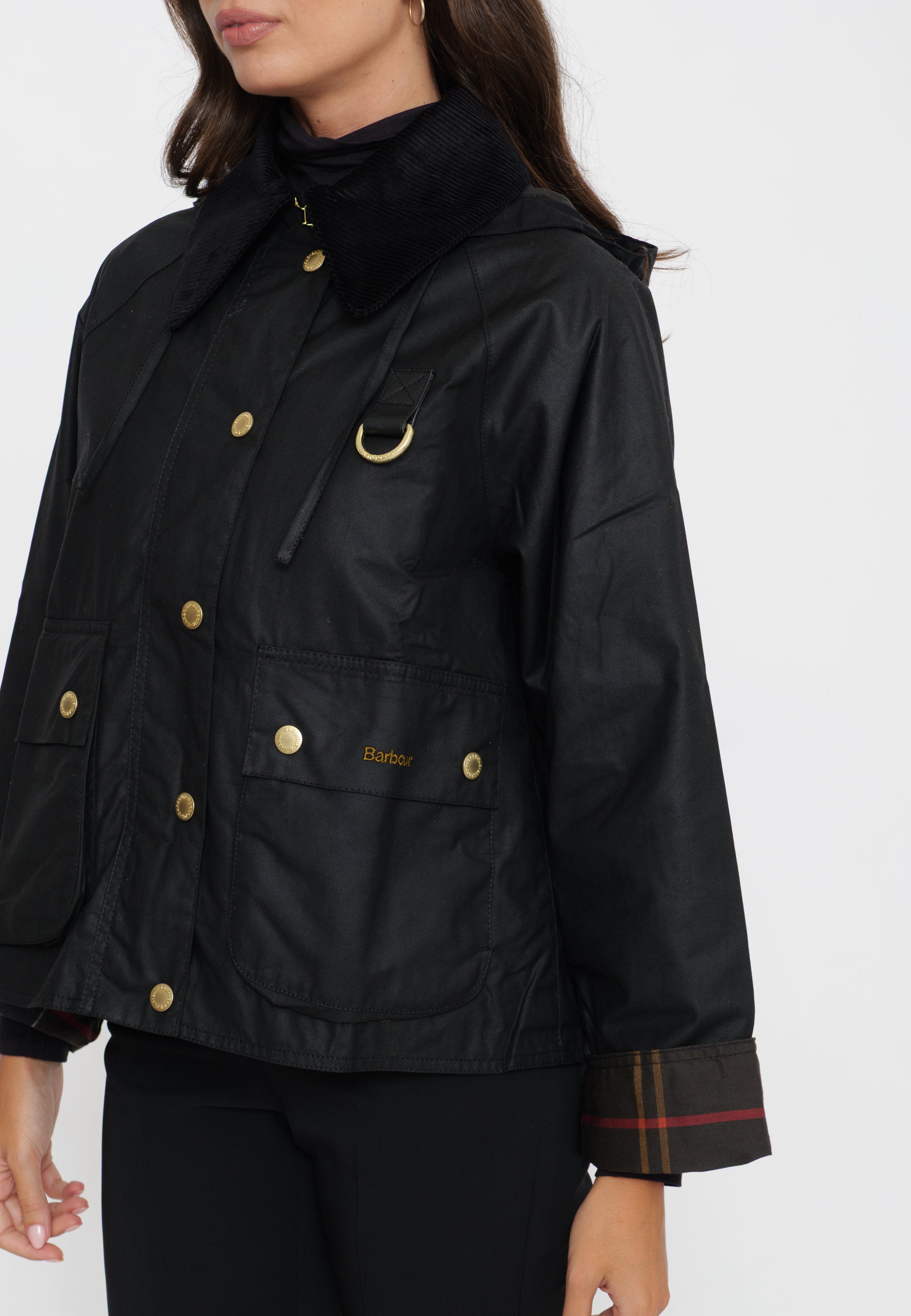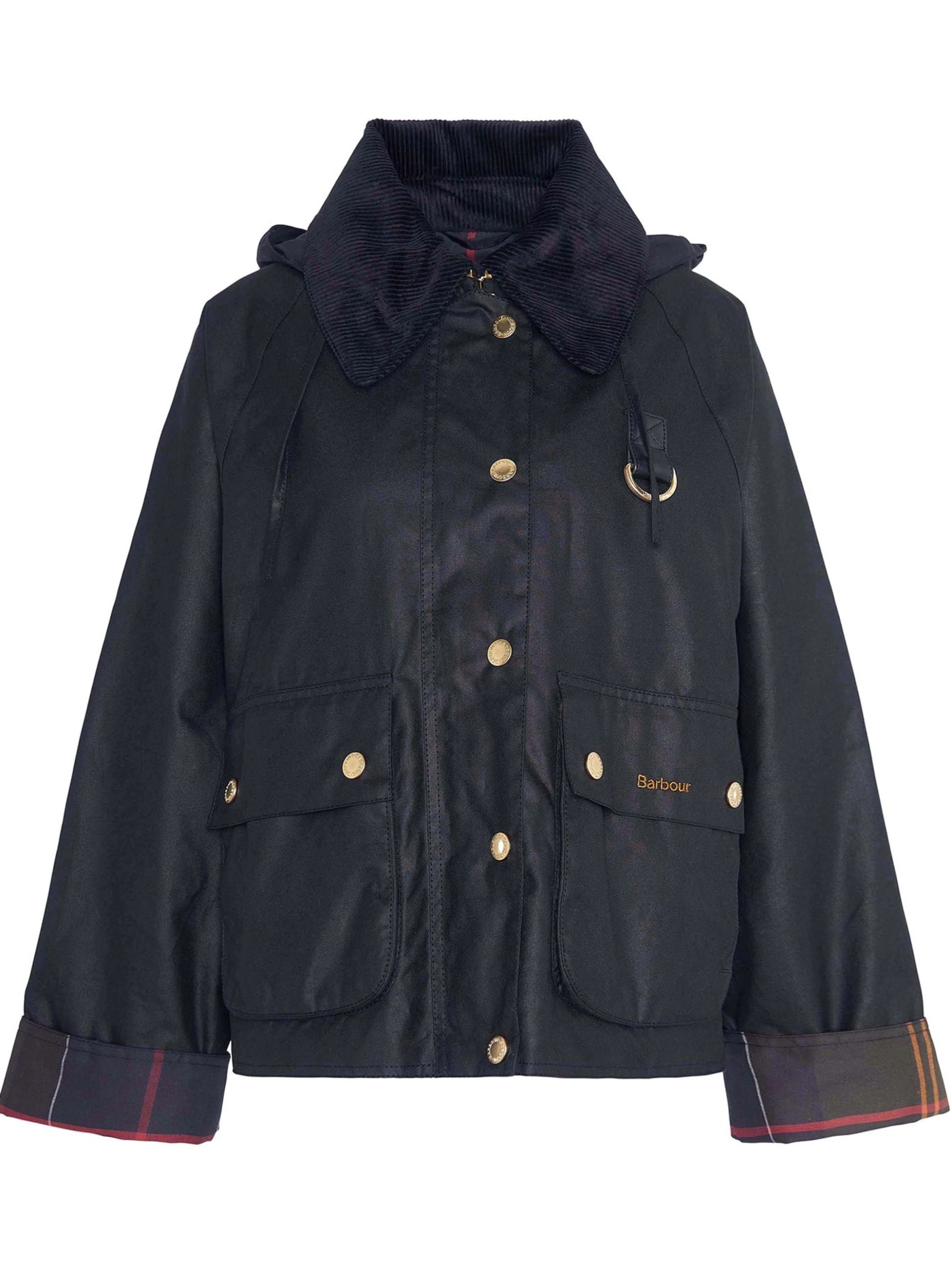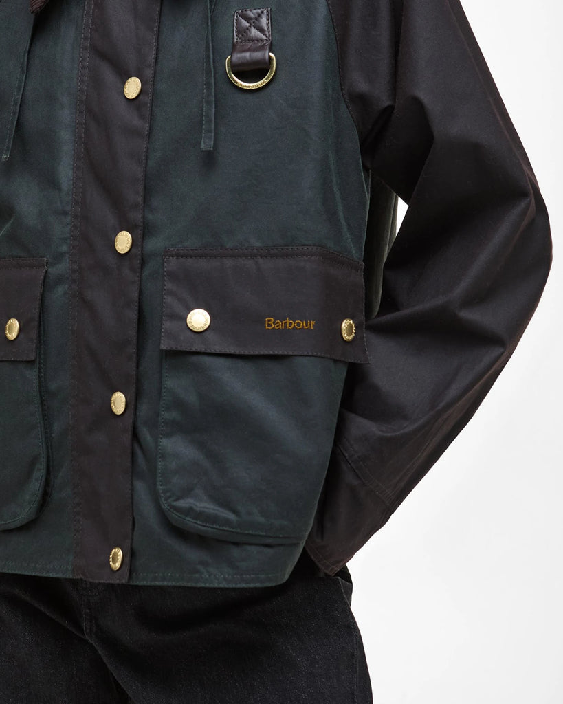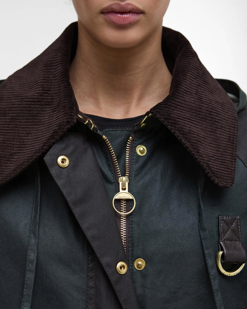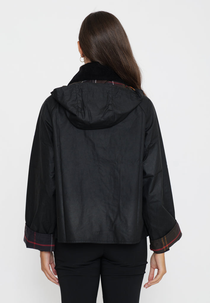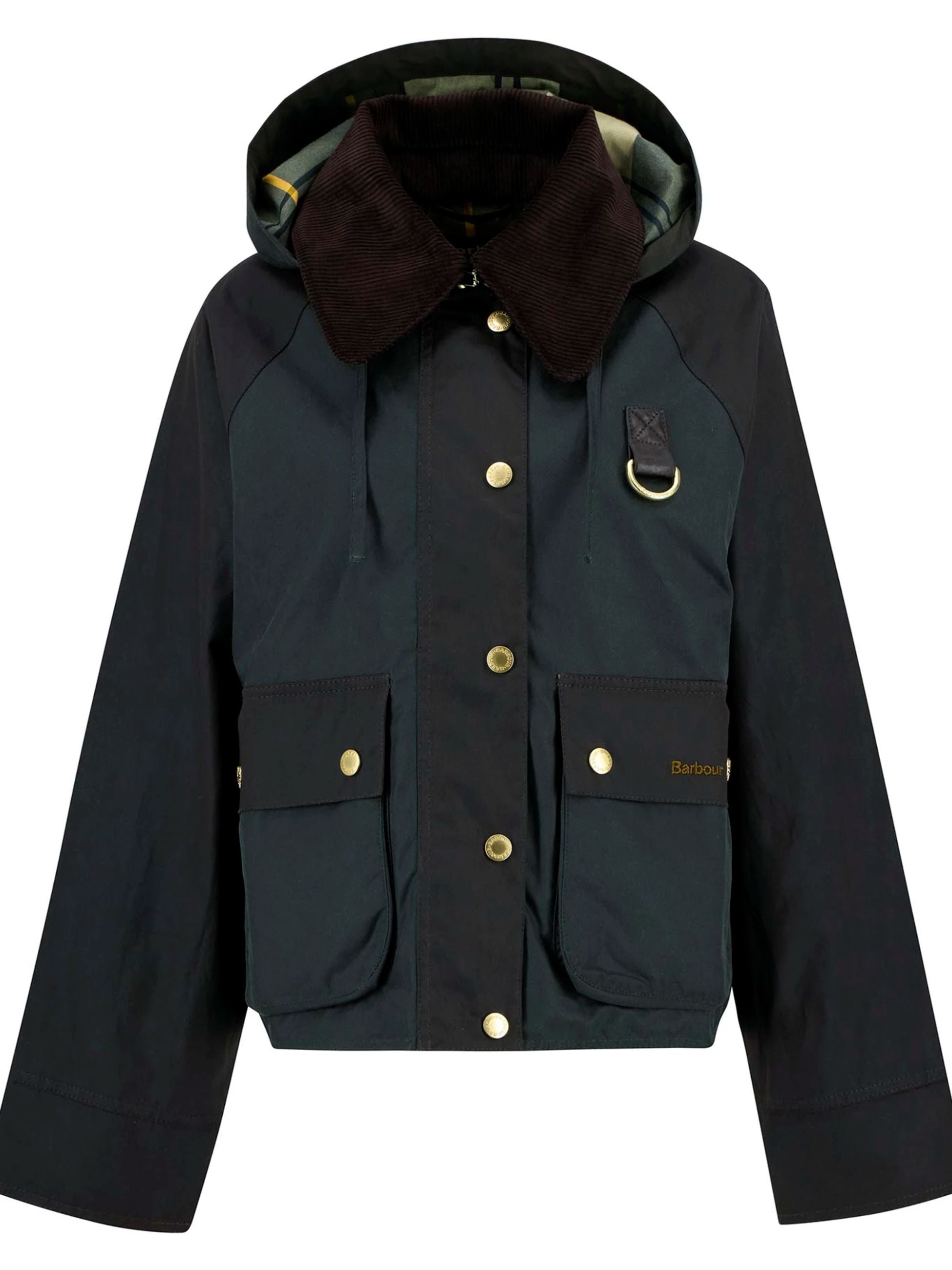 Uno dei modelli d'archivio più amati, il capospalla Reighton, anch'esso cerato, sfoggia tutti i classici elementi che caratterizzano l’originale, come il dettaglio con anello a D sul petto e il cappuccio fisso. Un colletto oversize a coste sottili e le finiture in tartan sui polsini completano il tutto regalando un tocco contemporaneo.