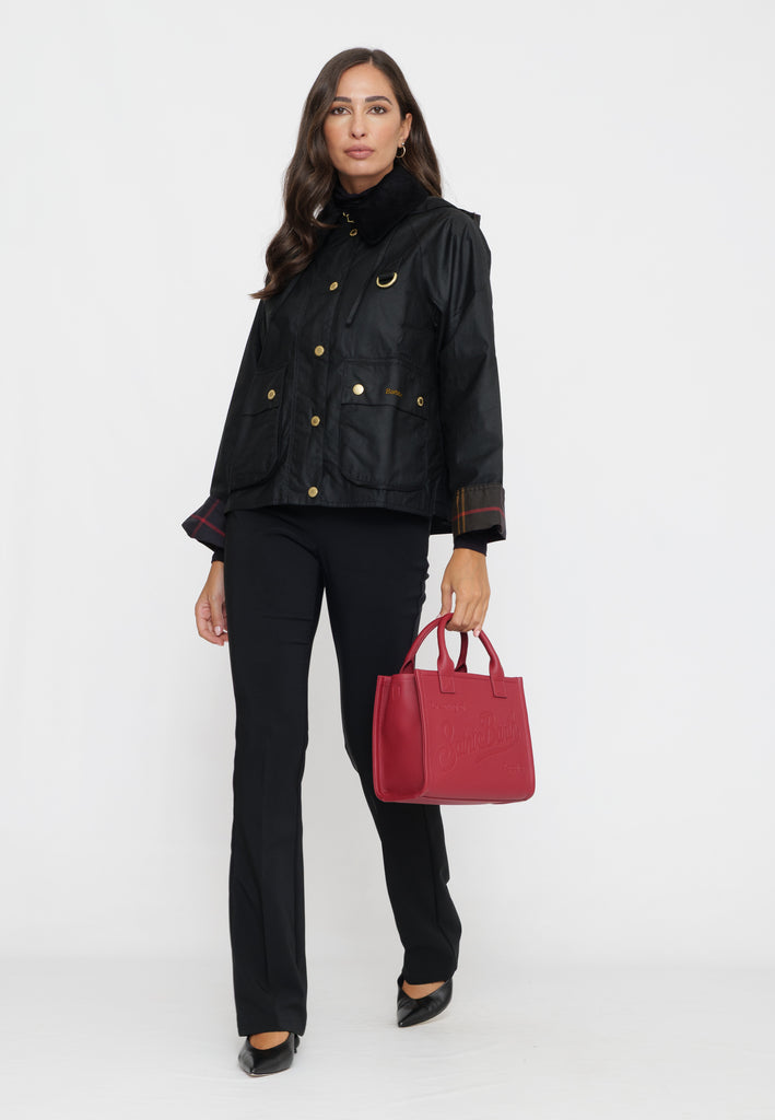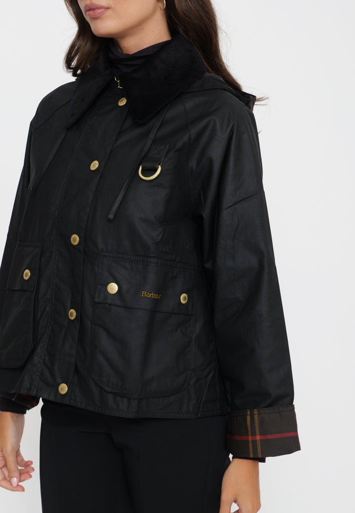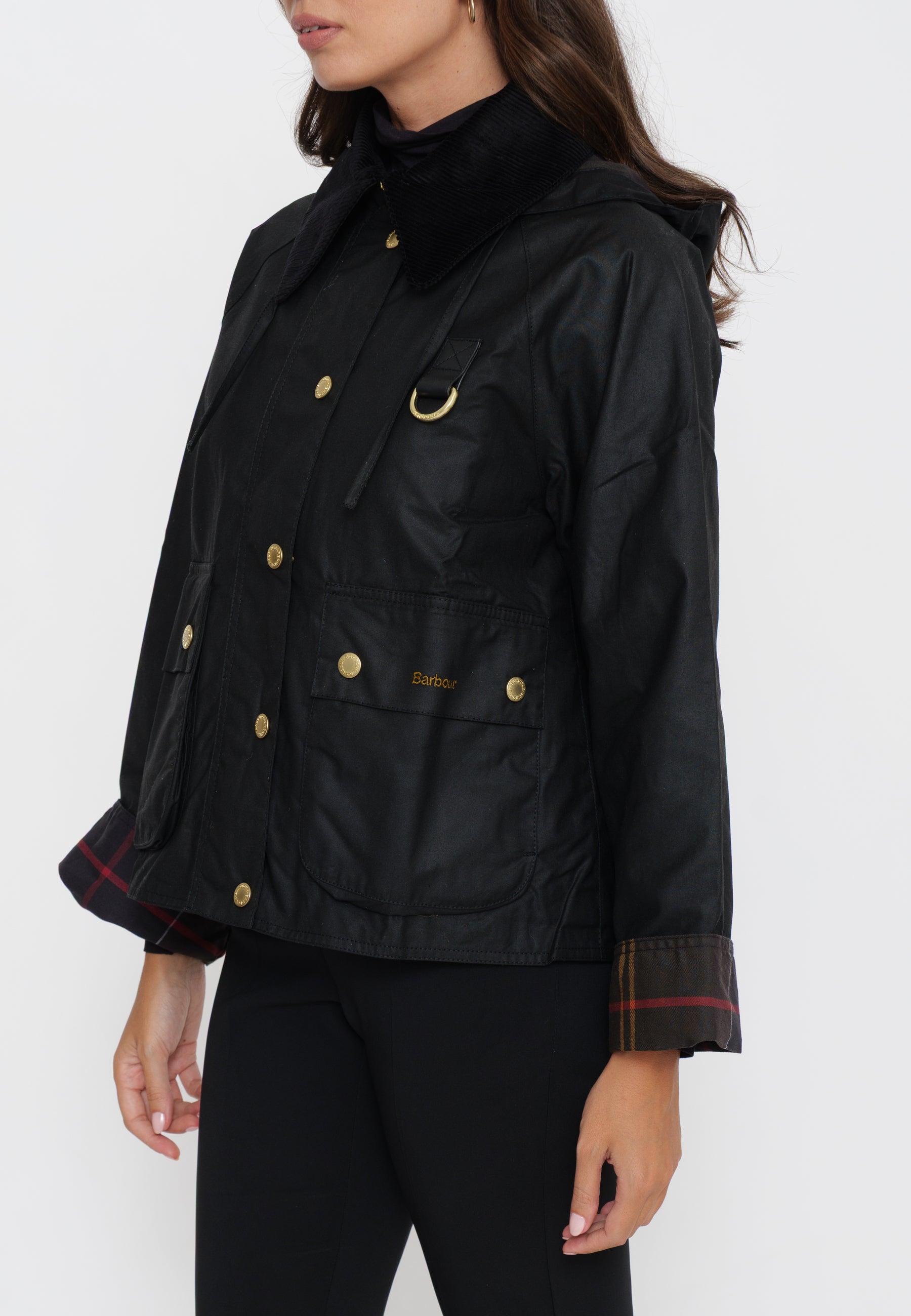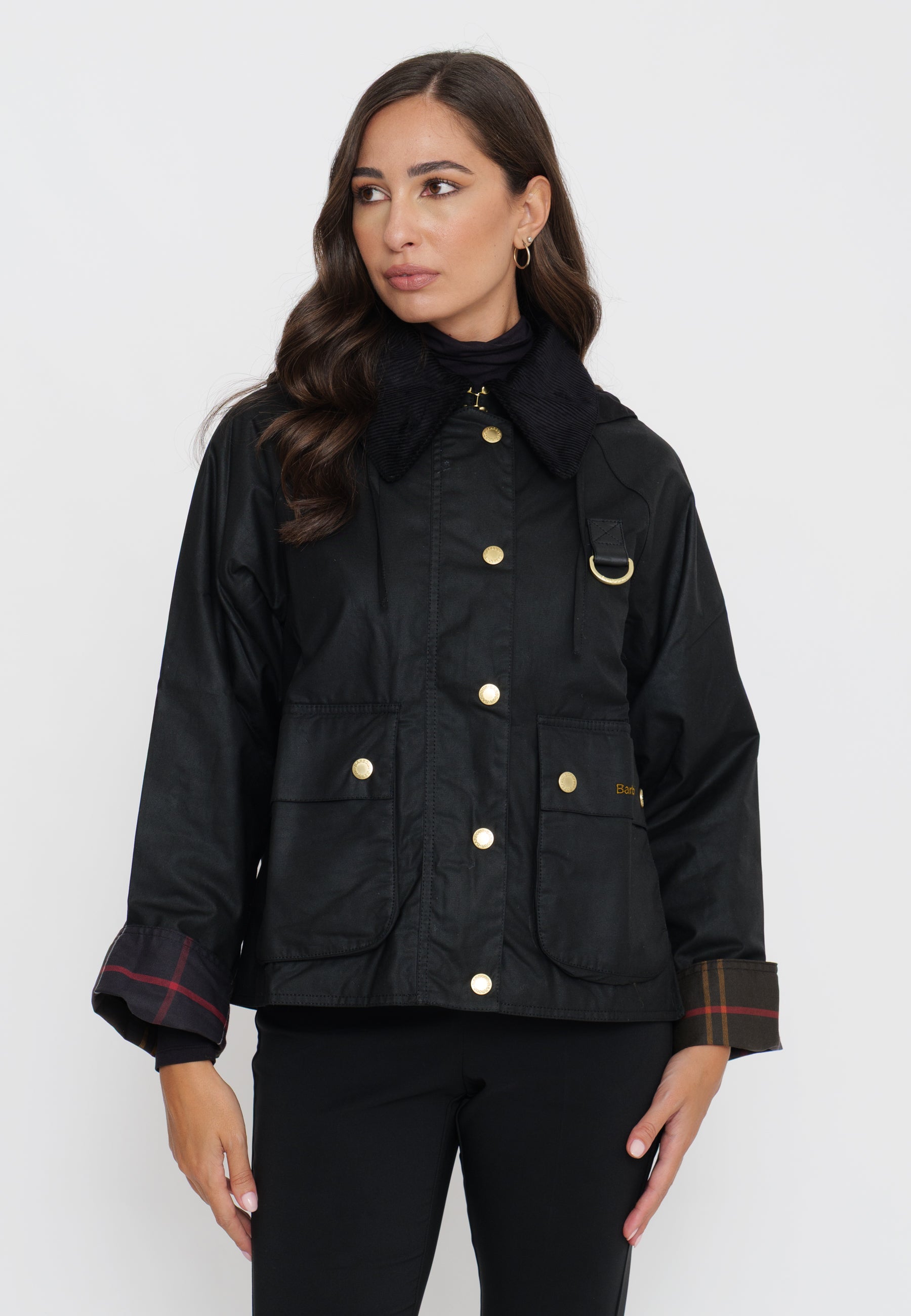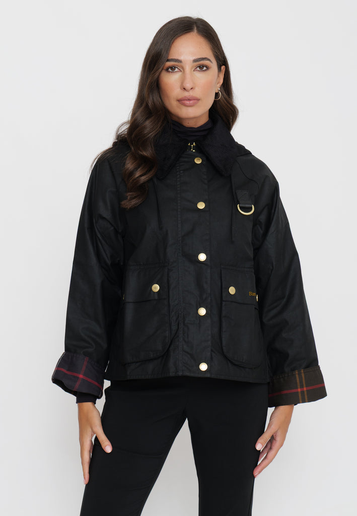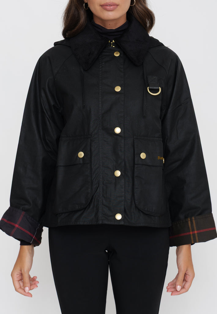 Uno dei modelli d'archivio più amati, il capospalla Reighton, anch'esso cerato, sfoggia tutti i classici elementi che caratterizzano l’originale, come il dettaglio con anello a D sul petto e il cappuccio fisso. Un colletto oversize a coste sottili e le finiture in tartan sui polsini completano il tutto regalando un tocco contemporaneo.