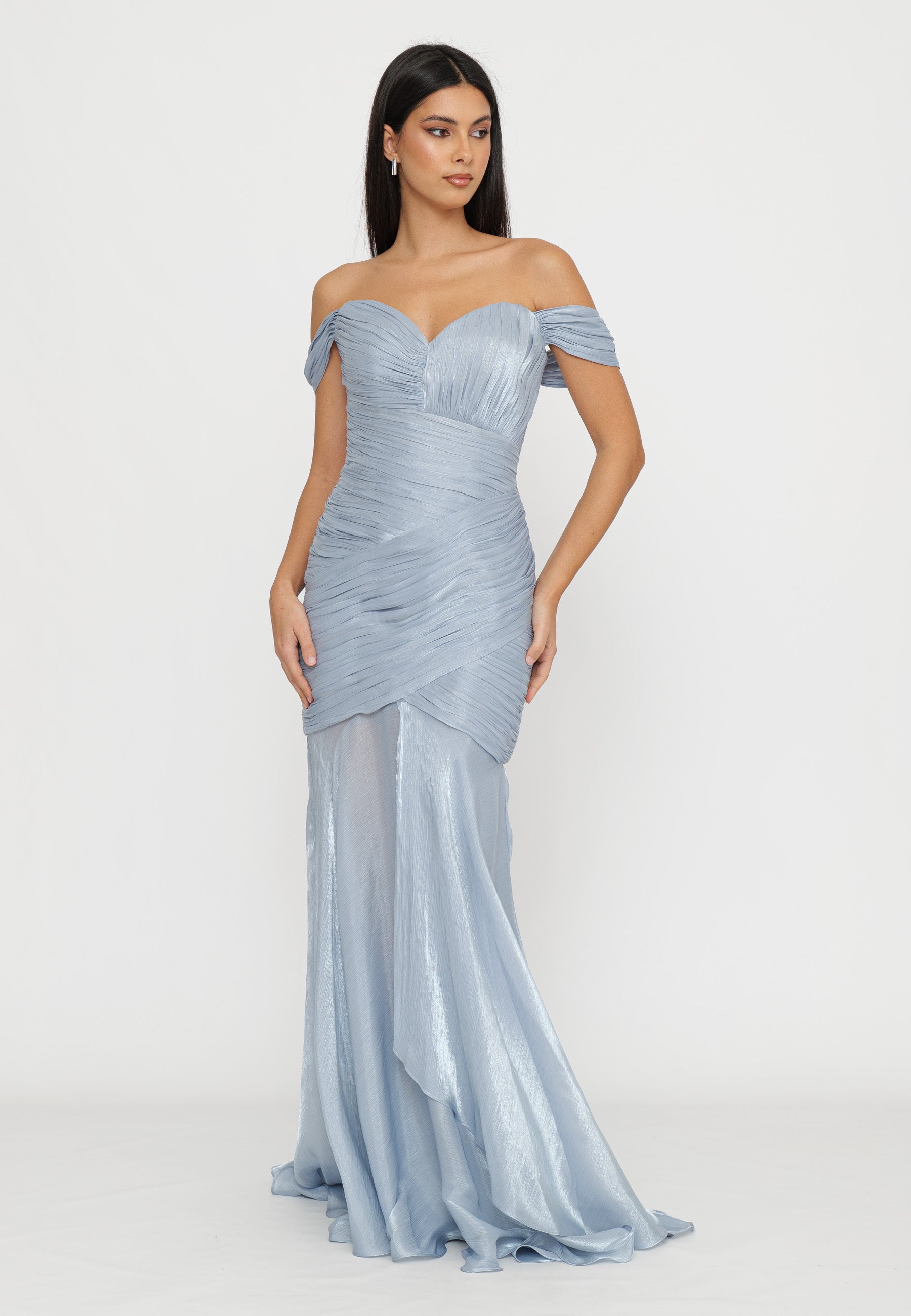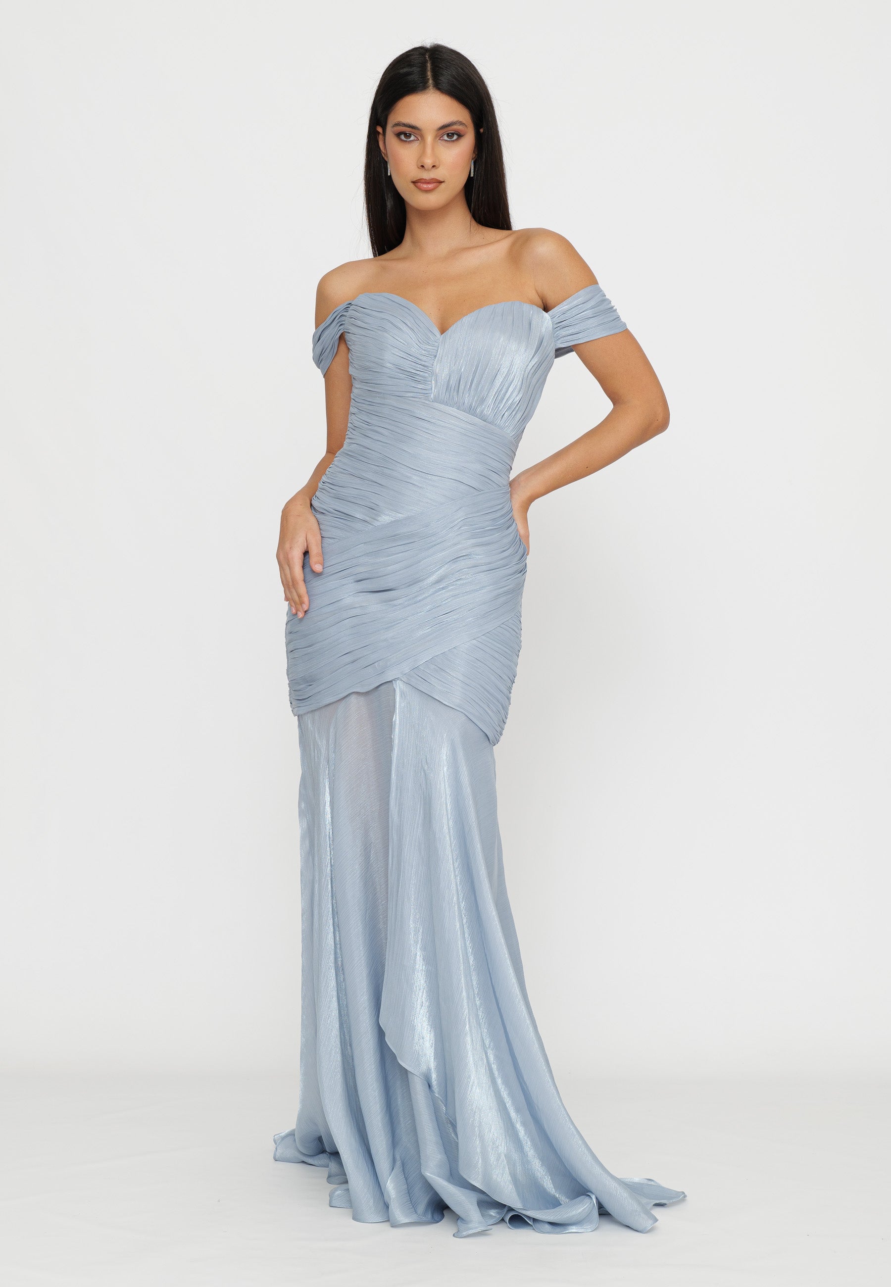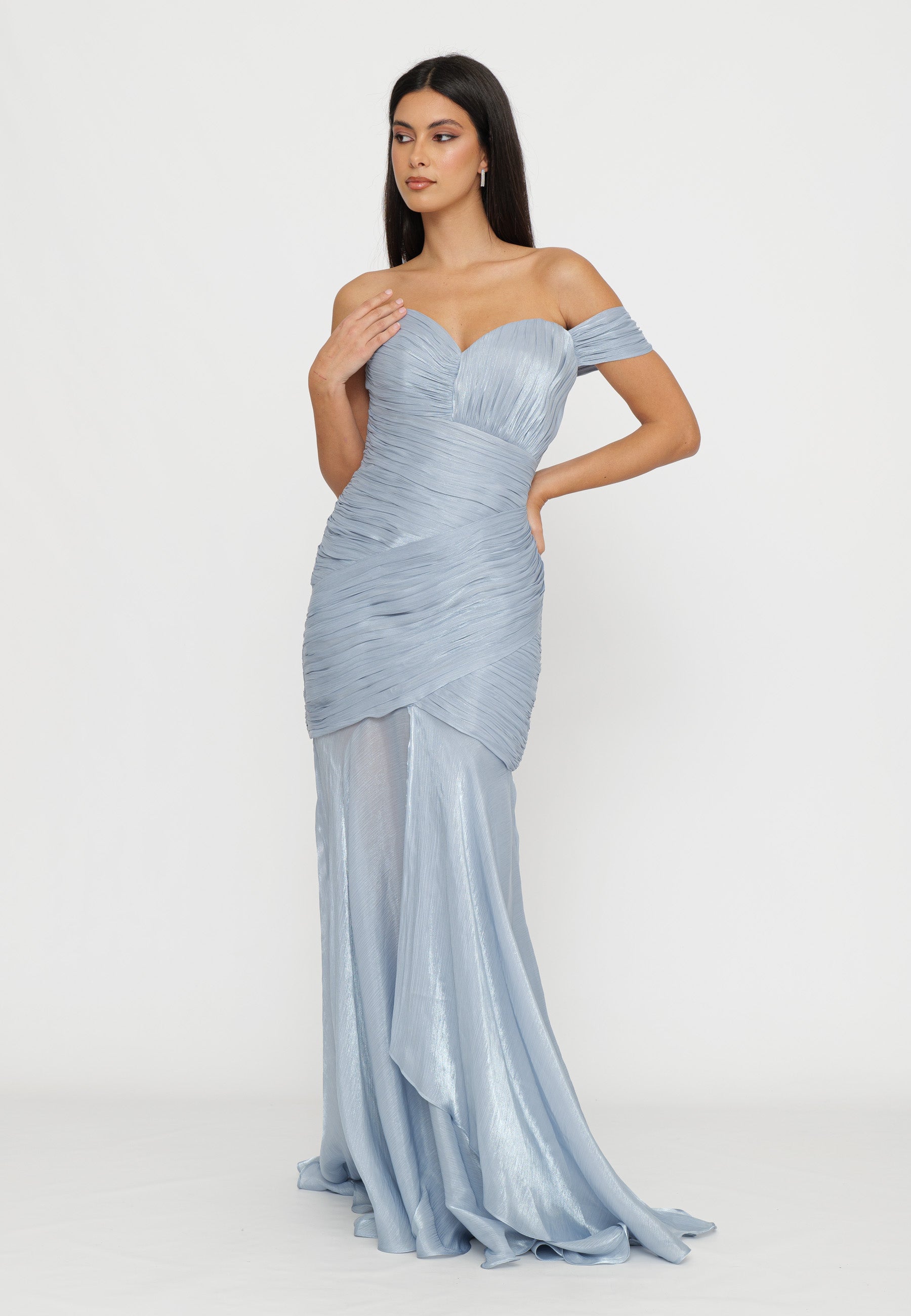 ABITO LUNGO LAME' CON DRAPPEGGI E FONDO ASIMMETRICO
