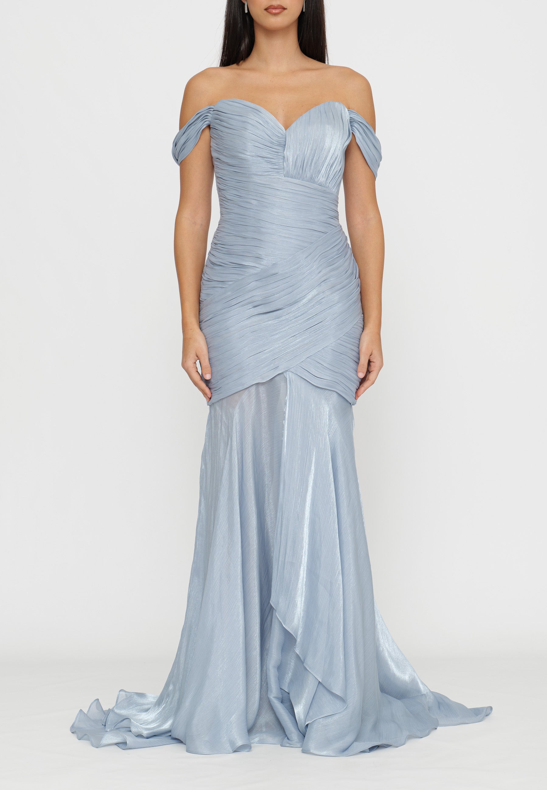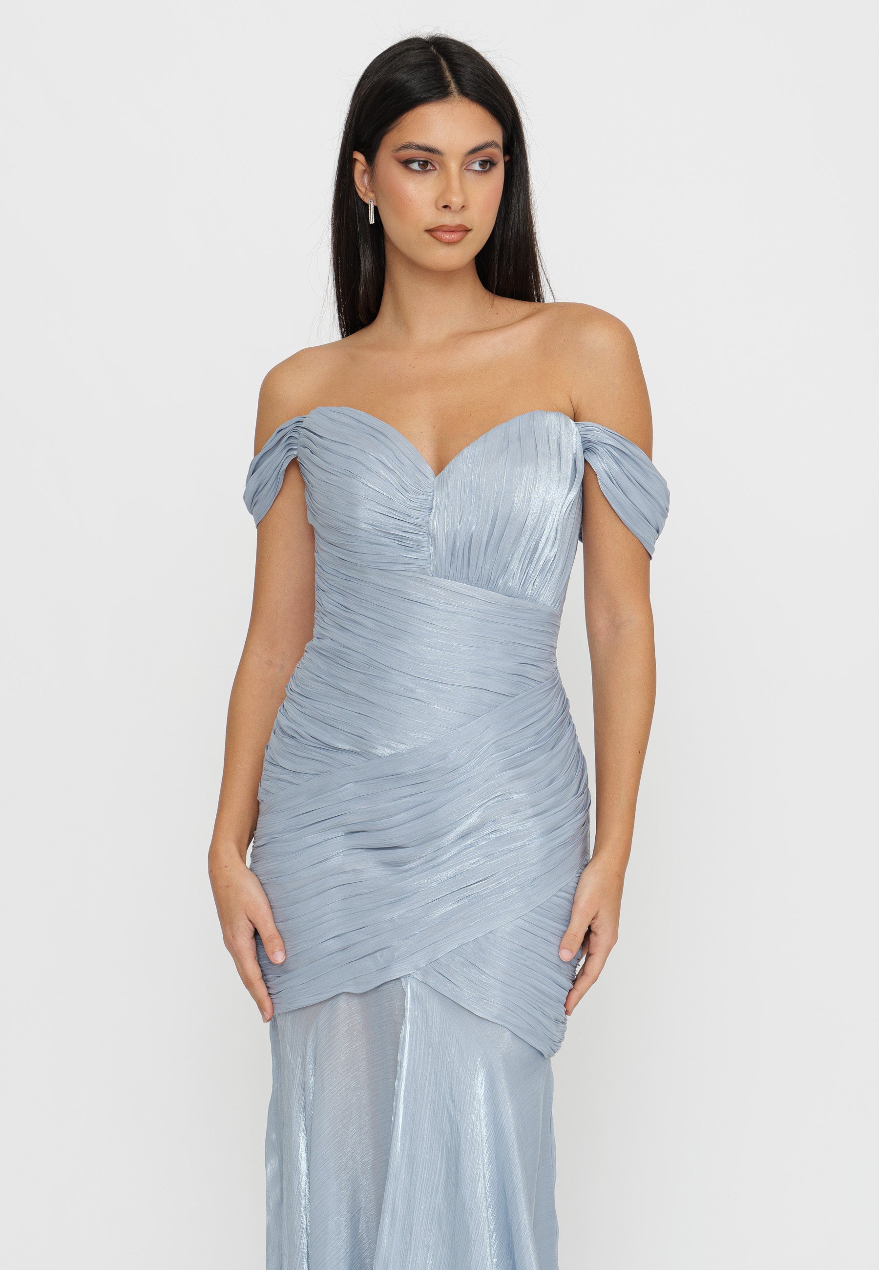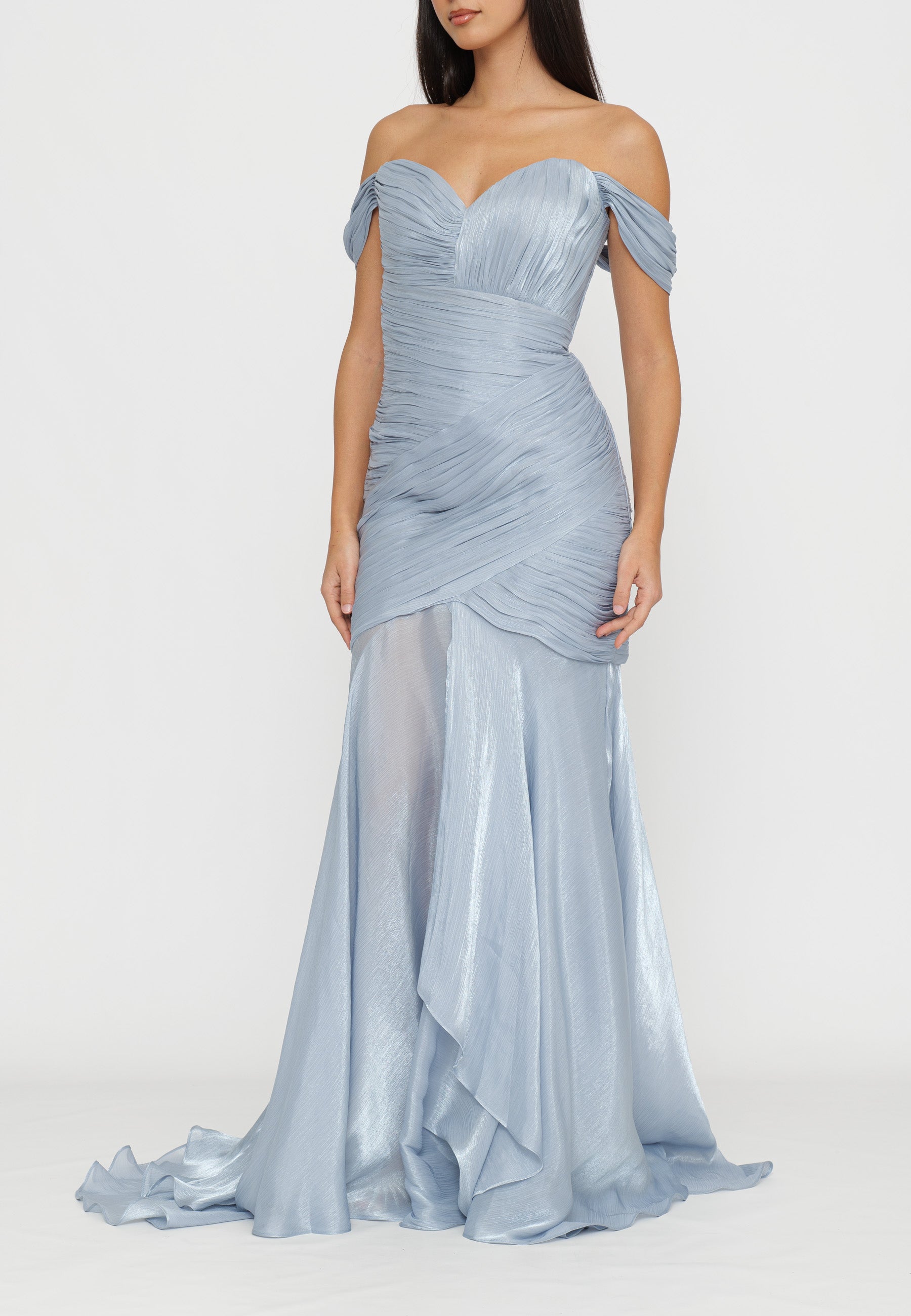 ABITO LUNGO LAME' CON DRAPPEGGI E FONDO ASIMMETRICO