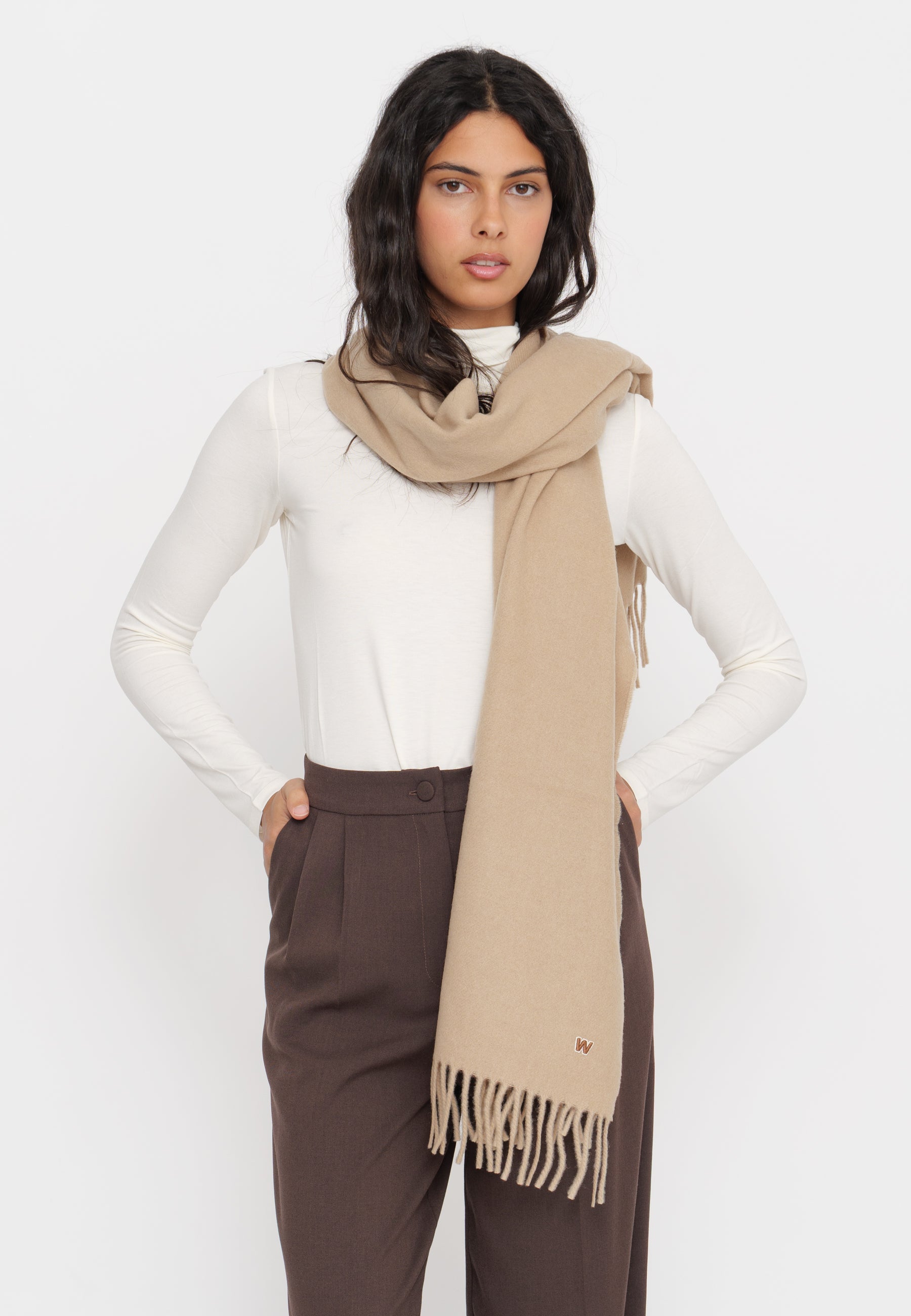 Stola dal design essenziale, personalizzata con piccolo patch "W" applicato sul fondo.