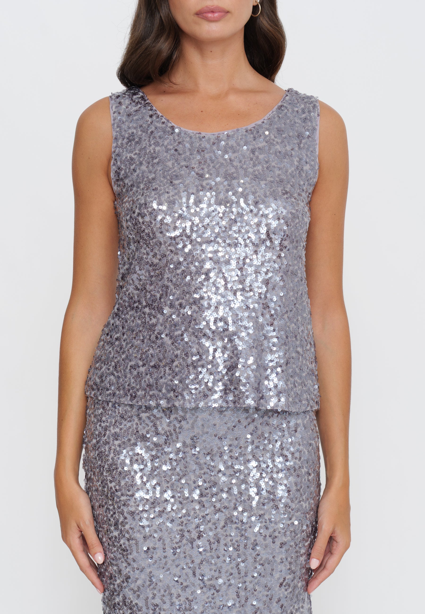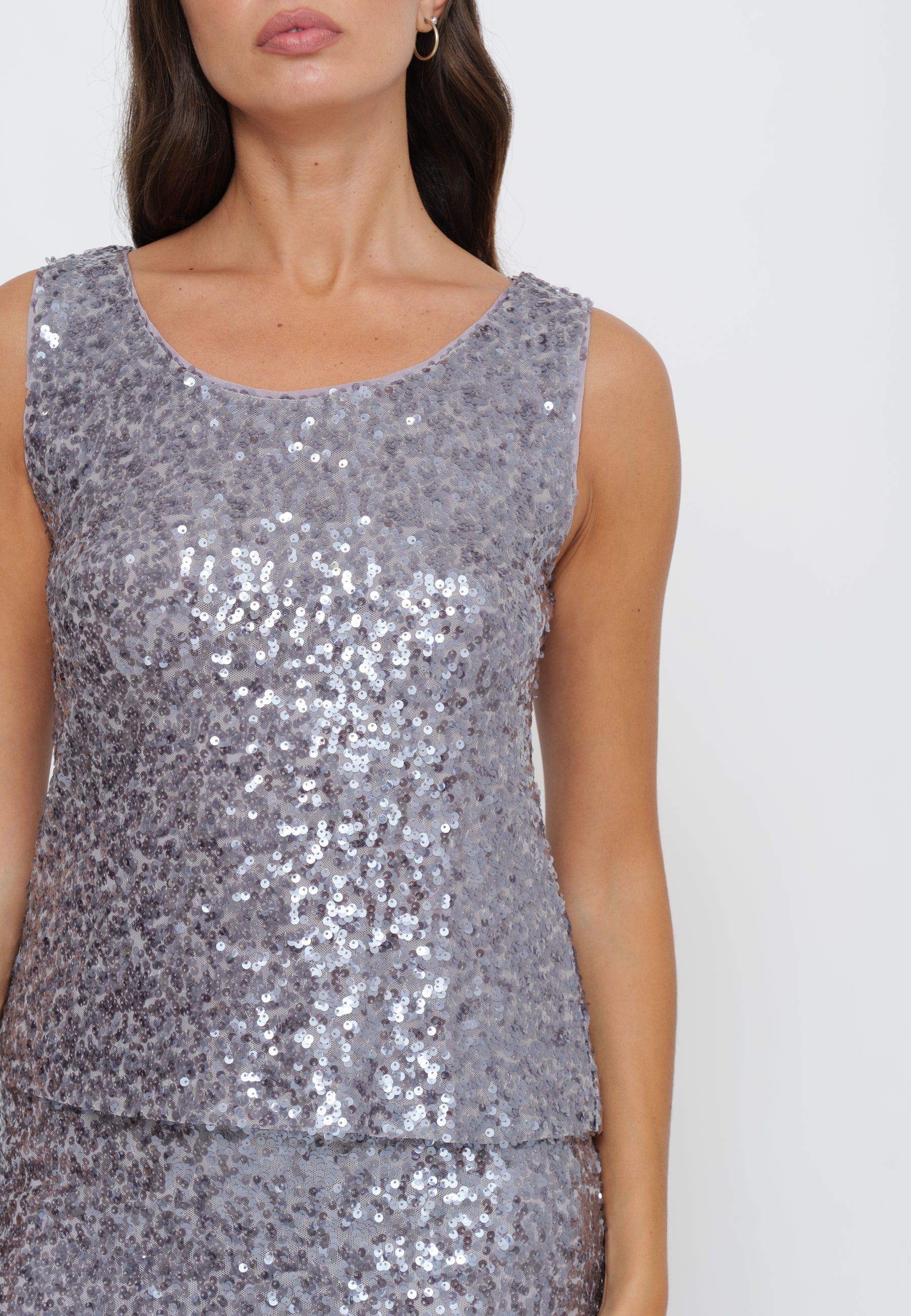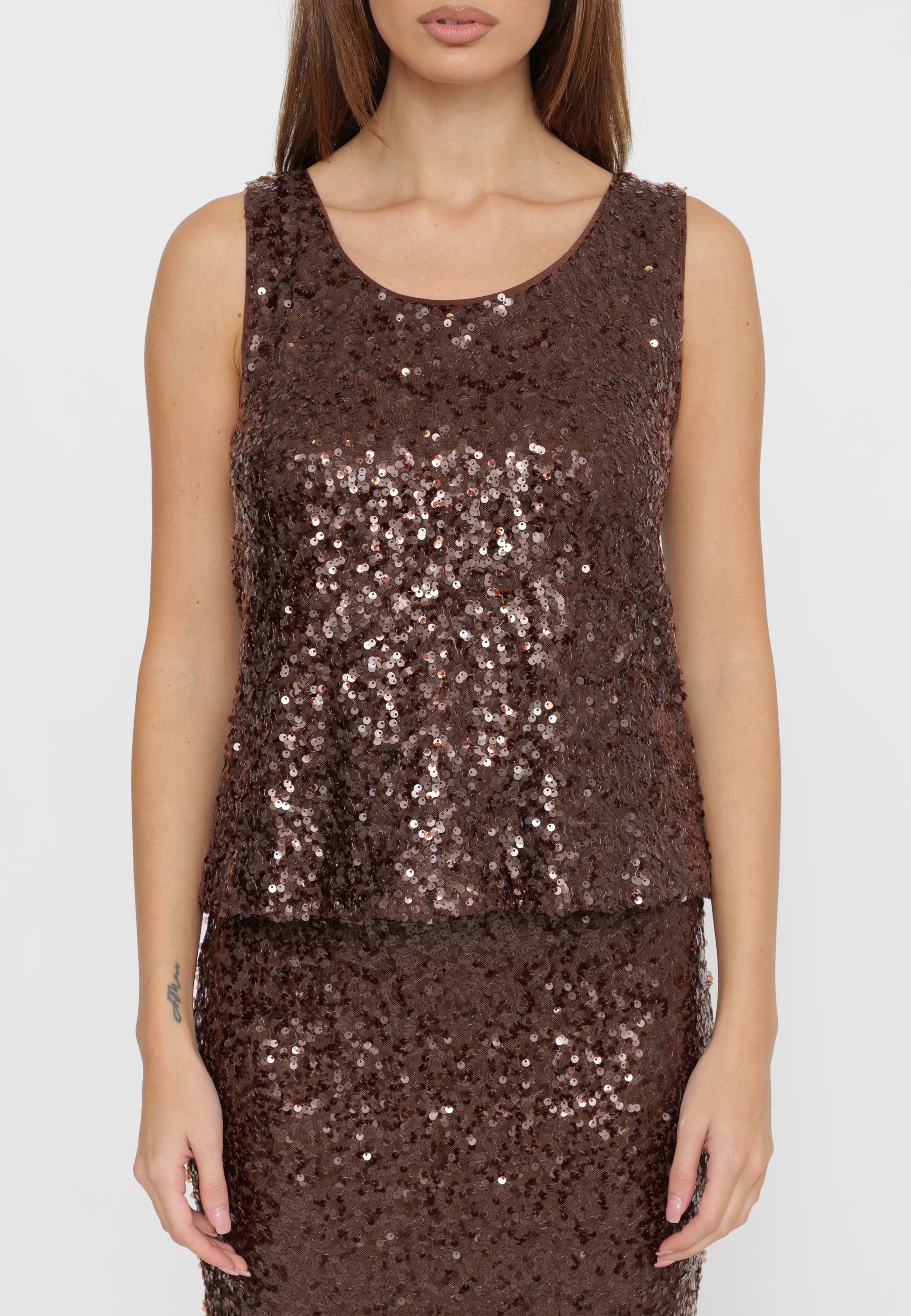 Esalta il tuo guardaroba con il top con paillettes. Questo capo, sapientemente realizzato, unisce un design raffinato a paillettes scintillanti, offrendo un tocco sofisticato a qualsiasi outfit. Perfetto per eventi serali o per un elegante look da giorno, aggiunge un tocco di luminosità discreto, ma sorprendente che valorizza il tuo look generale con eleganza e sicurezza.
