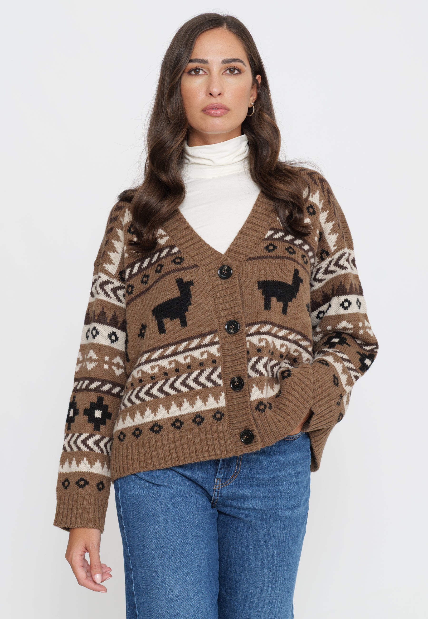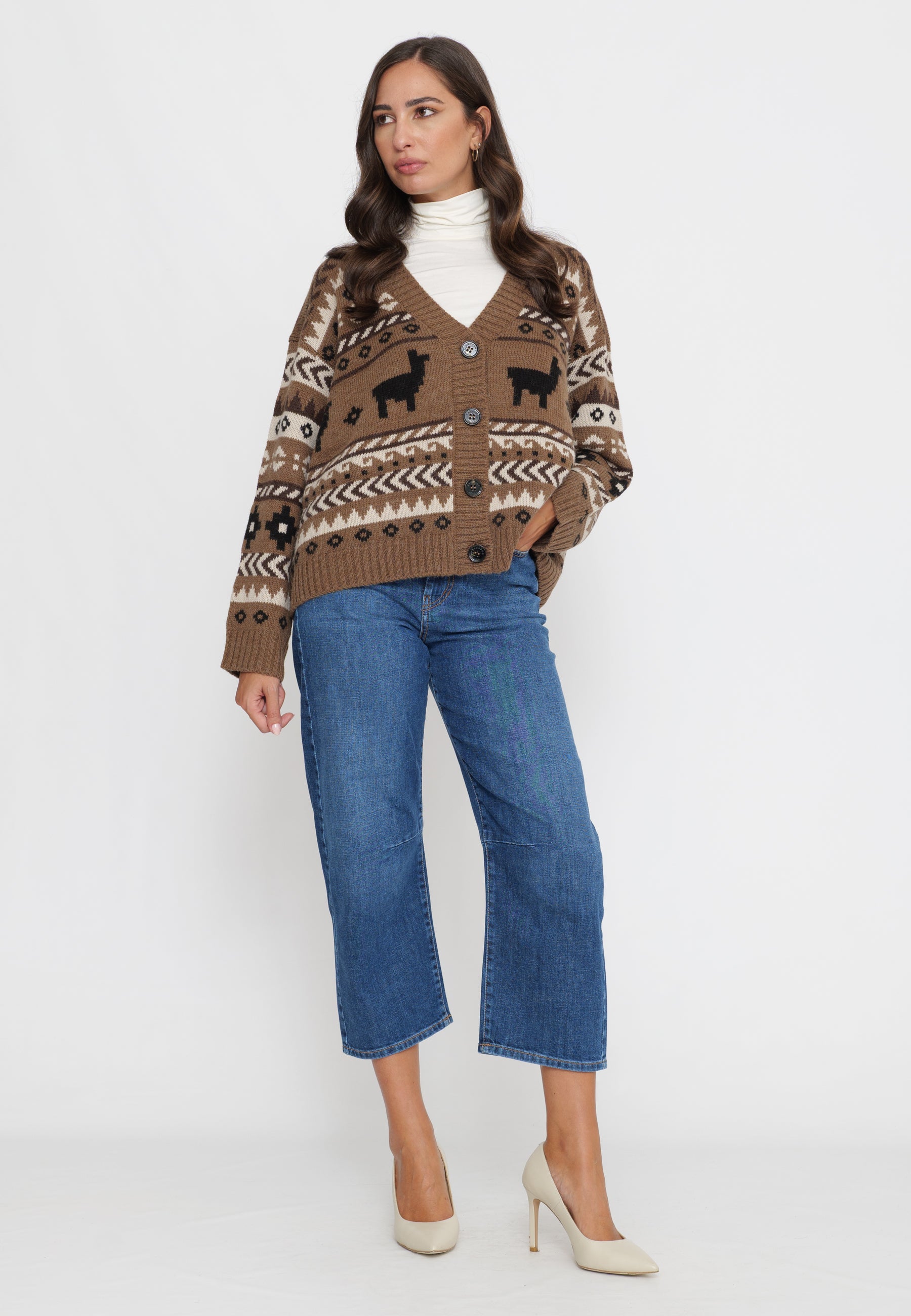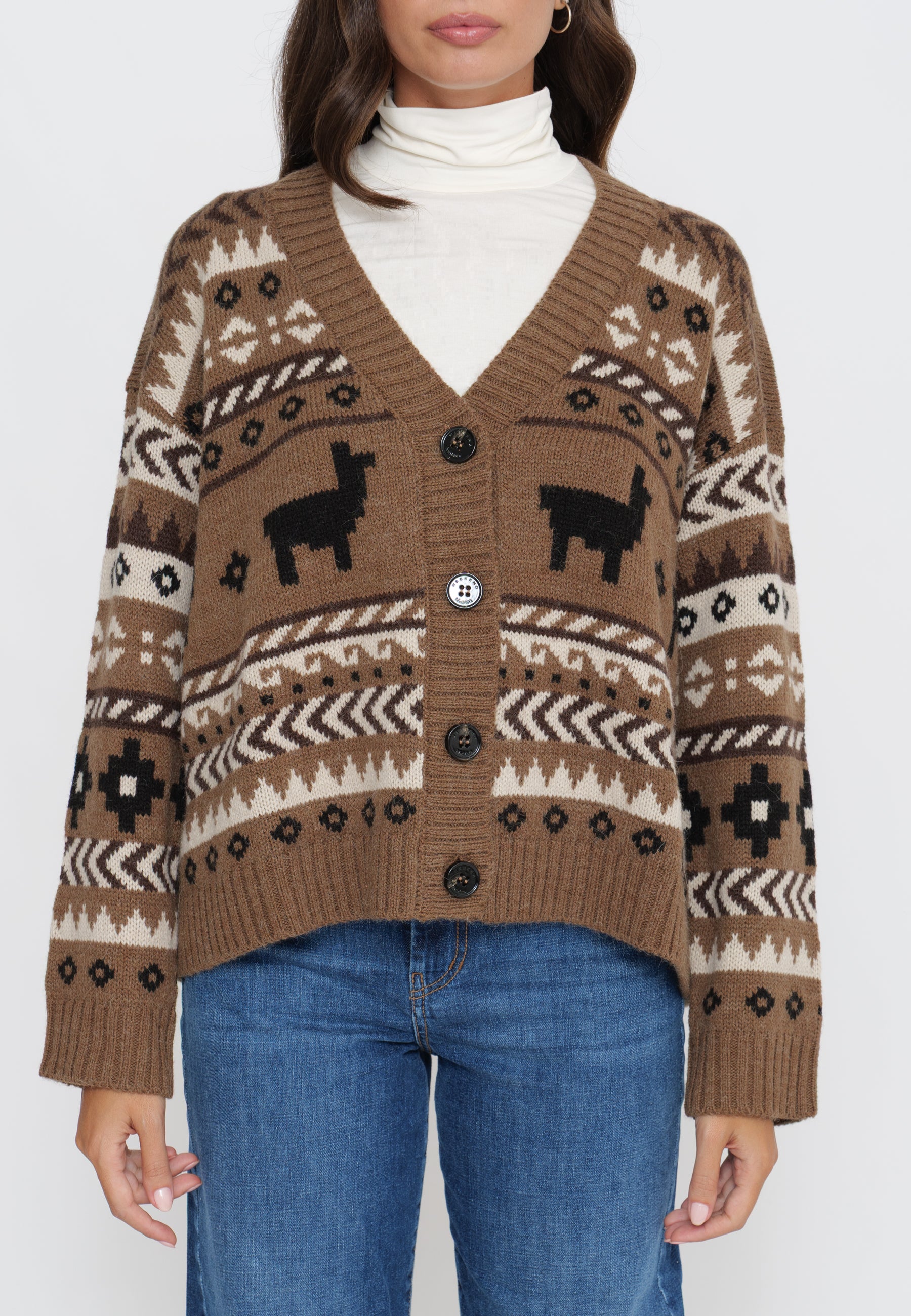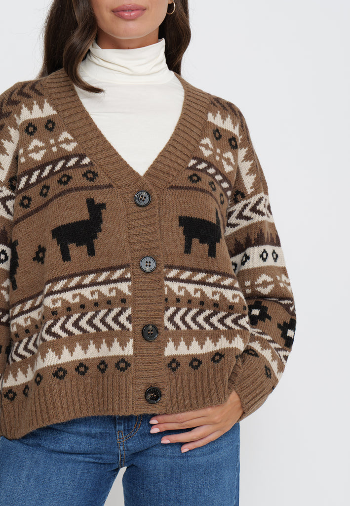 CARDIGAN MAGLIA IN JACQUARD DI ALPACA E LANA
