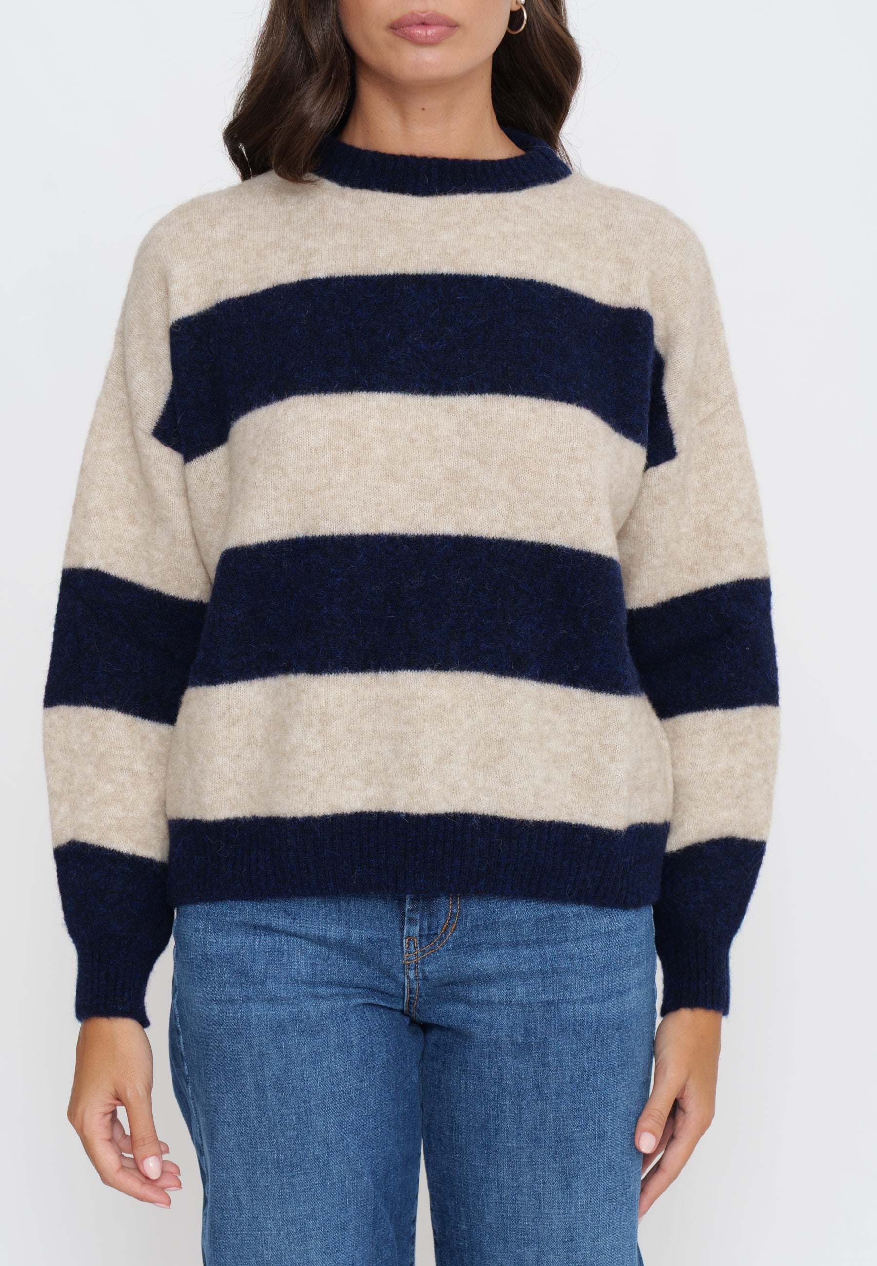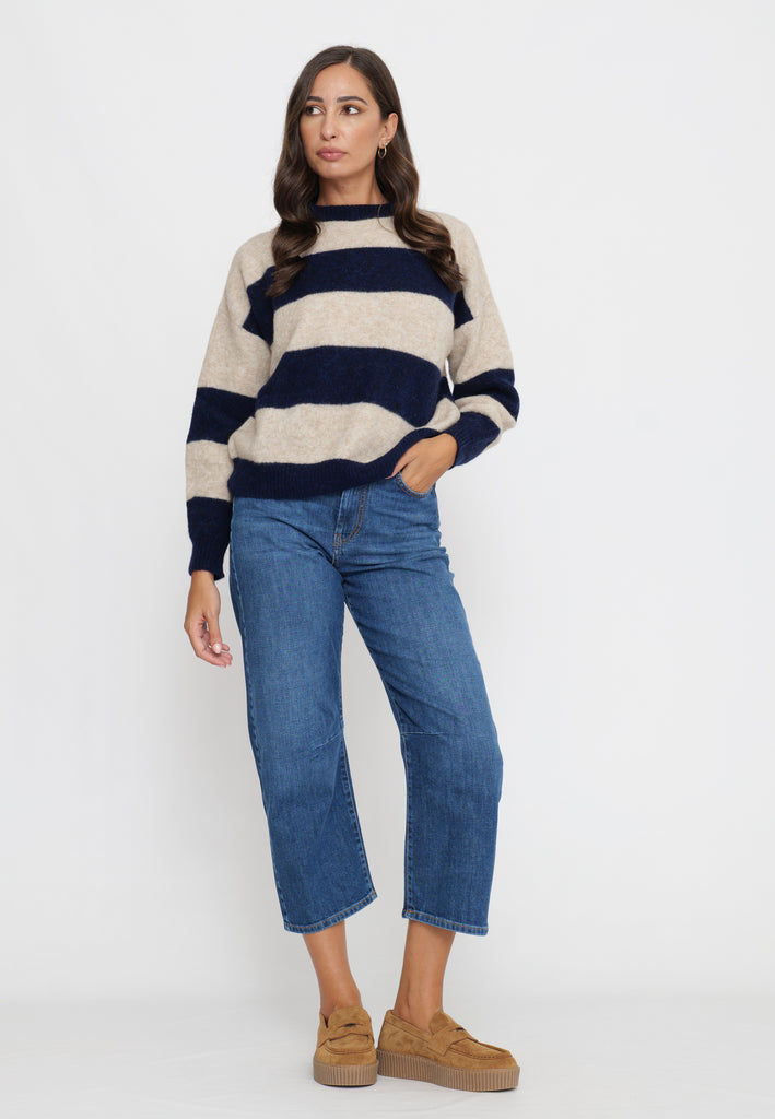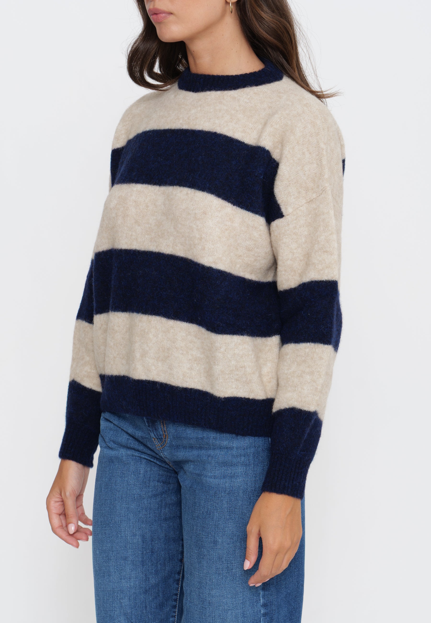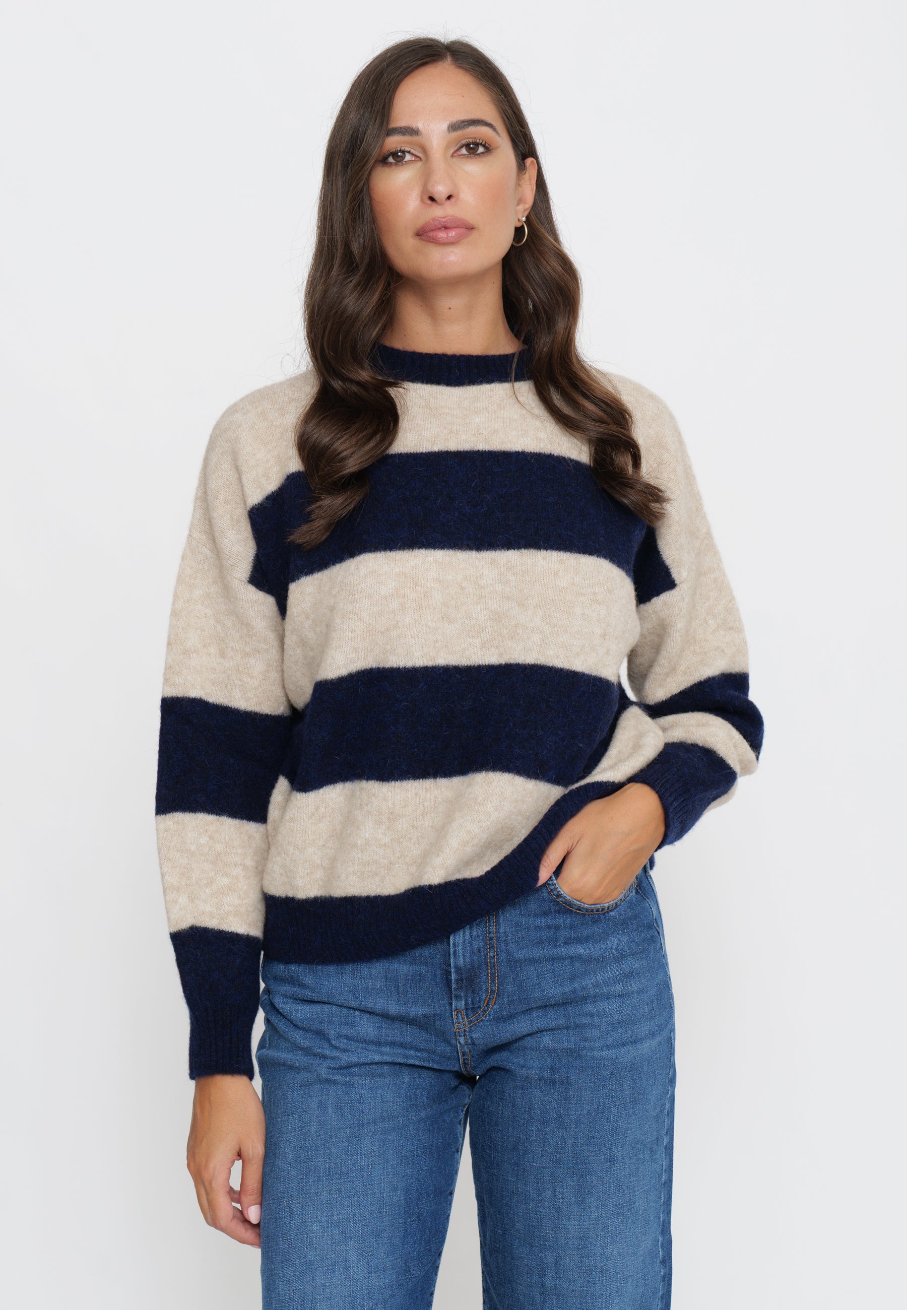 Questa maglia a righe, realizzata in un pregiato mix di alpaca e lana, garantisce calore e comfort superiori, ideali per le giornate più fredde. Il design a righe aggiunge un tocco di eleganza, perfetto per chi cerca un capo versatile e raffinato.