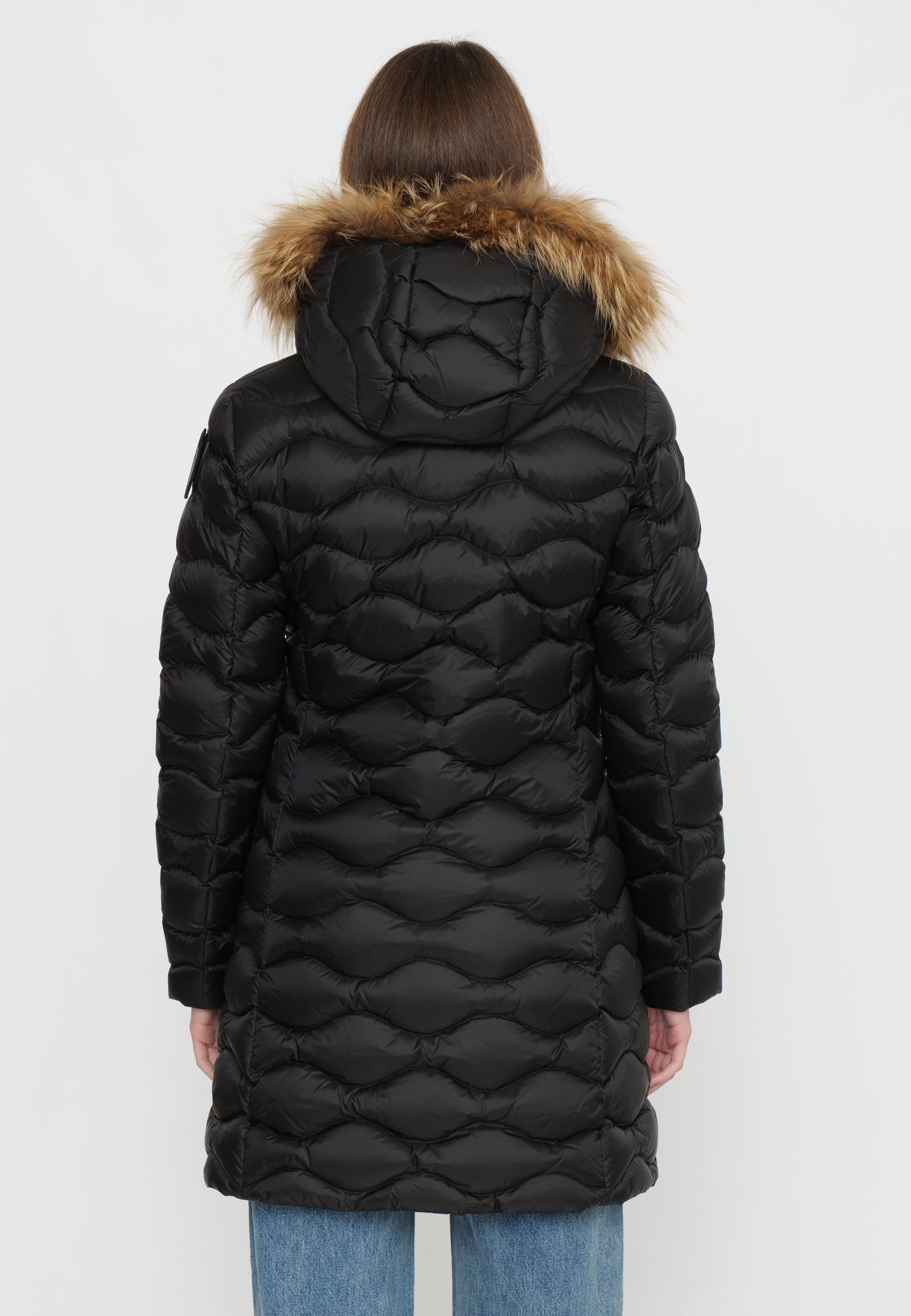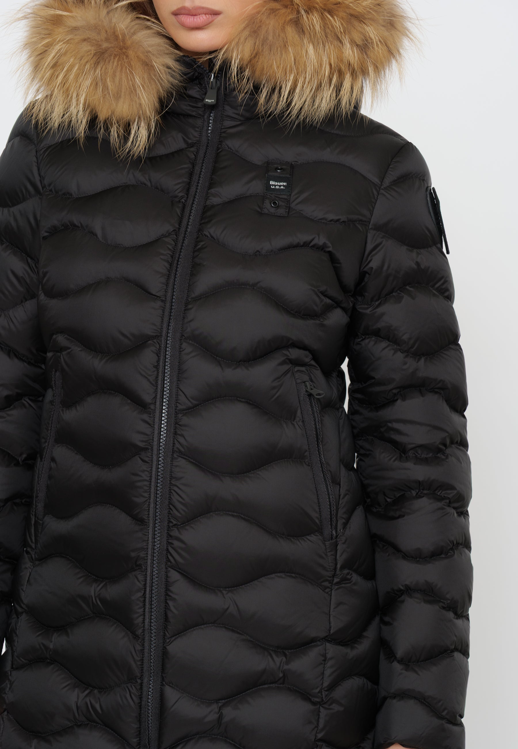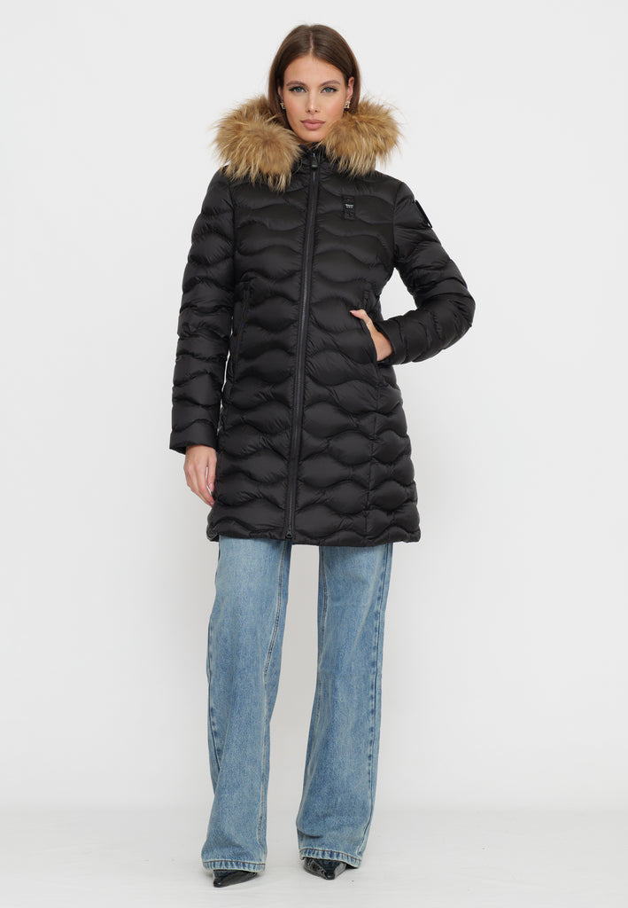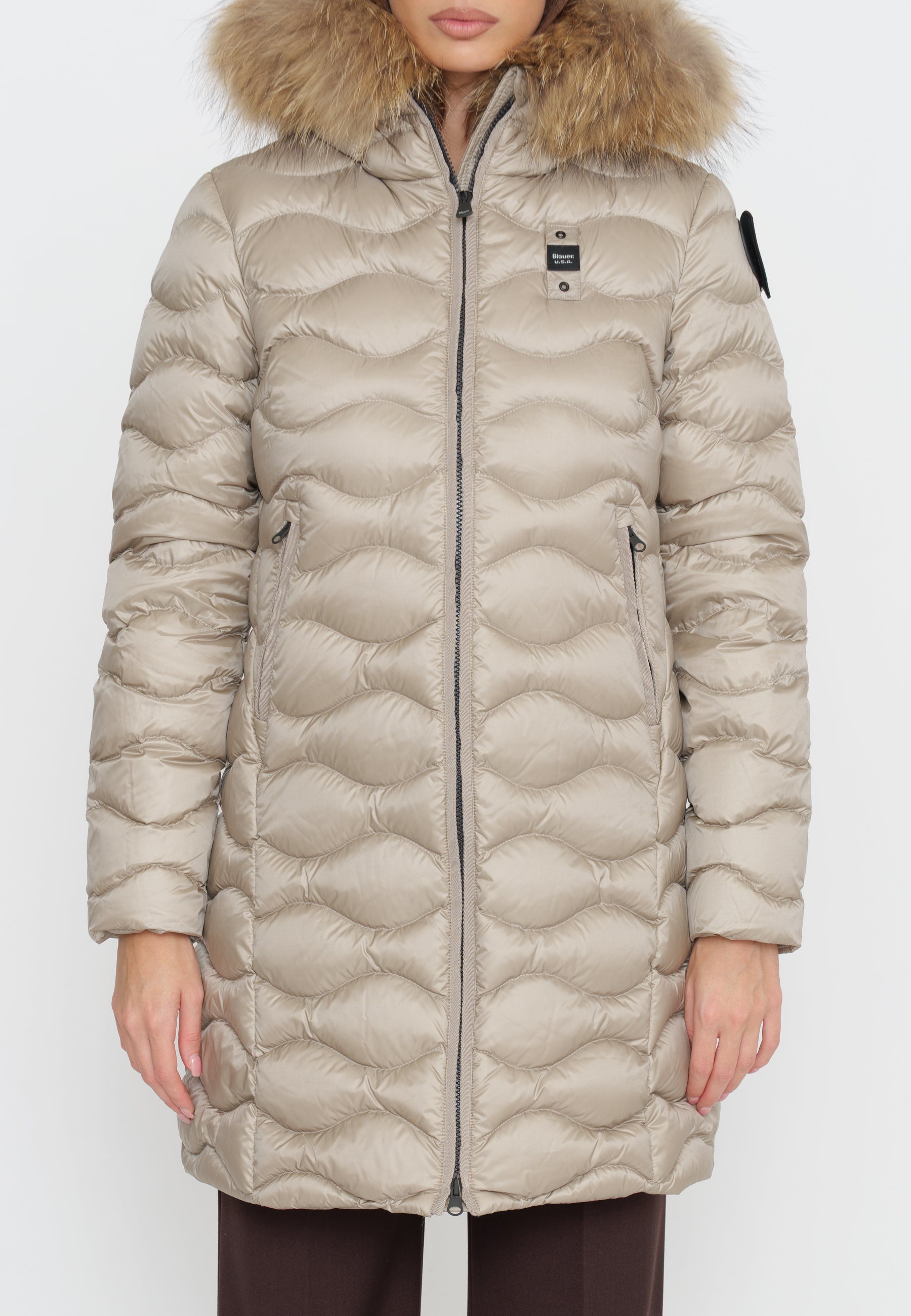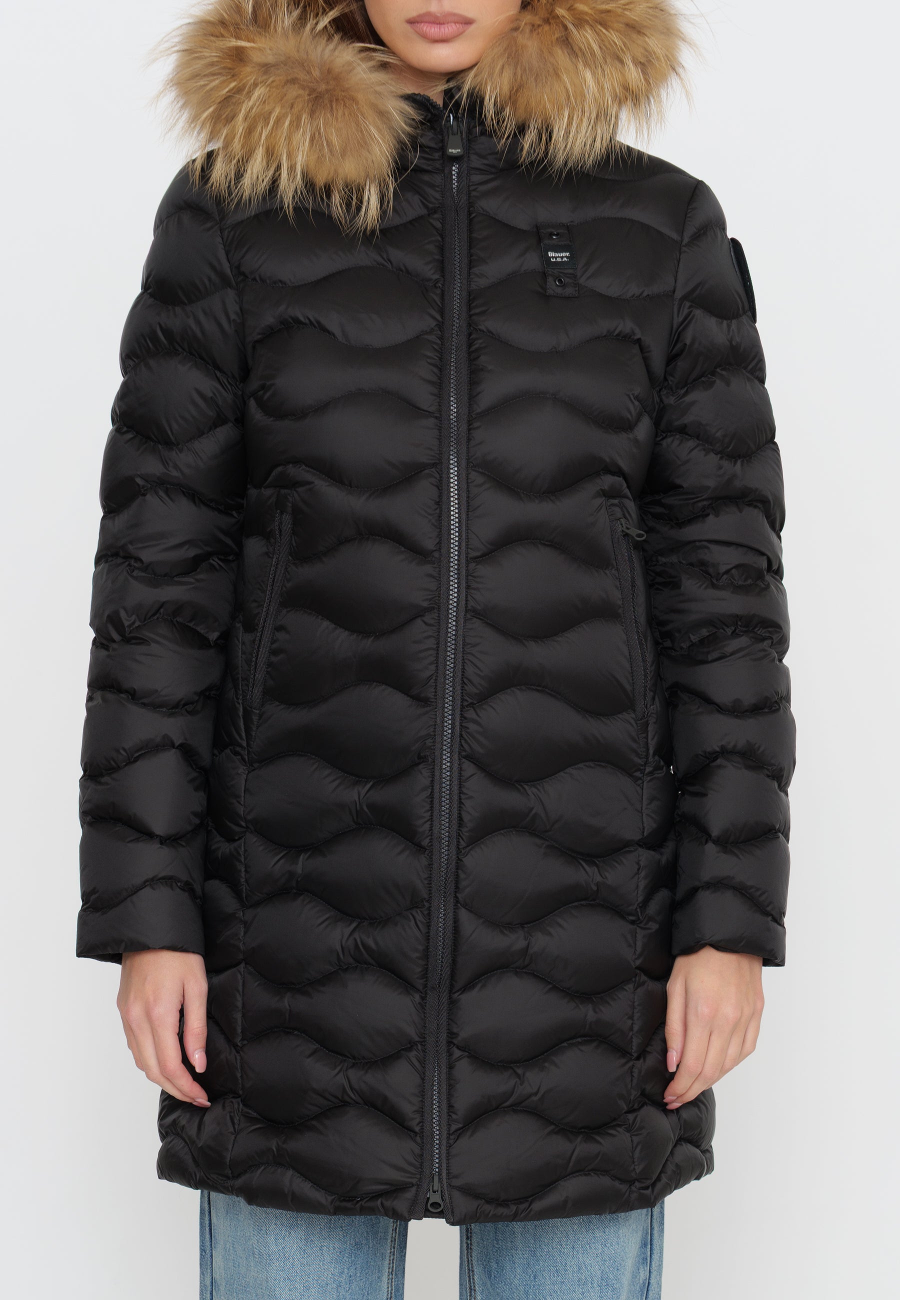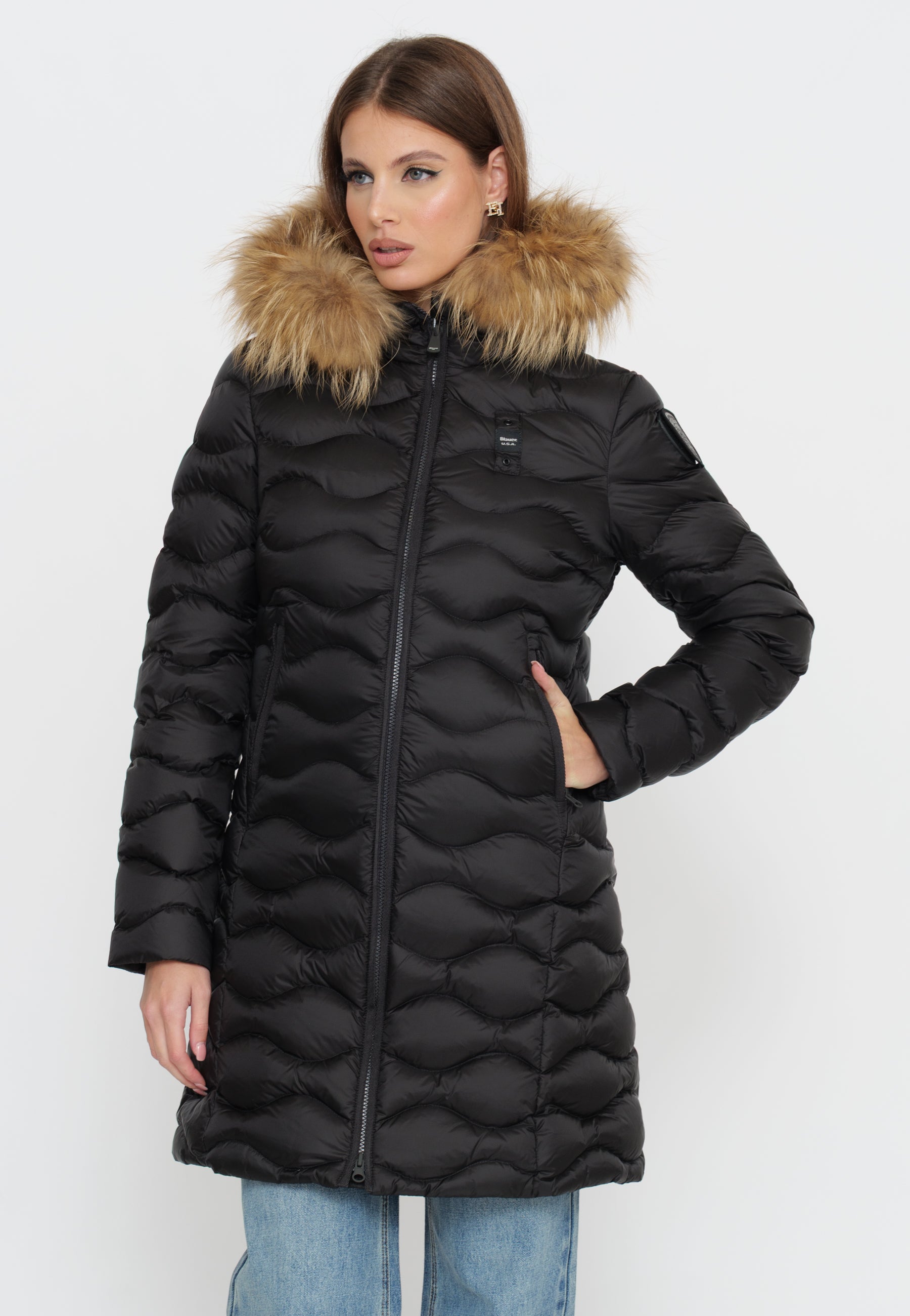 Piumino lungo donna dalla silhouette elegante e raffinata, caratterizzato da trapuntatura orizzontale che esalta la linea del punto vita. Realizzato con imbottitura in piuma 90/10 (250 gr), garantisce isolamento termico superiore mantenendo leggerezza. Il cappuccio fisso presenta profilo in vera pelliccia removibile, mentre l'interno in contrasto colore aggiunge un dettaglio sofisticato. Dotato di chiusura zip con copri cursore, tasche esterne e interne con velcro per praticità. Disponibile in tonalità fashion, rappresenta la scelta ideale per chi ricerca qualità costruttiva e stile contemporaneo.