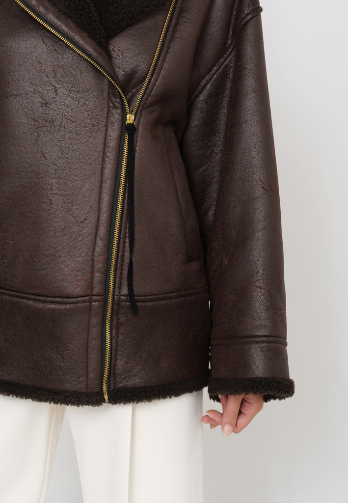 Montone con chiusura a zip, progettato per offrire calore ottimale e praticità. Realizzata in shearling di alta qualità, combina isolamento naturale e resistenza, garantendo protezione dal freddo con un look essenziale ed elegante. La zip frontale assicura una facile vestibilità, rendendo questa giacca una scelta funzionale e raffinata per la stagione invernale.