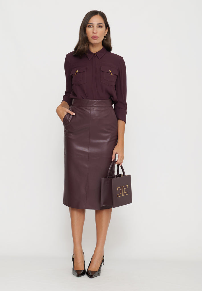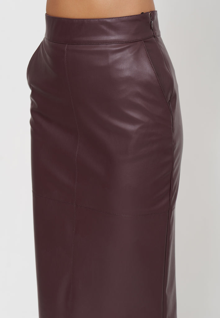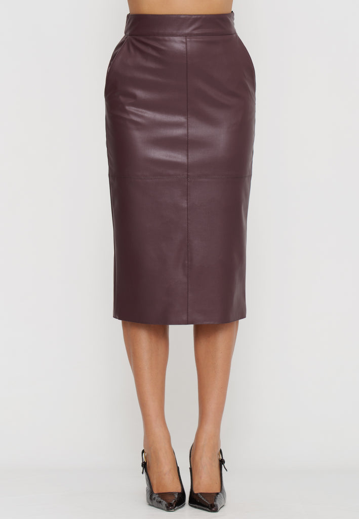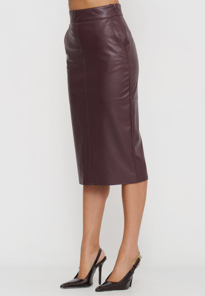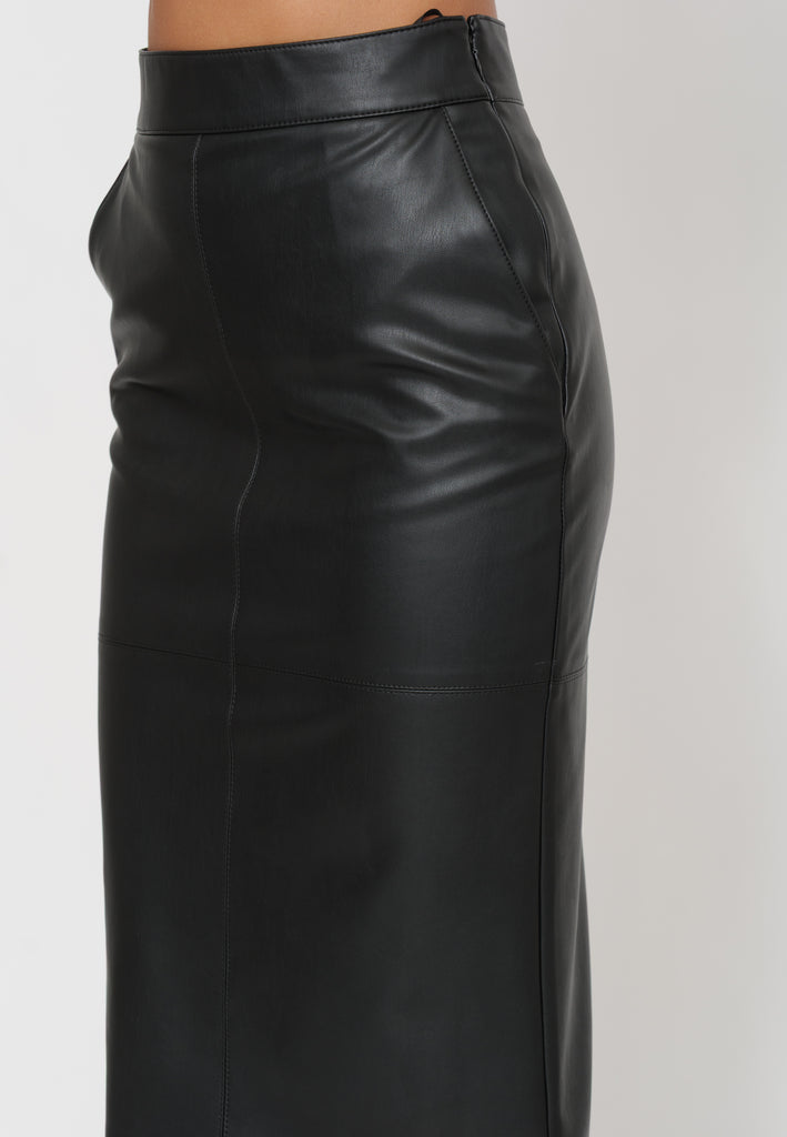 Gonna realizzata in ecopelle di alta qualità, unisce stile e sostenibilità. Il design è completato da eleganti gancetti che aggiungono un tocco di originalità e praticità. Perfetta per un look contemporaneo e sofisticato. Sorprende il retro con ganci gioiello in metallo dorato, a regalare ispirazioni di gusto corsetteria.
