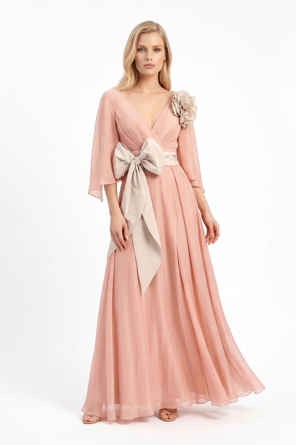 Elegante abito lungo in tessuto fluido con maniche a tre quarti che garantiscono versatilità stilistica. Lo scollo ad incrocio, sapientemente disegnato, crea un effetto avvolgente che valorizza la silhouette con sofisticatezza. Perfetto per occasioni serali, cene importanti o eventi formali, questo capo rappresenta un investimento di stile senza tempo. La lunghezza intera e le proporzioni studiate lo rendono un pezzo versatile che si adatta a molteplici contesti, dal classico al contemporaneo.