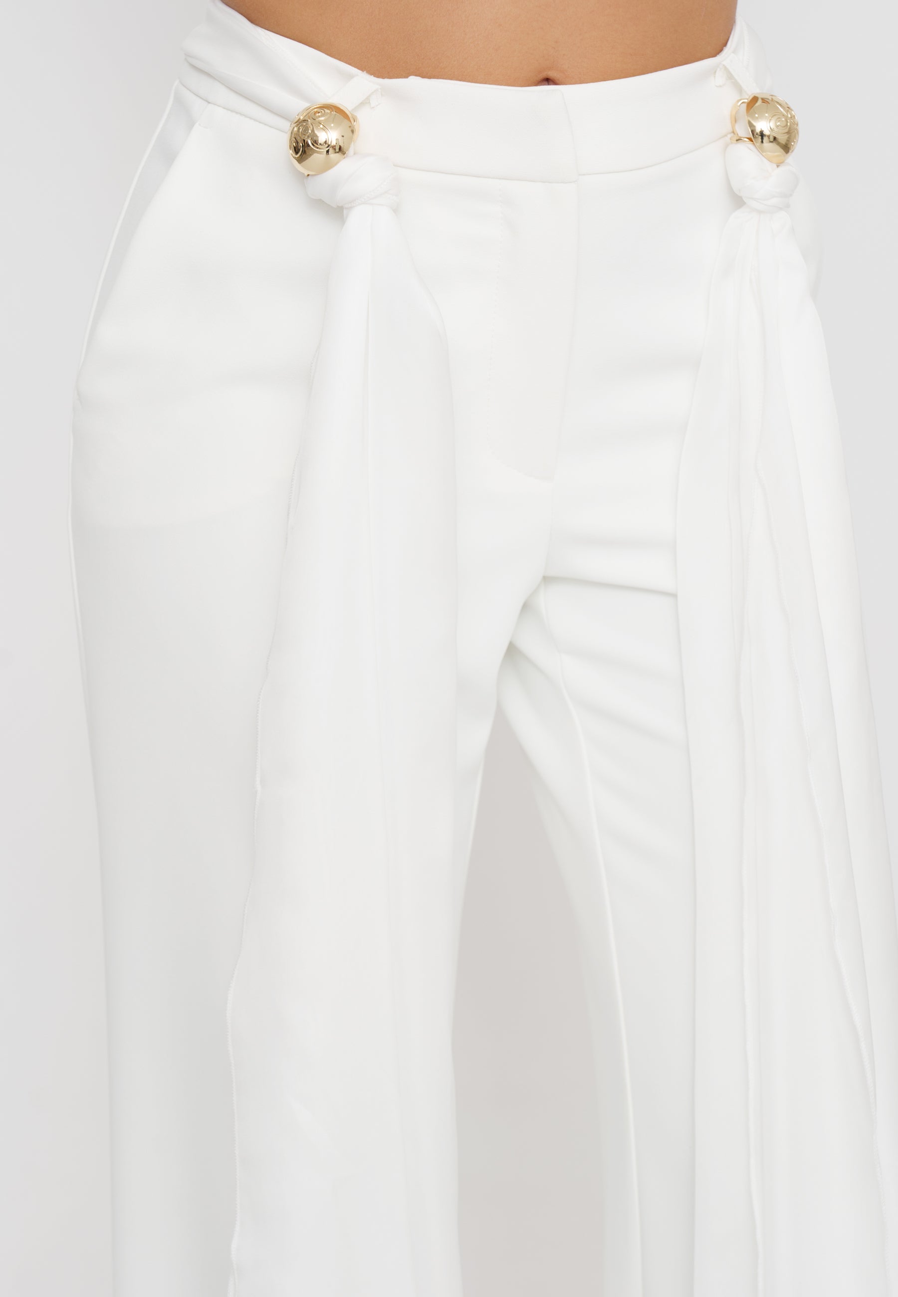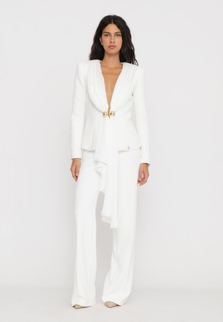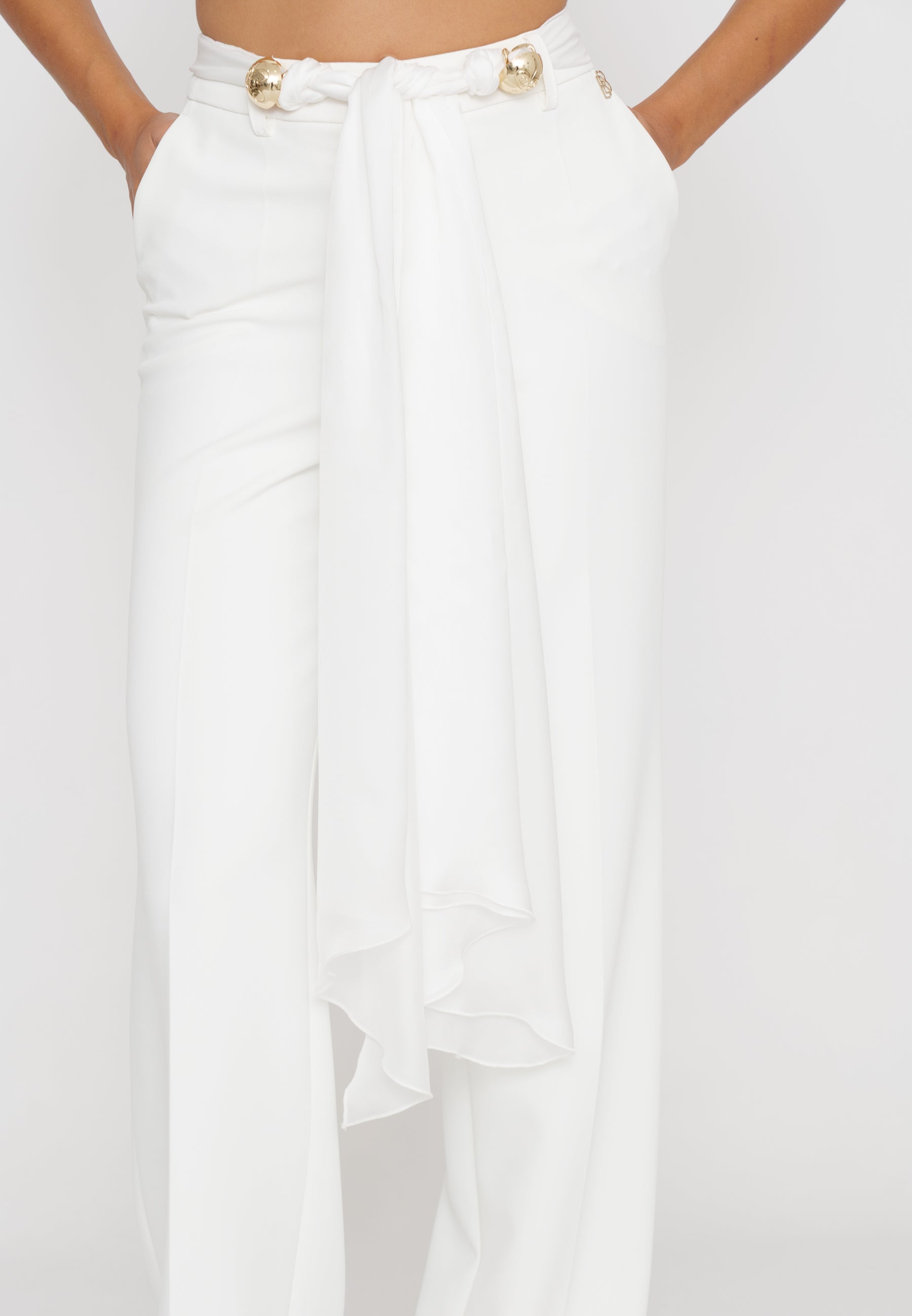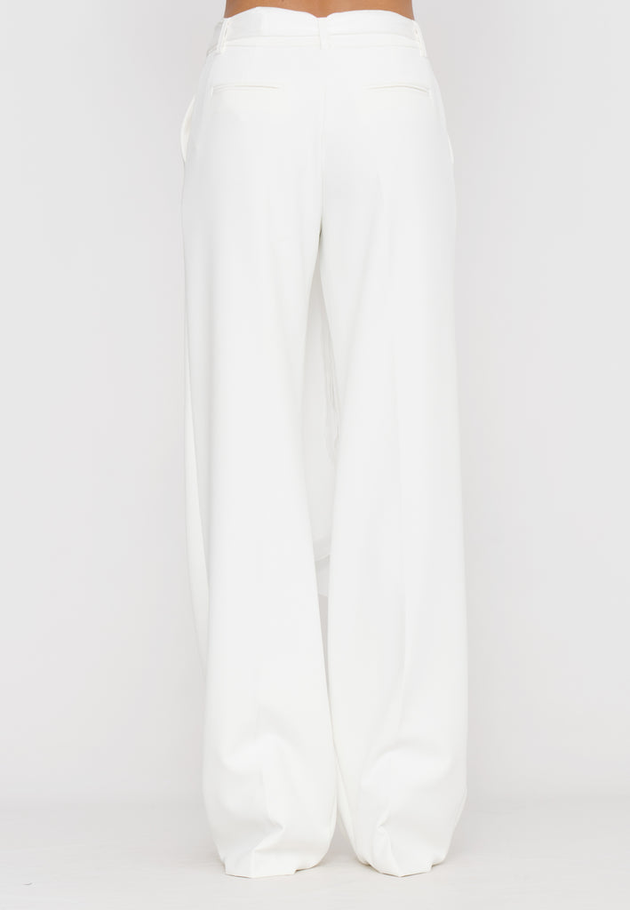 Pantaloni palazzo che offrono un’eleganza senza tempo grazie alla loro linea ampia e fluida. Dotati di una fusciacca removibile in vita, consentono di modulare la silhouette per un look personalizzato e raffinato. Realizzati con materiali di alta qualità, assicurano comfort e vestibilità perfetta, ideali per un outfit sofisticato e versatile.