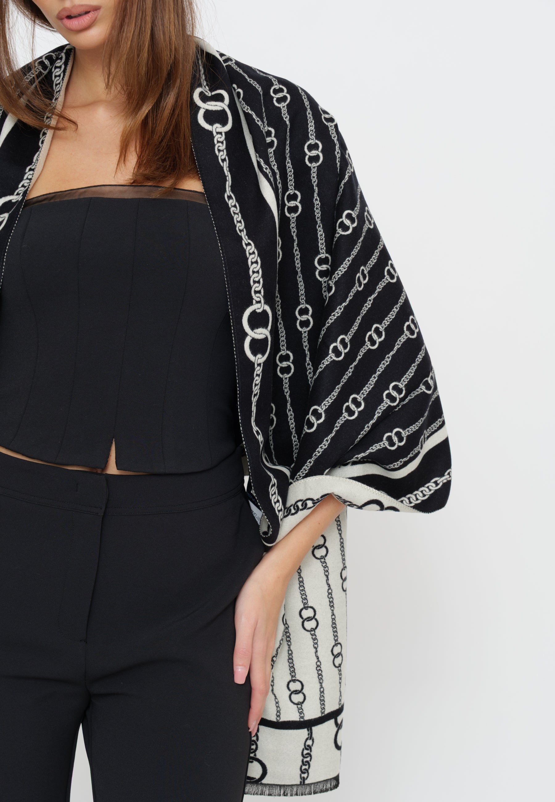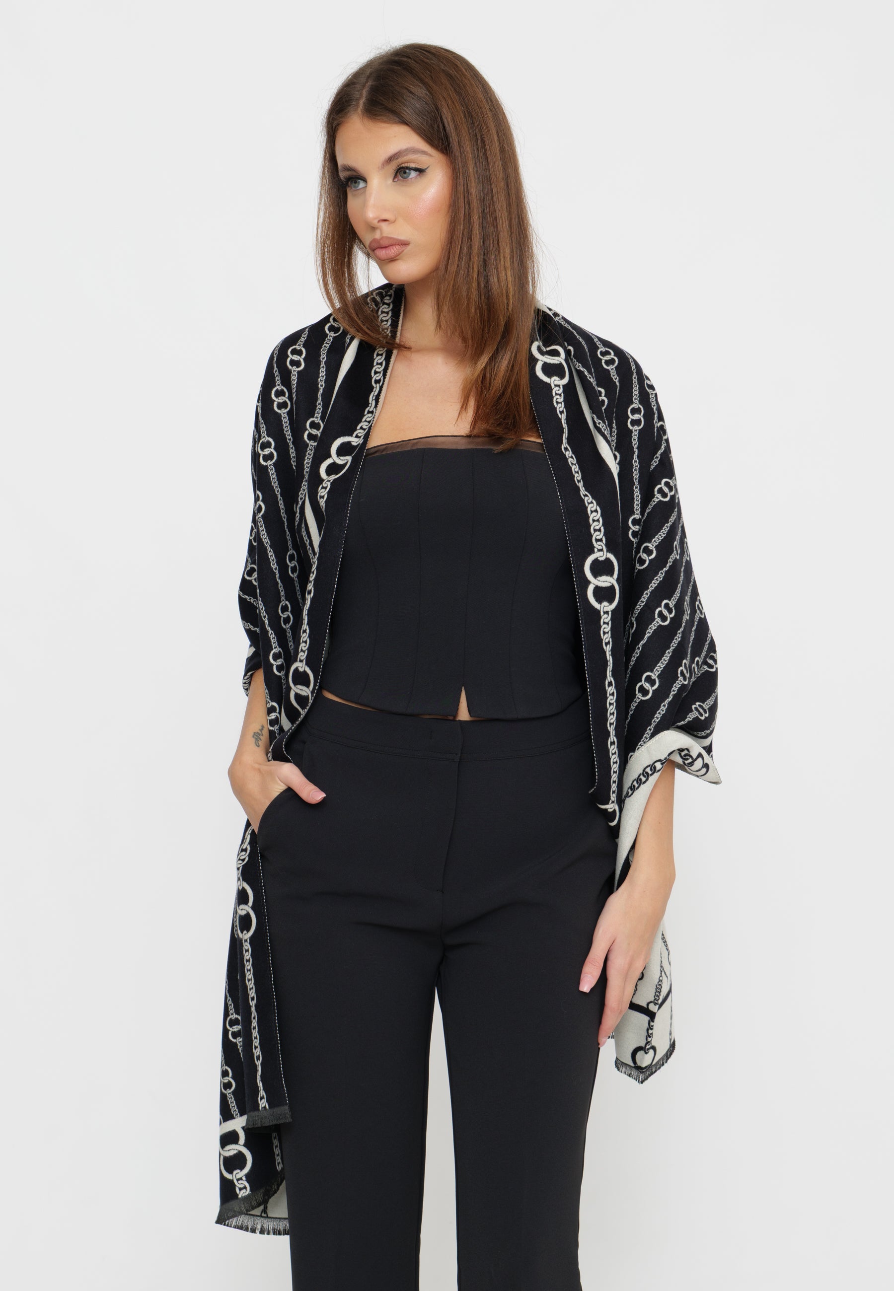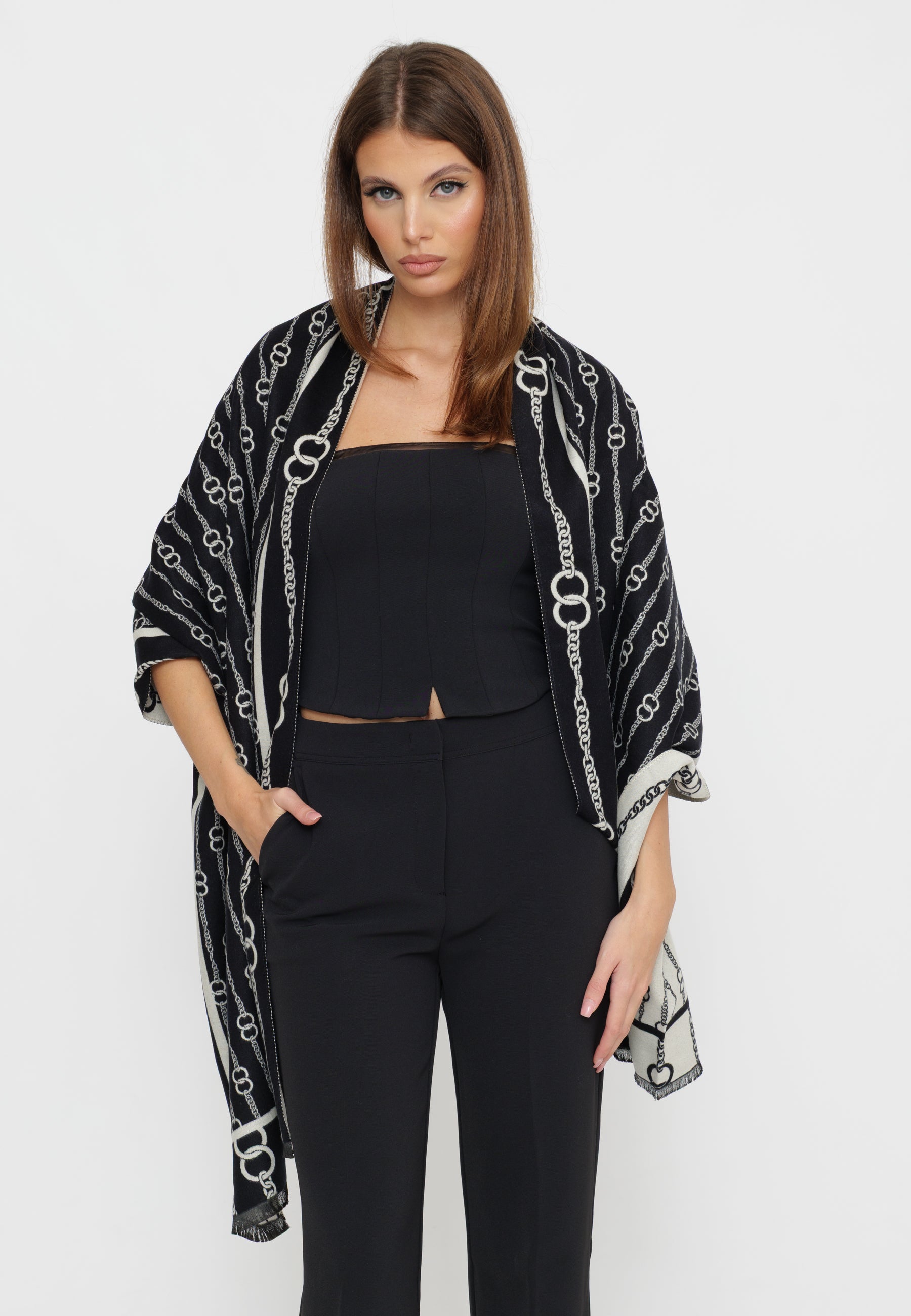 Sciarpa in tessuto pregiato che unisce eleganza senza tempo e versatilità. Realizzata con attenzione ai dettagli, questa sciarpa si distingue per la qualità costruttiva e la capacità di elevare sia look casual che formali. Perfetta per chi ricerca un accessorio che comunichi personalità e gusto raffinato.