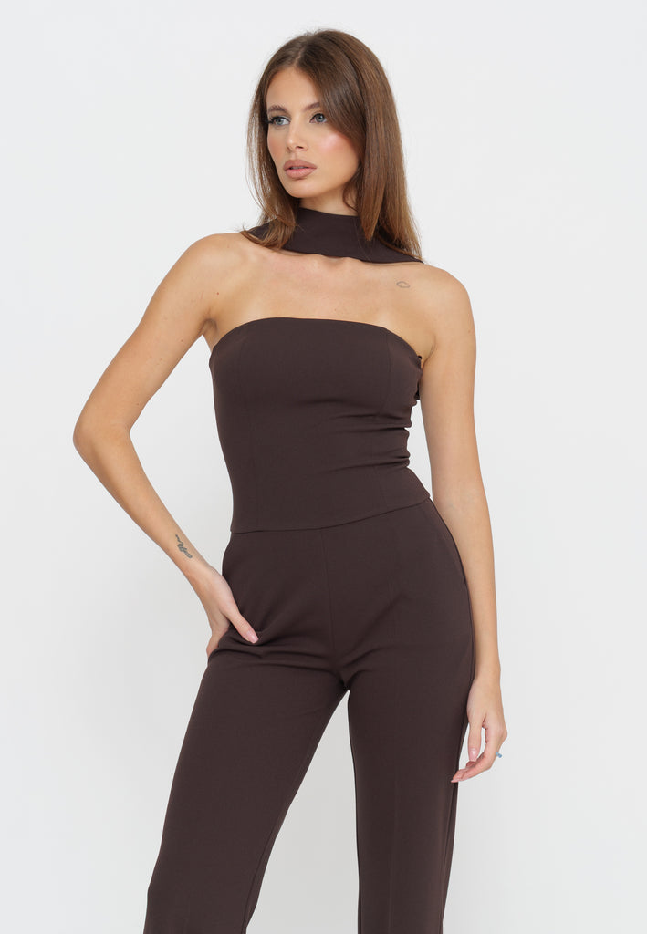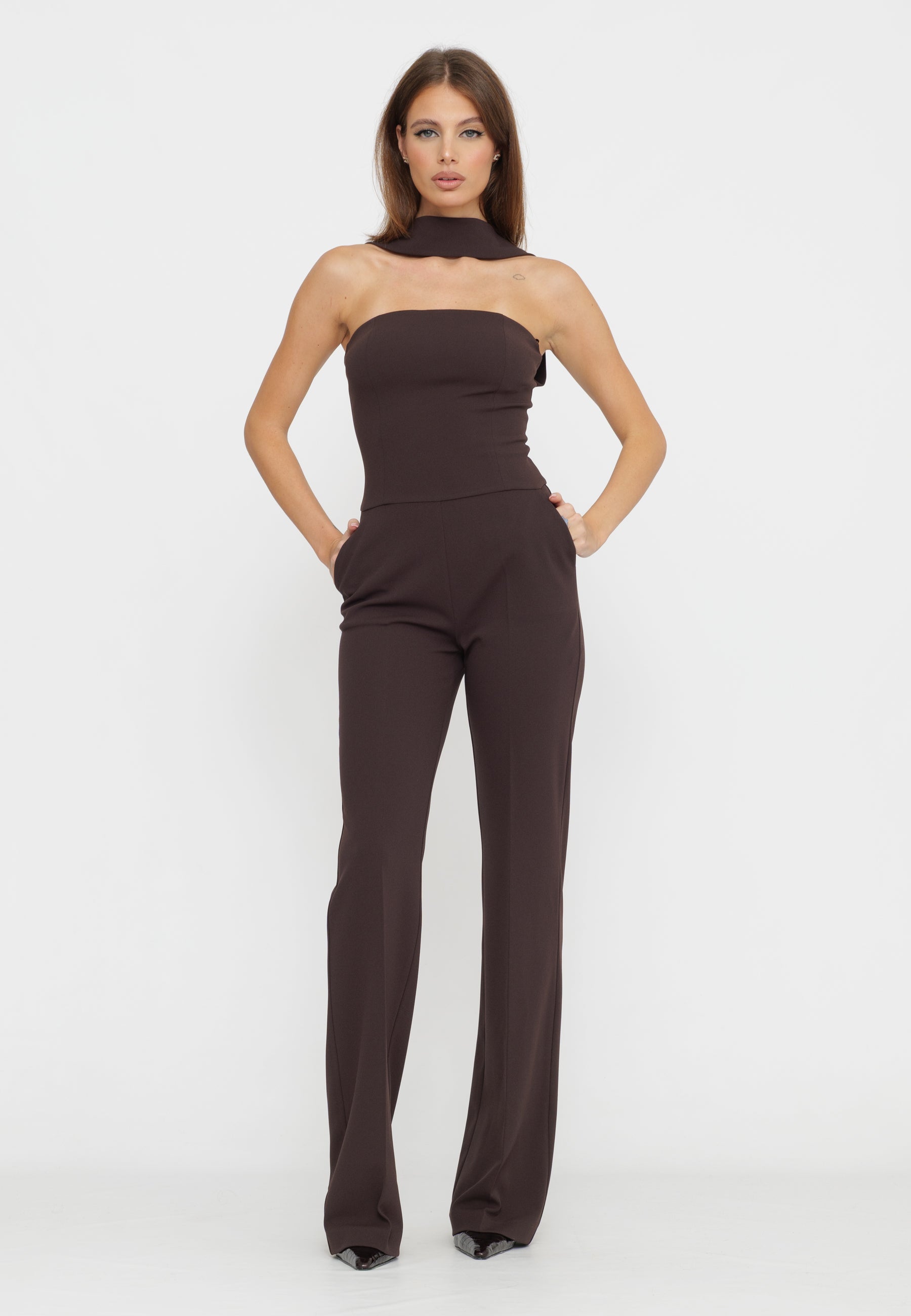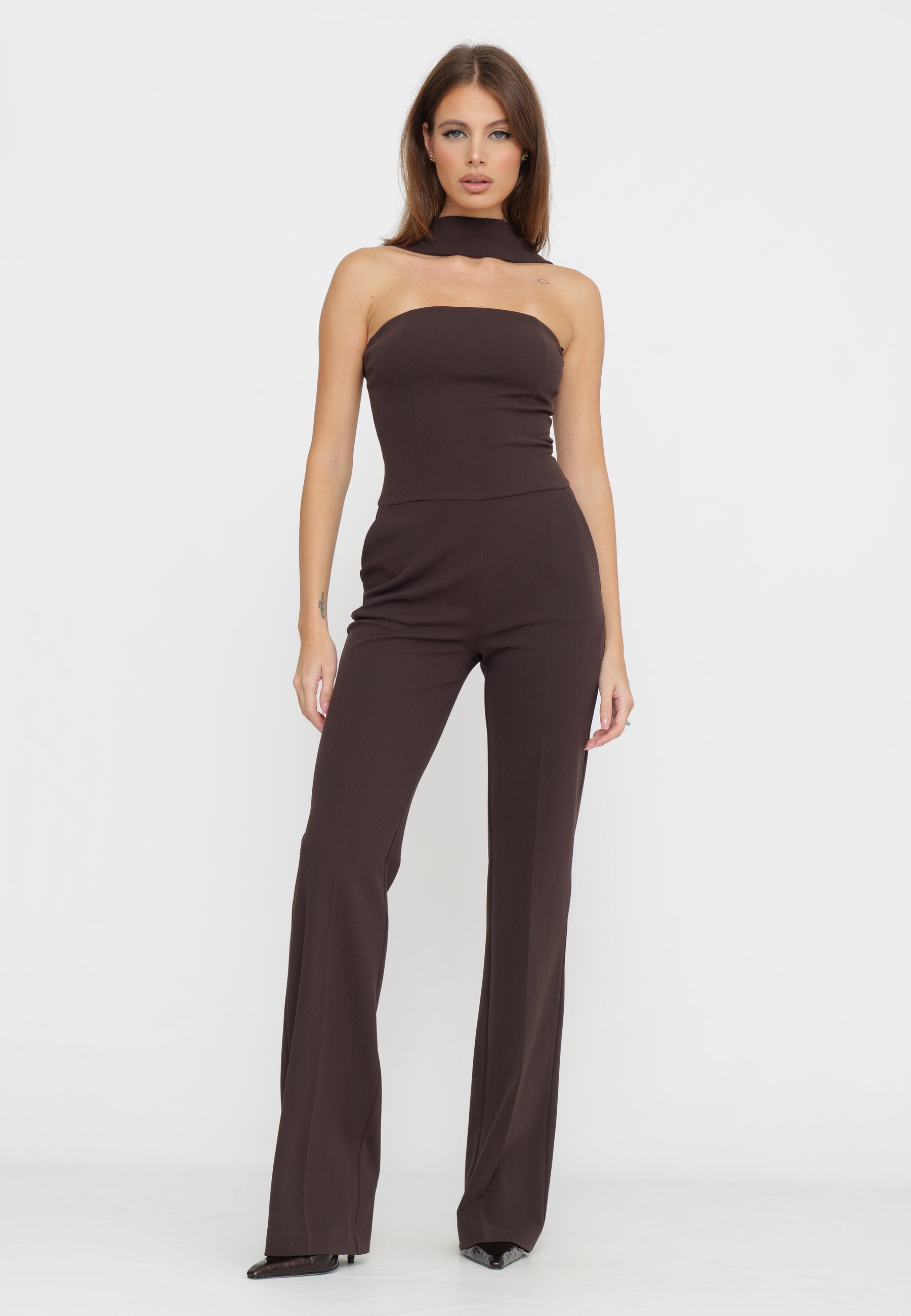 Tuta intera in tessuto pregiato con dettaglio halter al seno, perfetta per chi ricerca eleganza e versatilità. Il design minimalista e sofisticato si adatta a molteplici occasioni, dalla sera casual a eventi più formali. La silhouette aderente valorizza la figura, mentre il collo halter regolabile garantisce comfort e una vestibilità personalizzata. Realizzata con materiali di qualità, questa tuta rappresenta un investimento nel guardaroba essenziale di chi apprezza lo stile contemporaneo e senza compromessi.