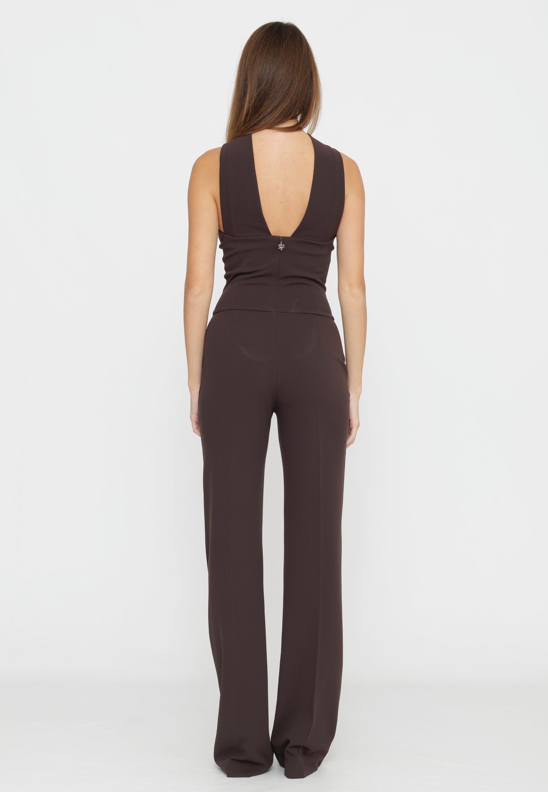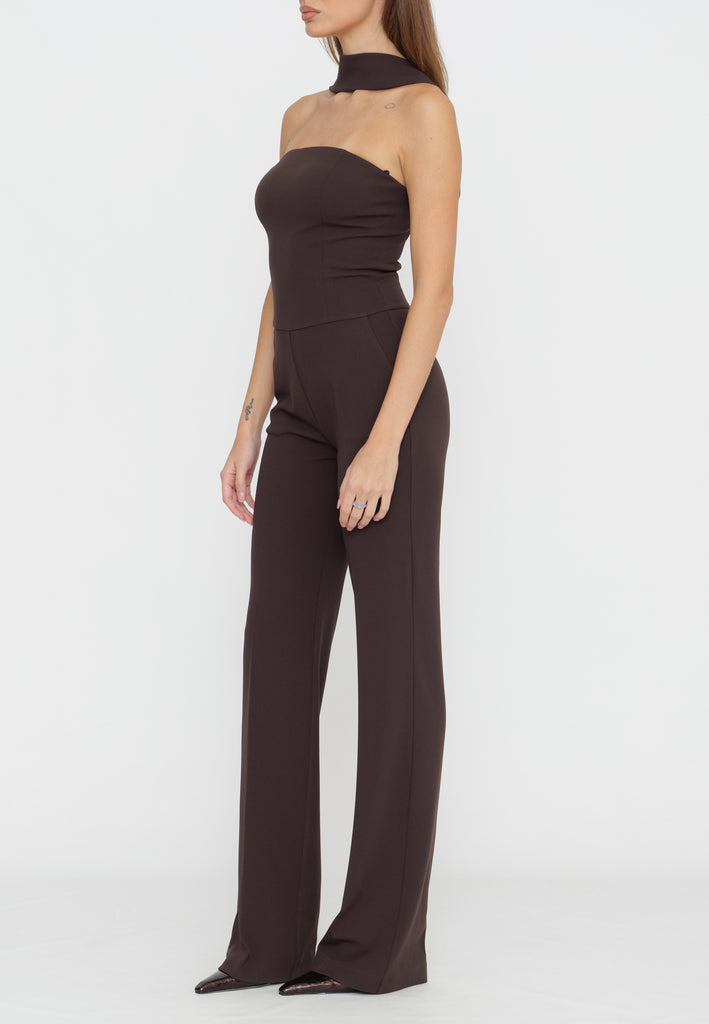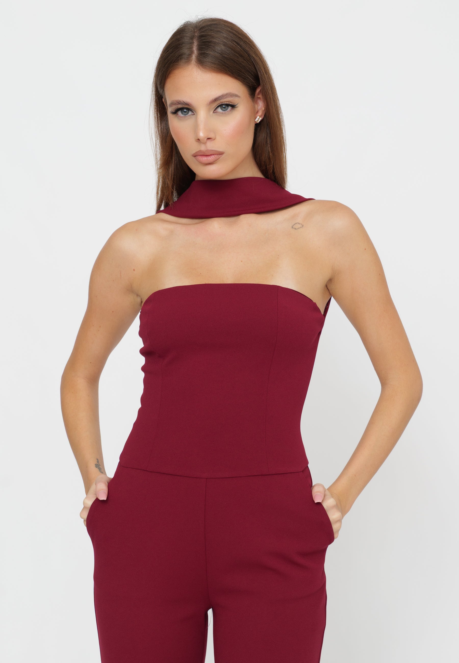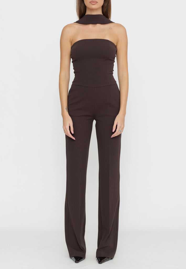 Tuta intera in tessuto pregiato con dettaglio halter al seno, perfetta per chi ricerca eleganza e versatilità. Il design minimalista e sofisticato si adatta a molteplici occasioni, dalla sera casual a eventi più formali. La silhouette aderente valorizza la figura, mentre il collo halter regolabile garantisce comfort e una vestibilità personalizzata. Realizzata con materiali di qualità, questa tuta rappresenta un investimento nel guardaroba essenziale di chi apprezza lo stile contemporaneo e senza compromessi.