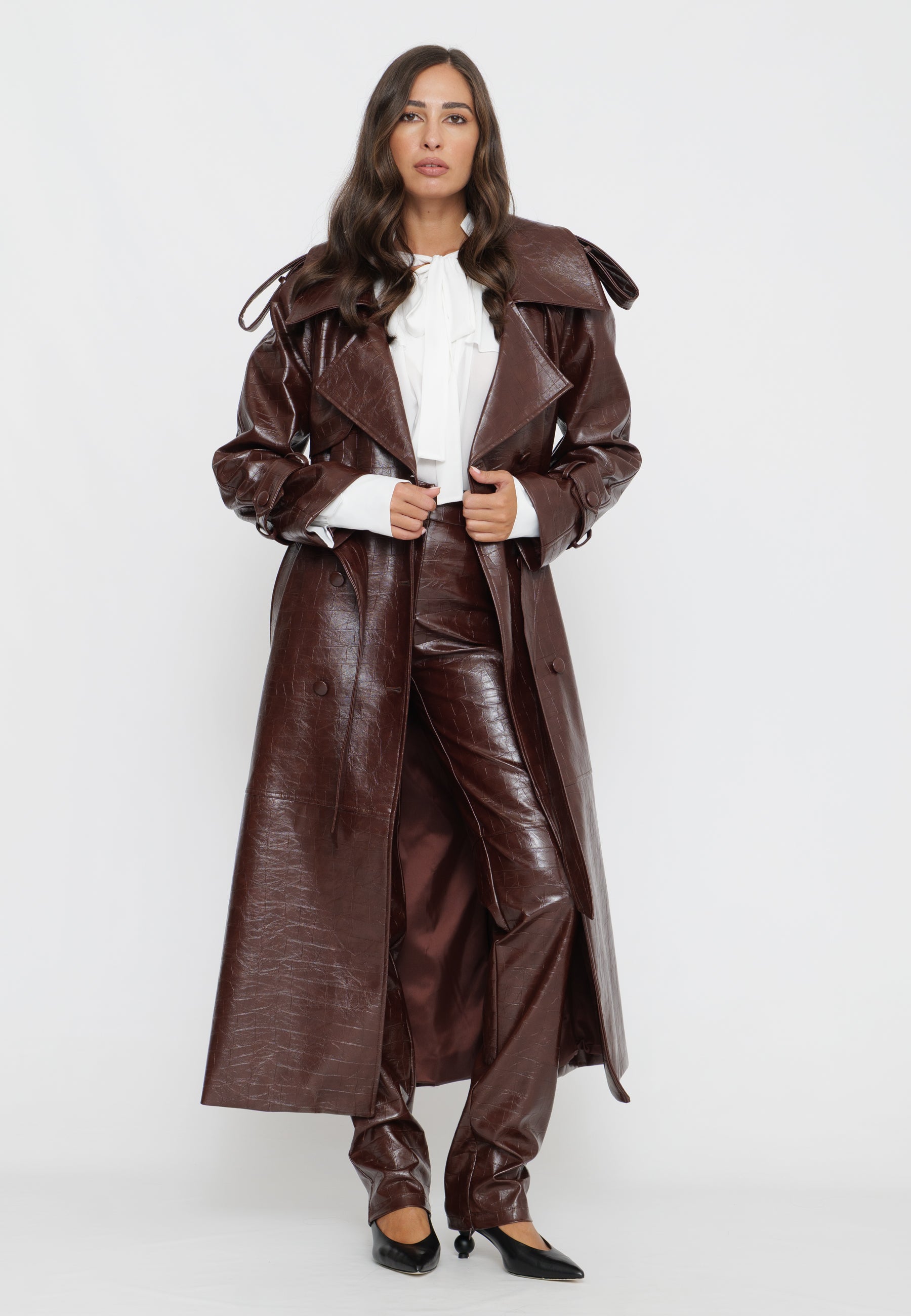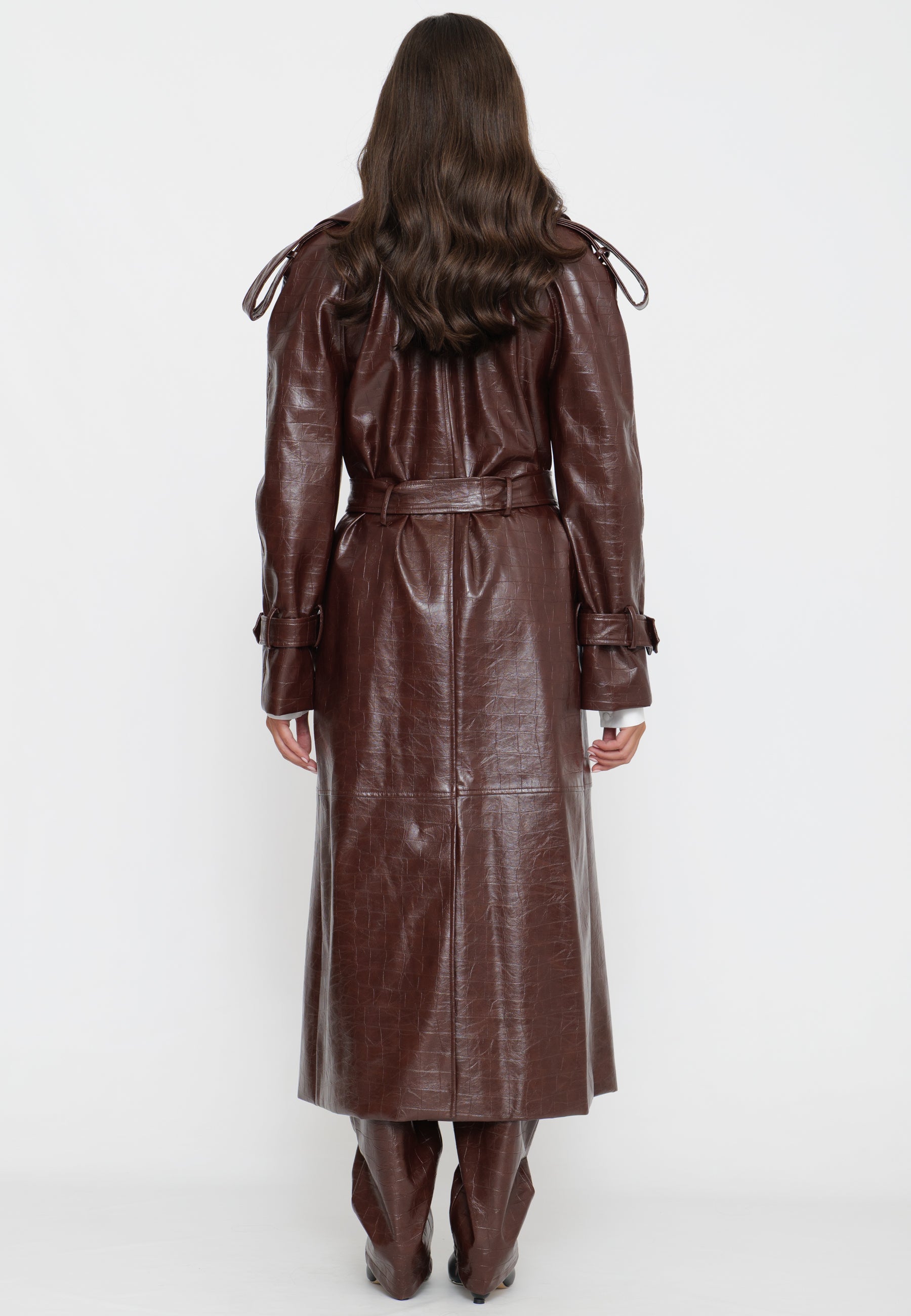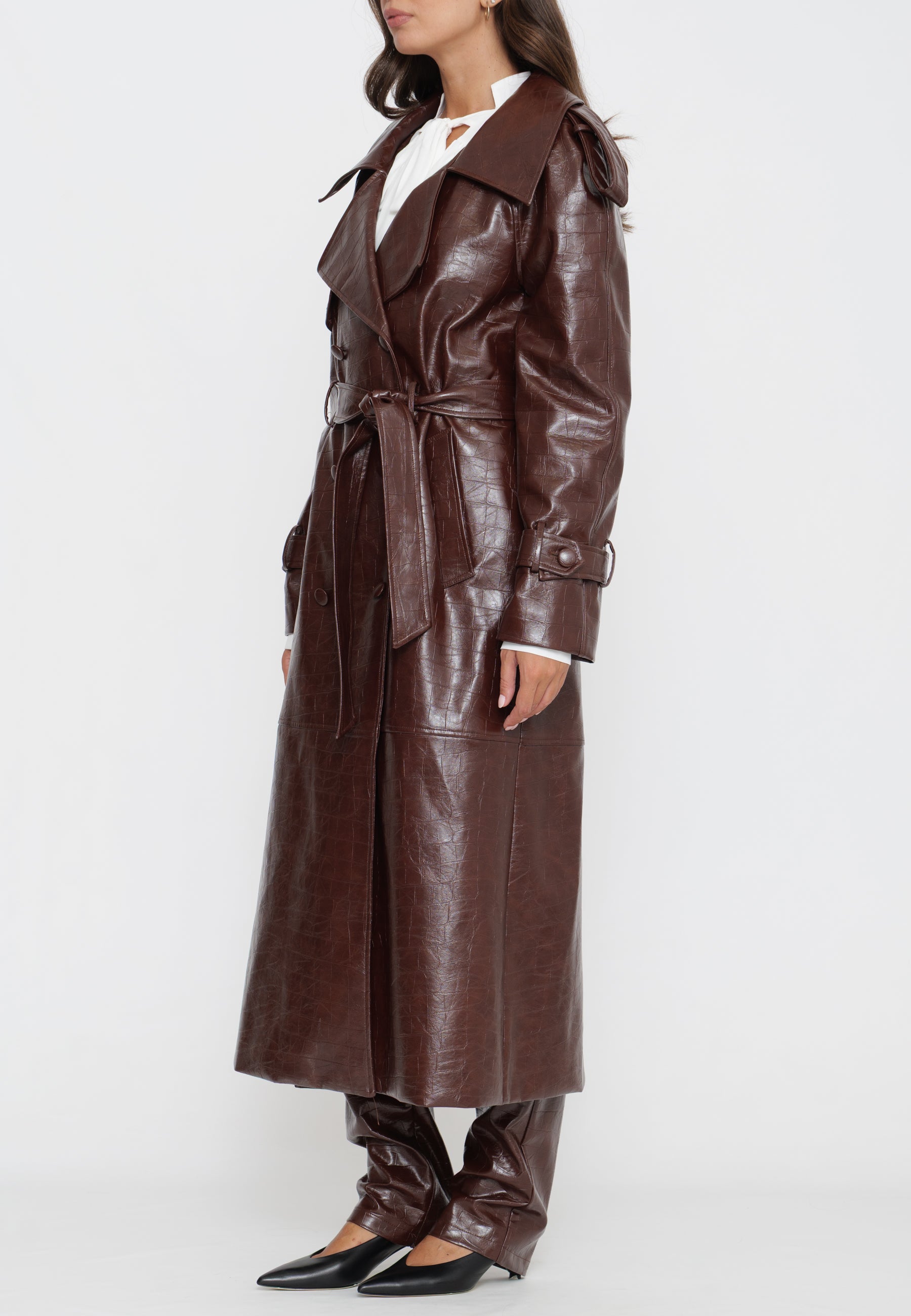TRENCH LUNGO IN ECOPELLE EFFETTO CROCO