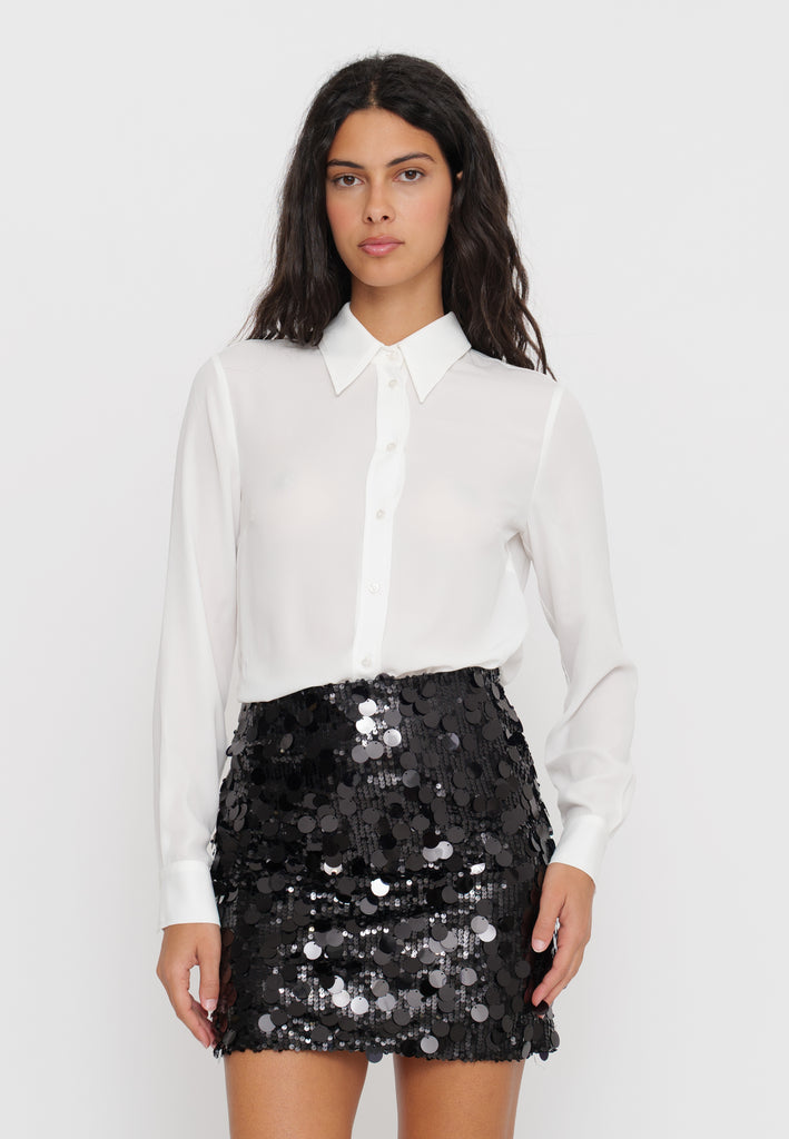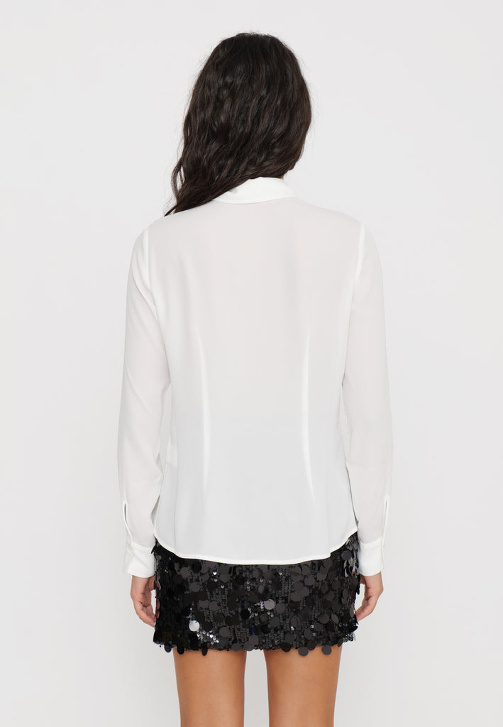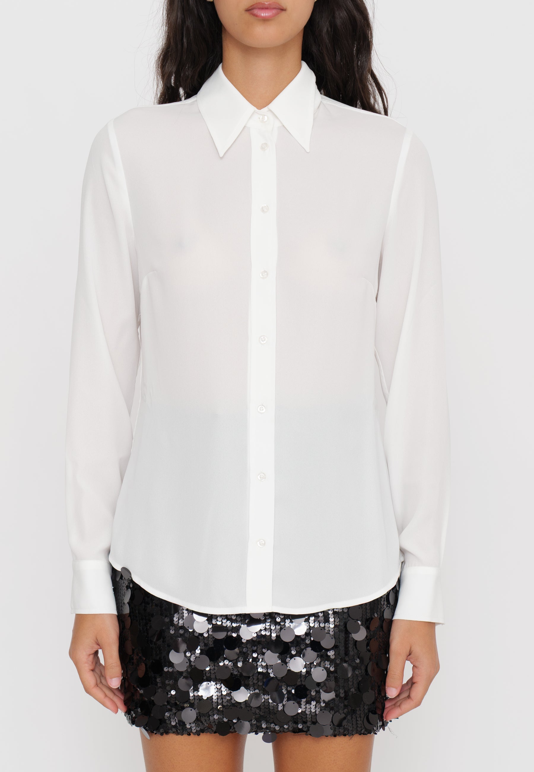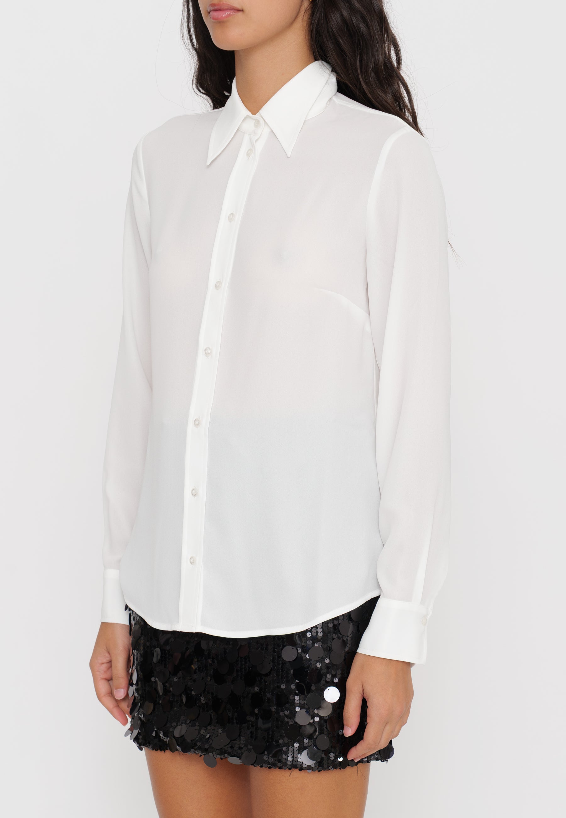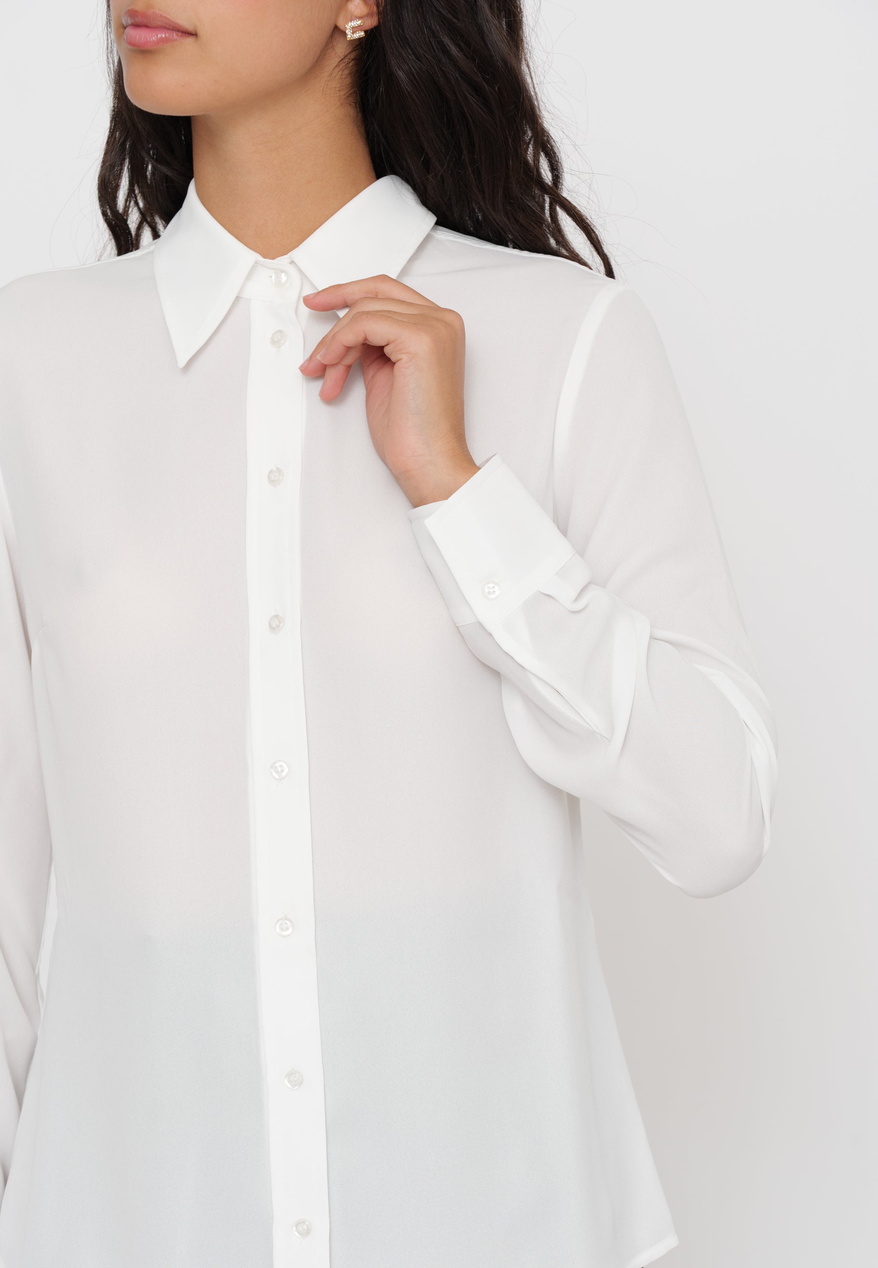 Camicia in georgette che offre una leggerezza impareggiabile grazie al tessuto fluido e leggermente trasparente, ideale per un look sofisticato e confortevole. Perfetta per chi cerca un capo versatile da indossare sia in occasioni formali che casual, questa camicia combina eleganza e praticità con una texture delicata che valorizza ogni silhouette.