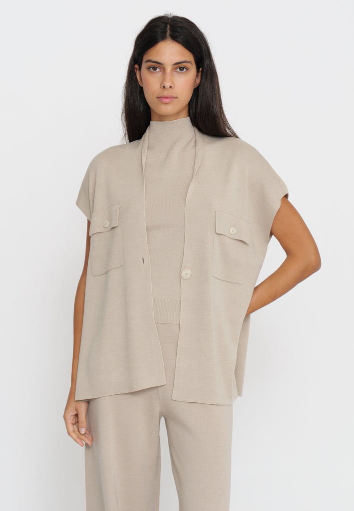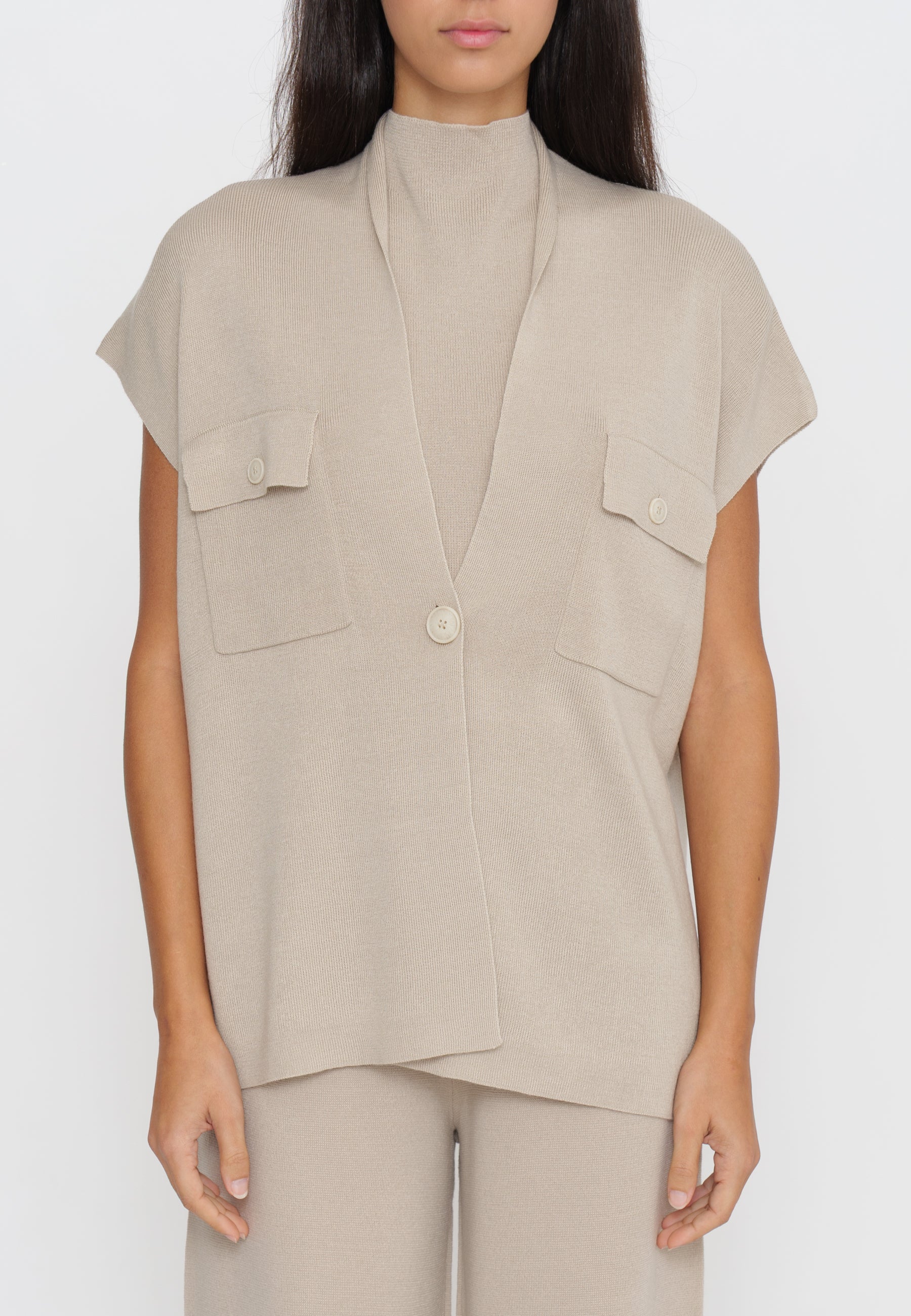 Questo gilet in maglia della collezione NENETTE unisce design raffinato e comfort elevato. Realizzato con materiali di alta qualità, garantisce una vestibilità ergonomica e una sensazione piacevole sulla pelle. Perfetto da abbinare a look formali o casual, è un capo versatile che aggiunge stile e calore a ogni outfit, ideale per chi cerca un tocco di eleganza senza rinunciare alla praticità.