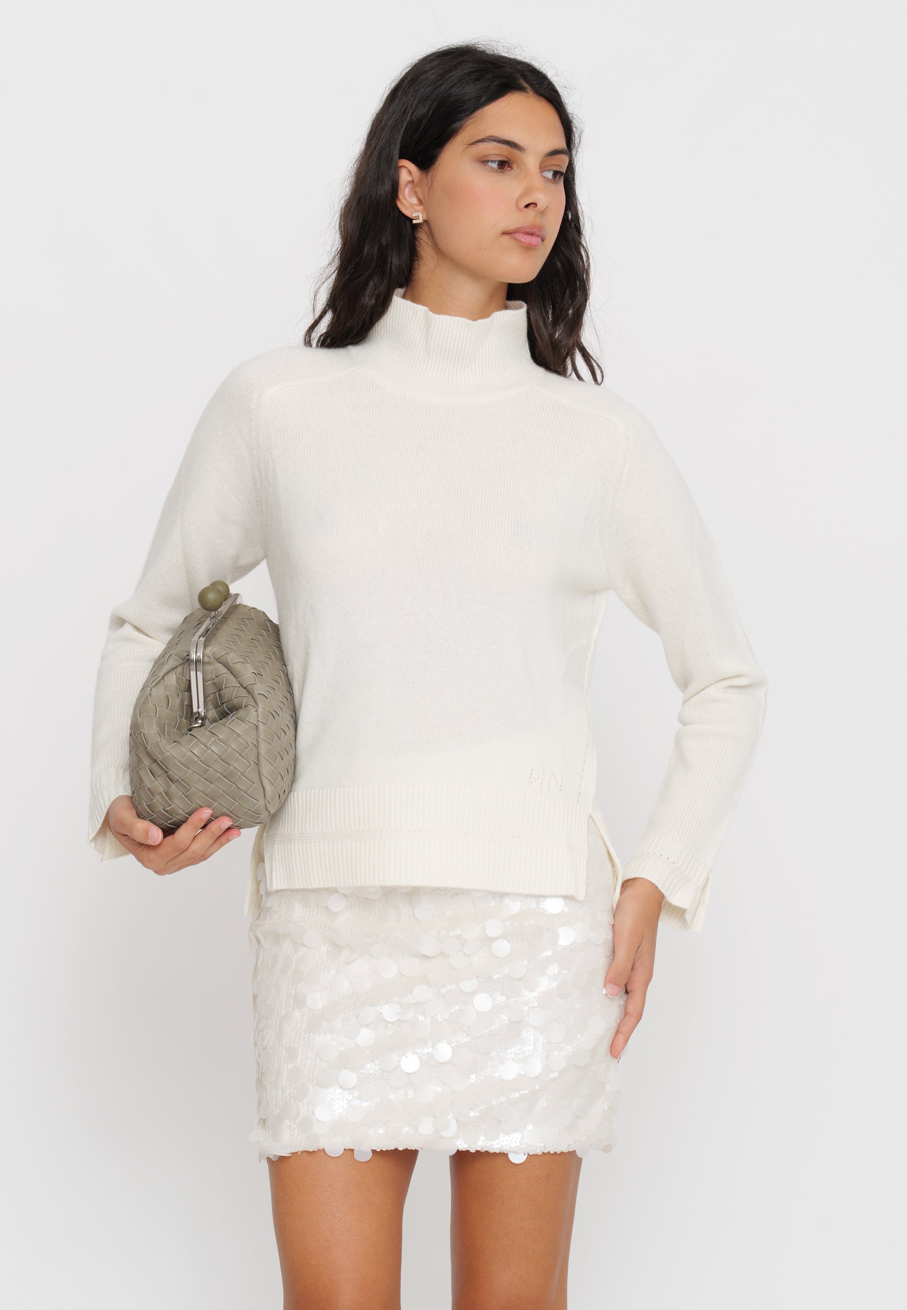 Maglione collo alto in cashmere che offre un equilibrio perfetto tra eleganza e comfort. Realizzato con filati pregiati, garantisce morbidezza e calore senza rinunciare alla leggerezza. Il design a collo alto assicura protezione dal freddo, rendendolo ideale per le stagioni più rigide. Un capo versatile, adatto a look sia casual che raffinati, che valorizza ogni silhouette con stile sobrio e sofisticato.