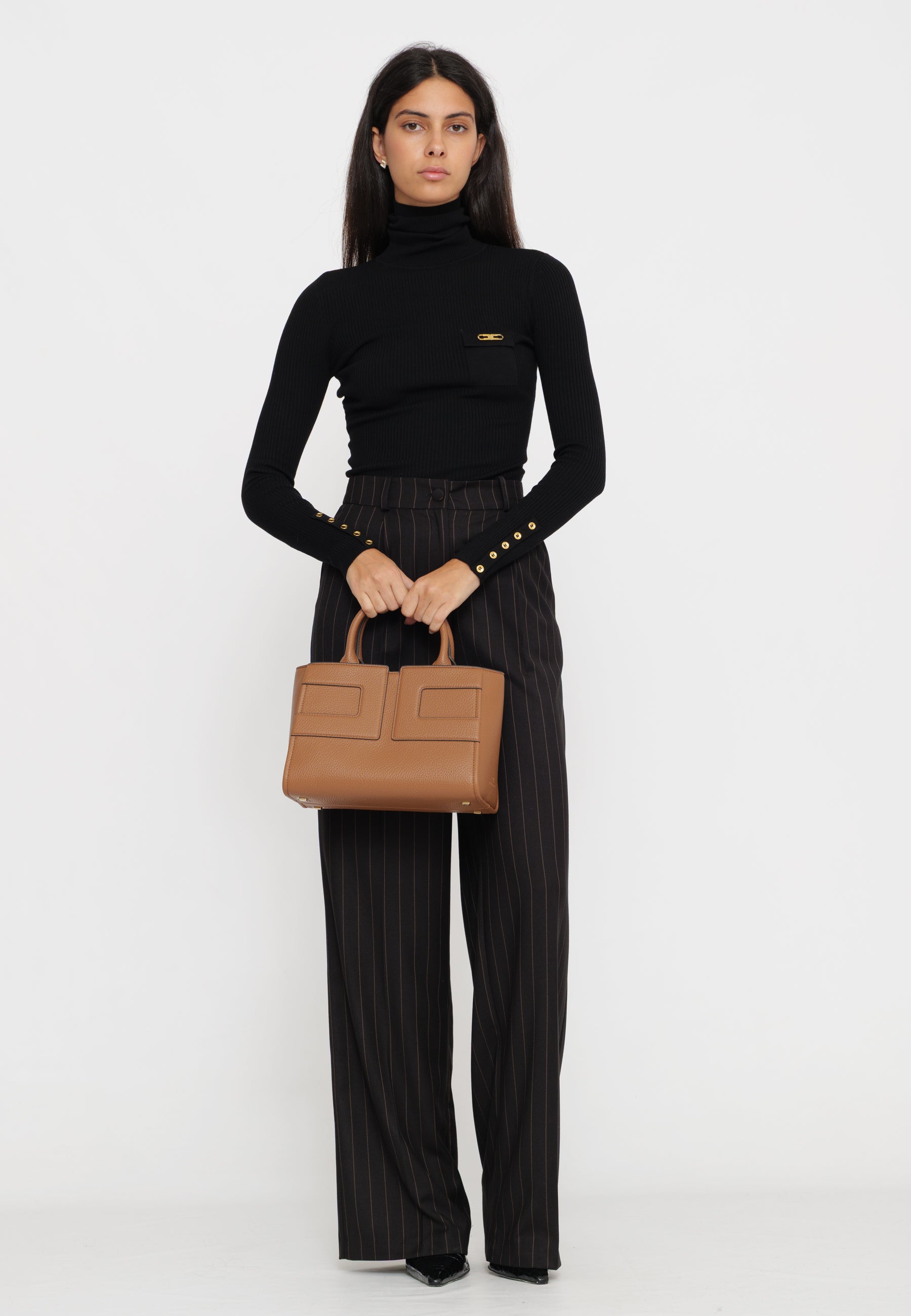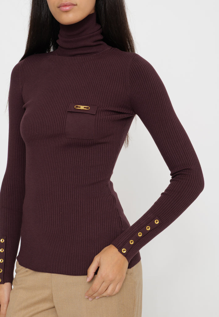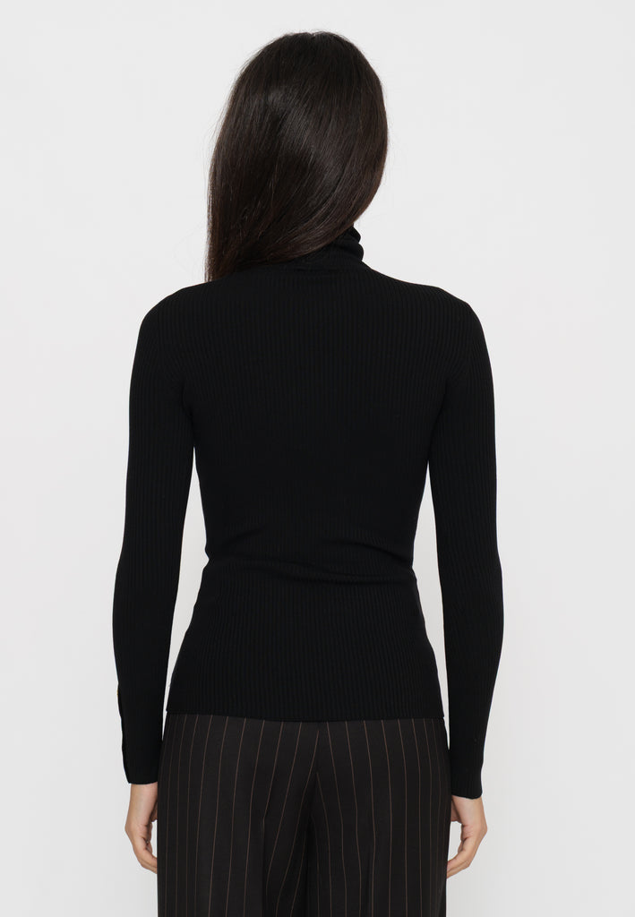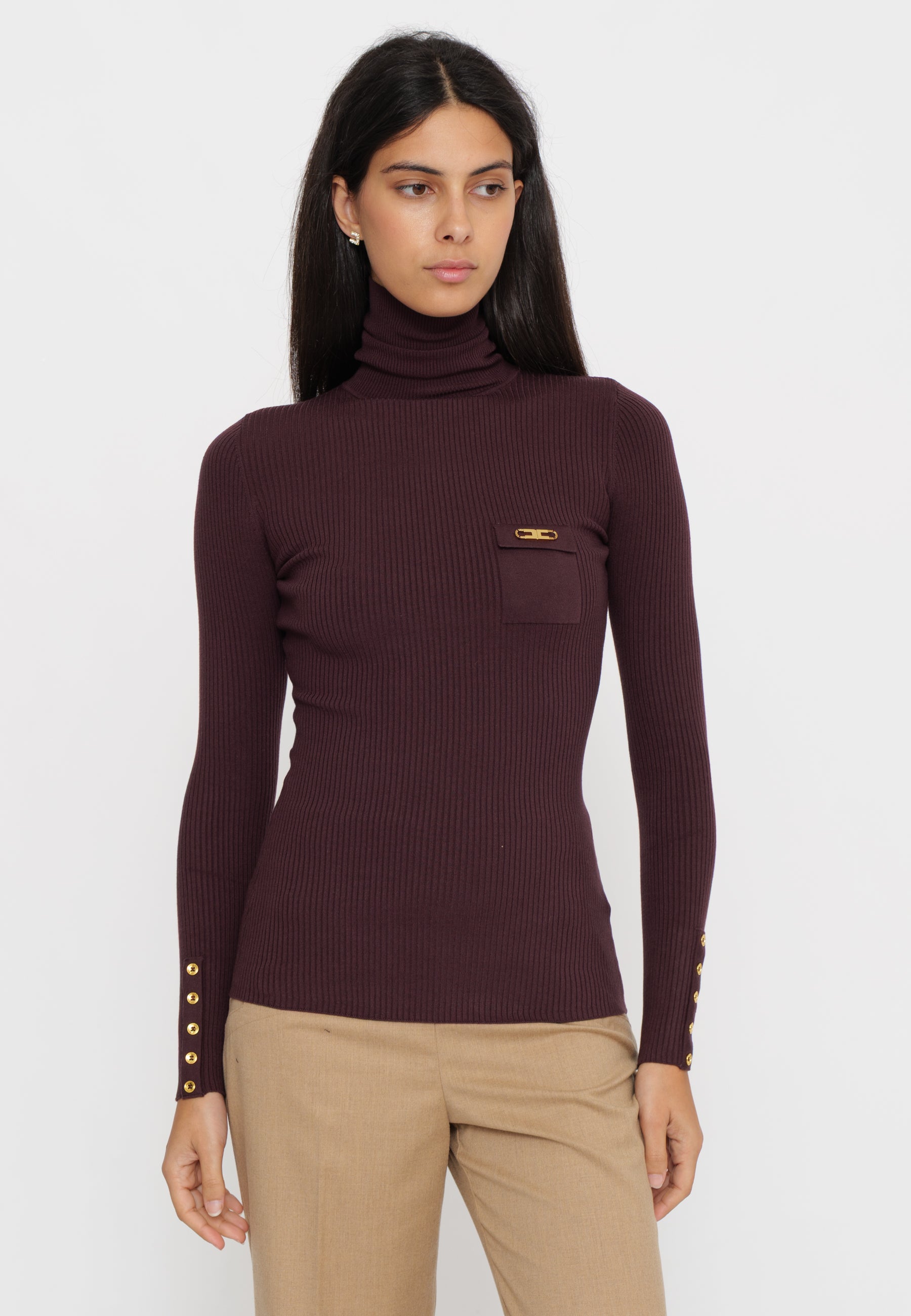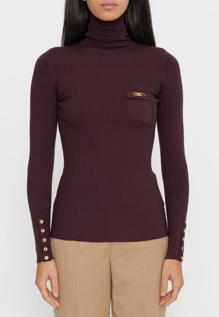 Questa maglia a costine dalla vestibilità aderente unisce eleganza e comfort. Il collo dolcevita valorizza la silhouette con un tocco raffinato, mentre le maniche presentano bottoni al fondo per un dettaglio distintivo. Il taschino in raso impreziosito dal logo aggiunge una nota luminosa e sofisticata, rendendo il capo ideale per chi cerca uno stile ricercato senza rinunciare alla praticità. Perfetta per completare look sia formali che casual con classe.
