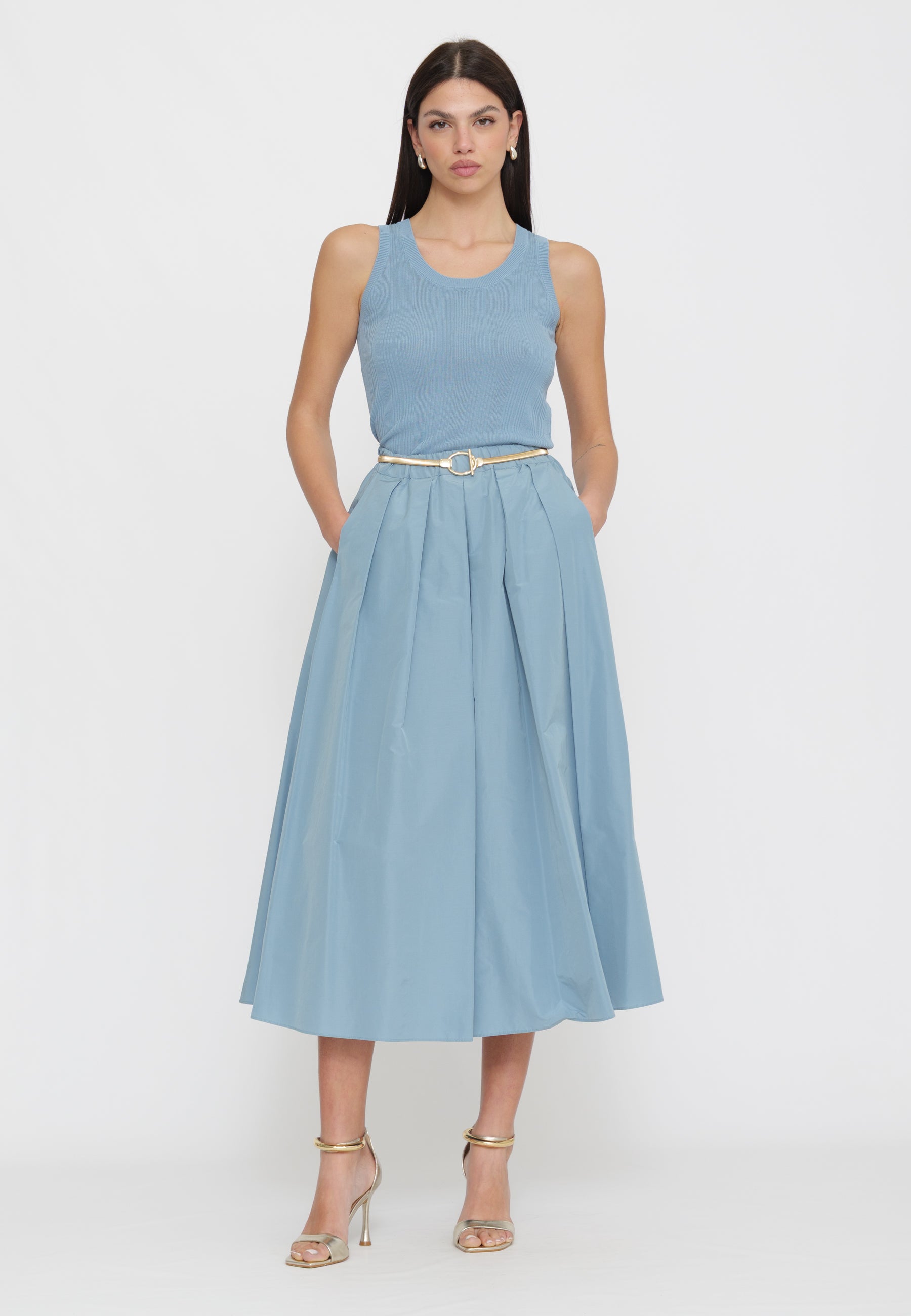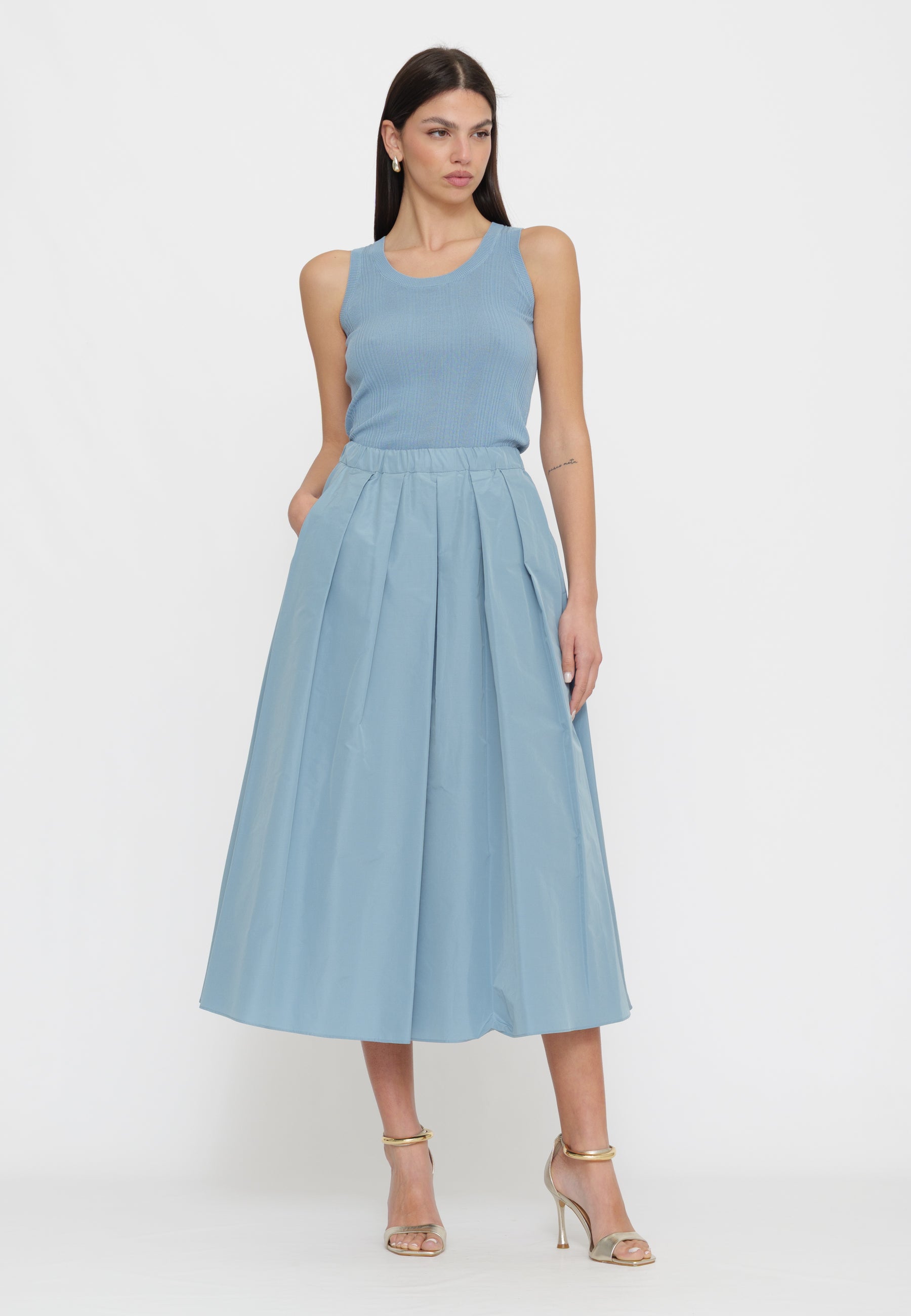 Gonna in taffetà dalla collezione Max Mara Weekend. Questa gonna offre un'eleganza senza tempo con una silhouette raffinata. Perfetta per occasioni speciali o per un look sofisticato nel quotidiano, il taffetà garantisce movimento e drappeggio impeccabile. Un capo versatile che si abbina facilmente con top e bluse per creare outfit di carattere.
