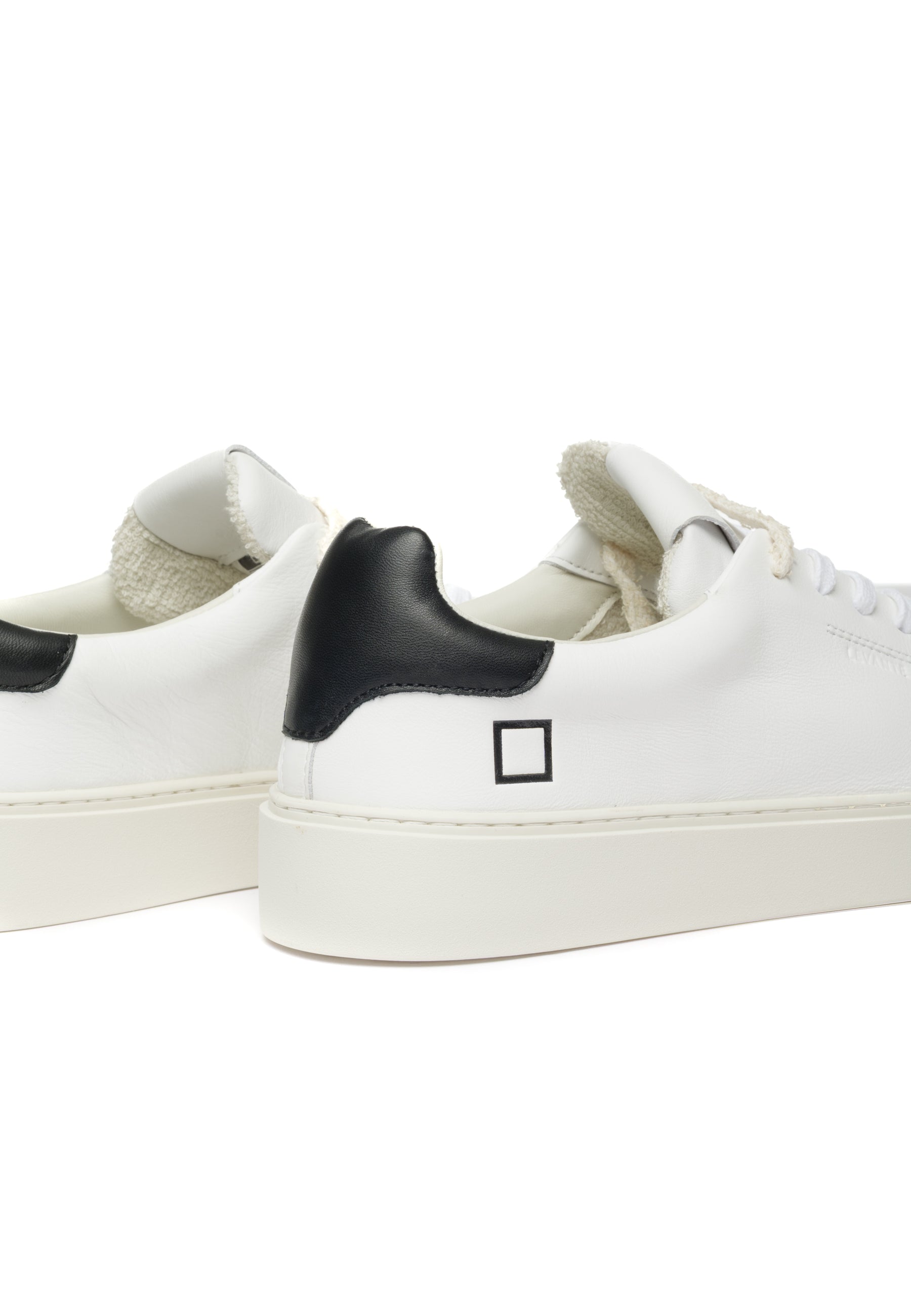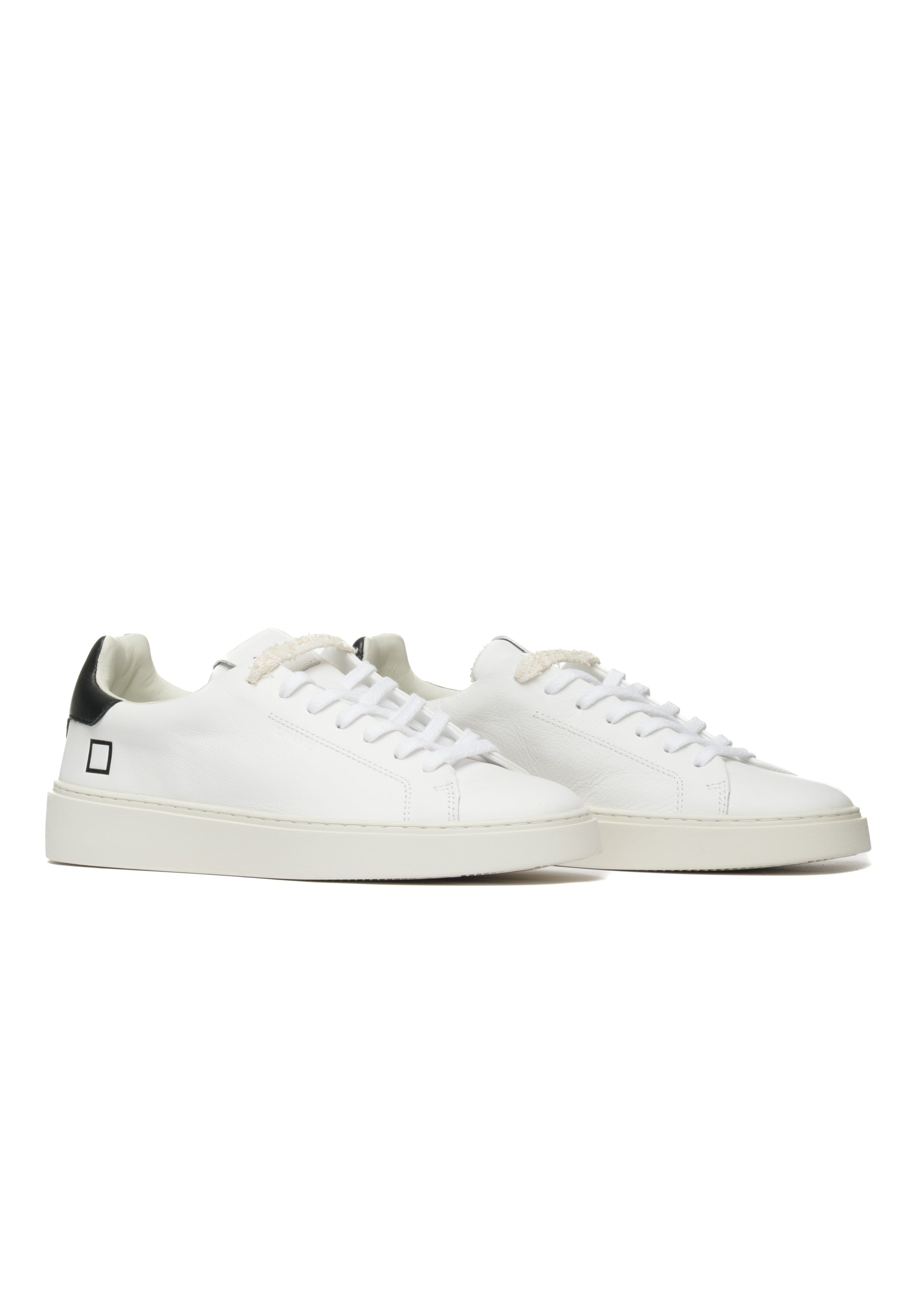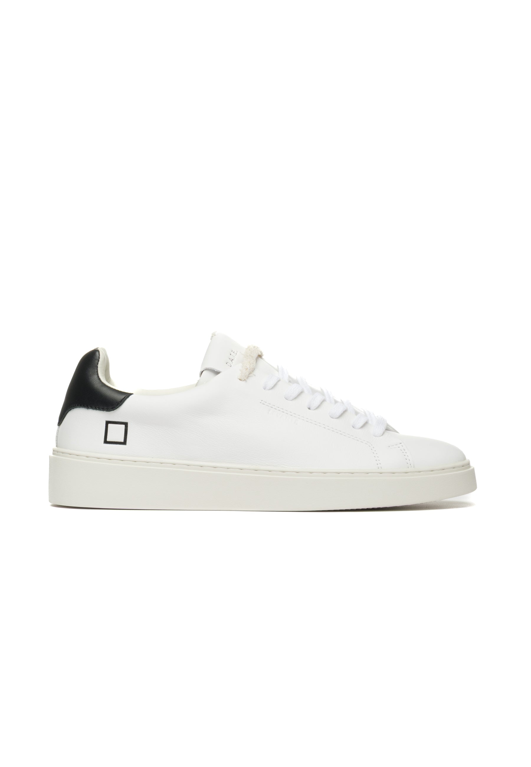 Sneakers bassa in pelle bianca con dettagli ricercati e comfort superiore. Caratterizzata dalla label D.A.T.E. cucita sulla linguetta, lacci in cotone con effetto used in due tonalità e logo laterale impresso. Il talloncino posteriore in pelle nera contrasta elegantemente con l'upper bianco. Fodera in pelle e spugna di cotone garantisce morbidezza, mentre il soletto interno rialzato di 2.5 cm offre supporto ottimale. La suola in gomma cucita (2.5-3.5 cm) assicura stabilità e durabilità. Vestibilità regular. Realizzata interamente con materiali Made in Italy selezionati con cura.