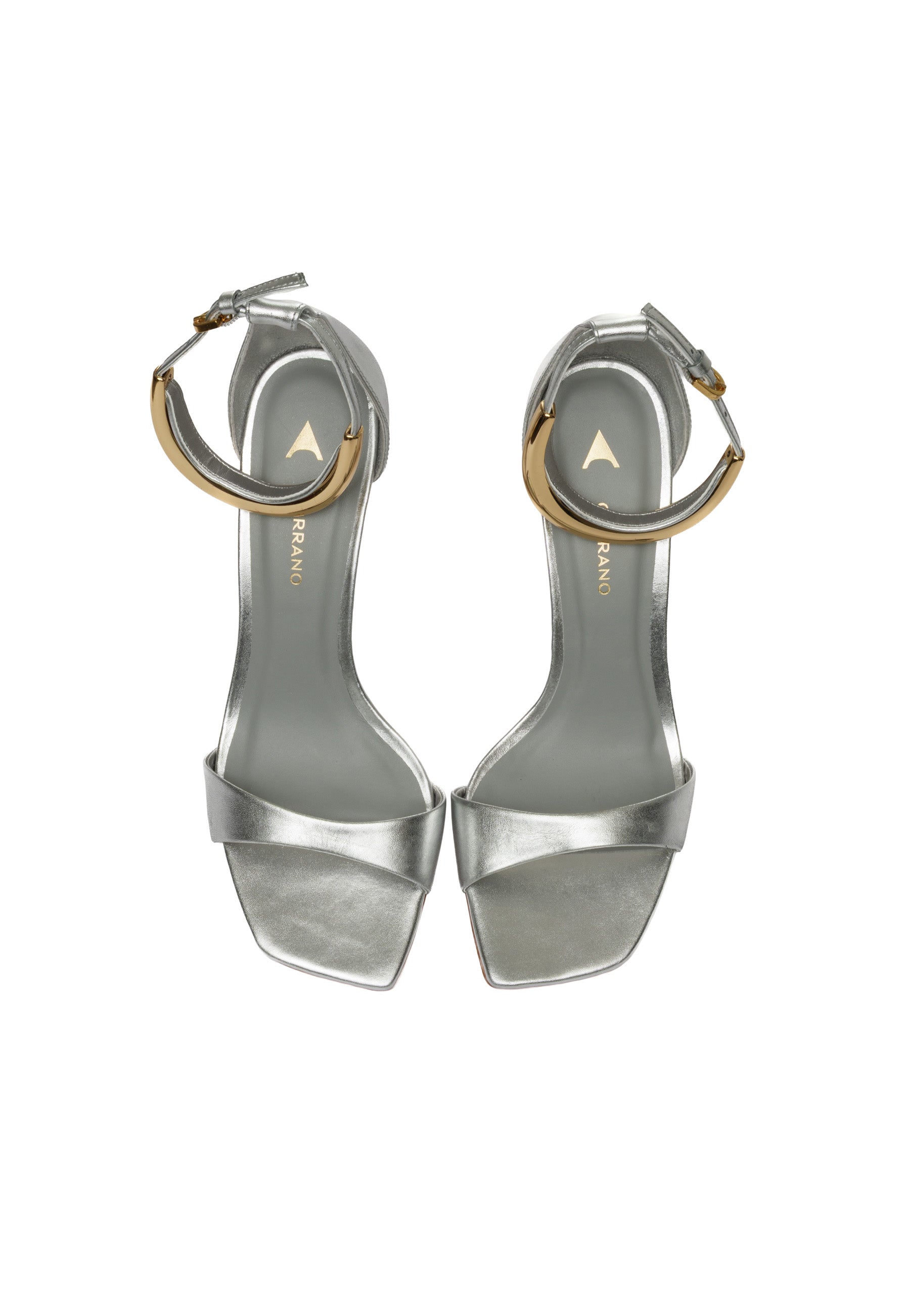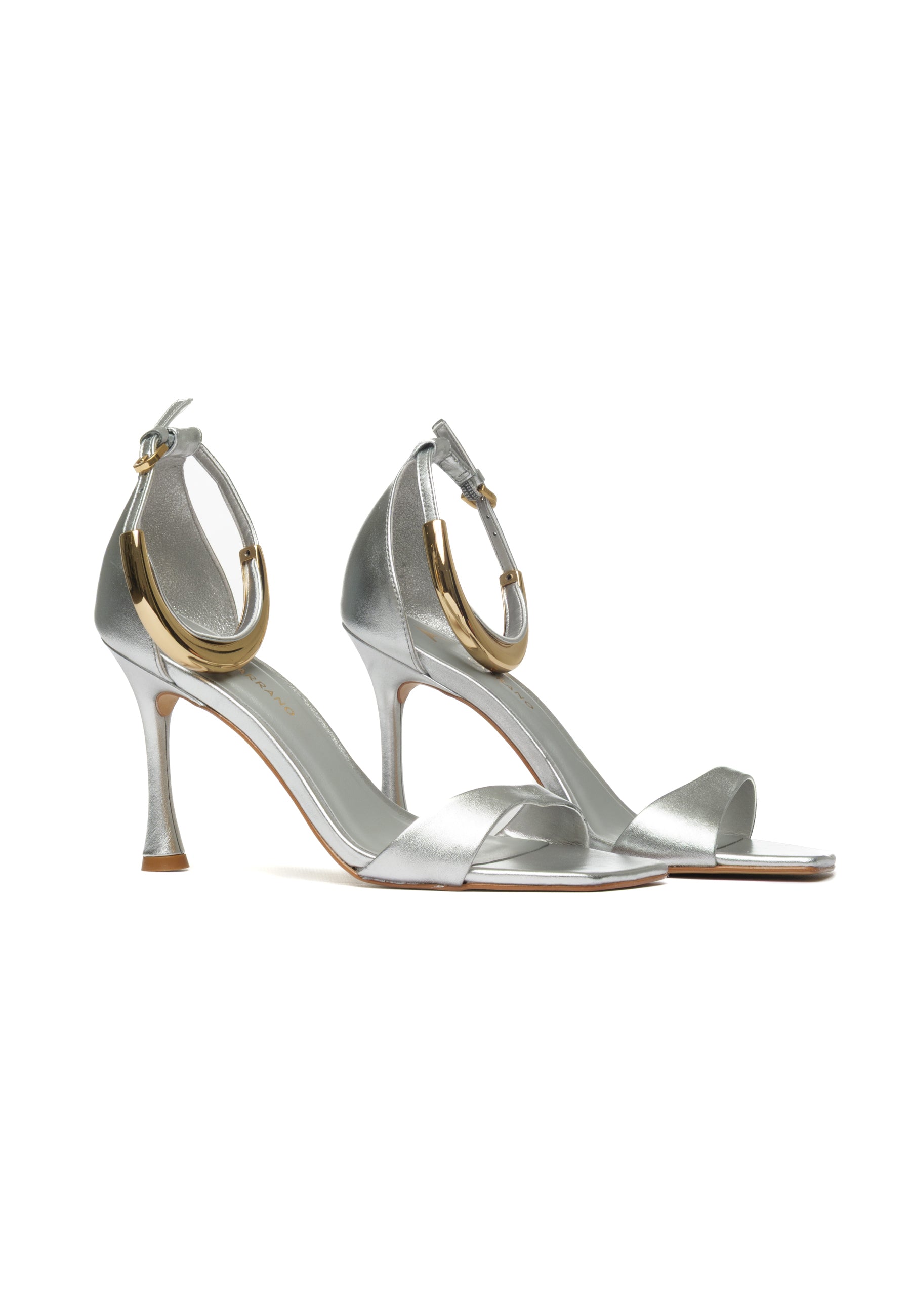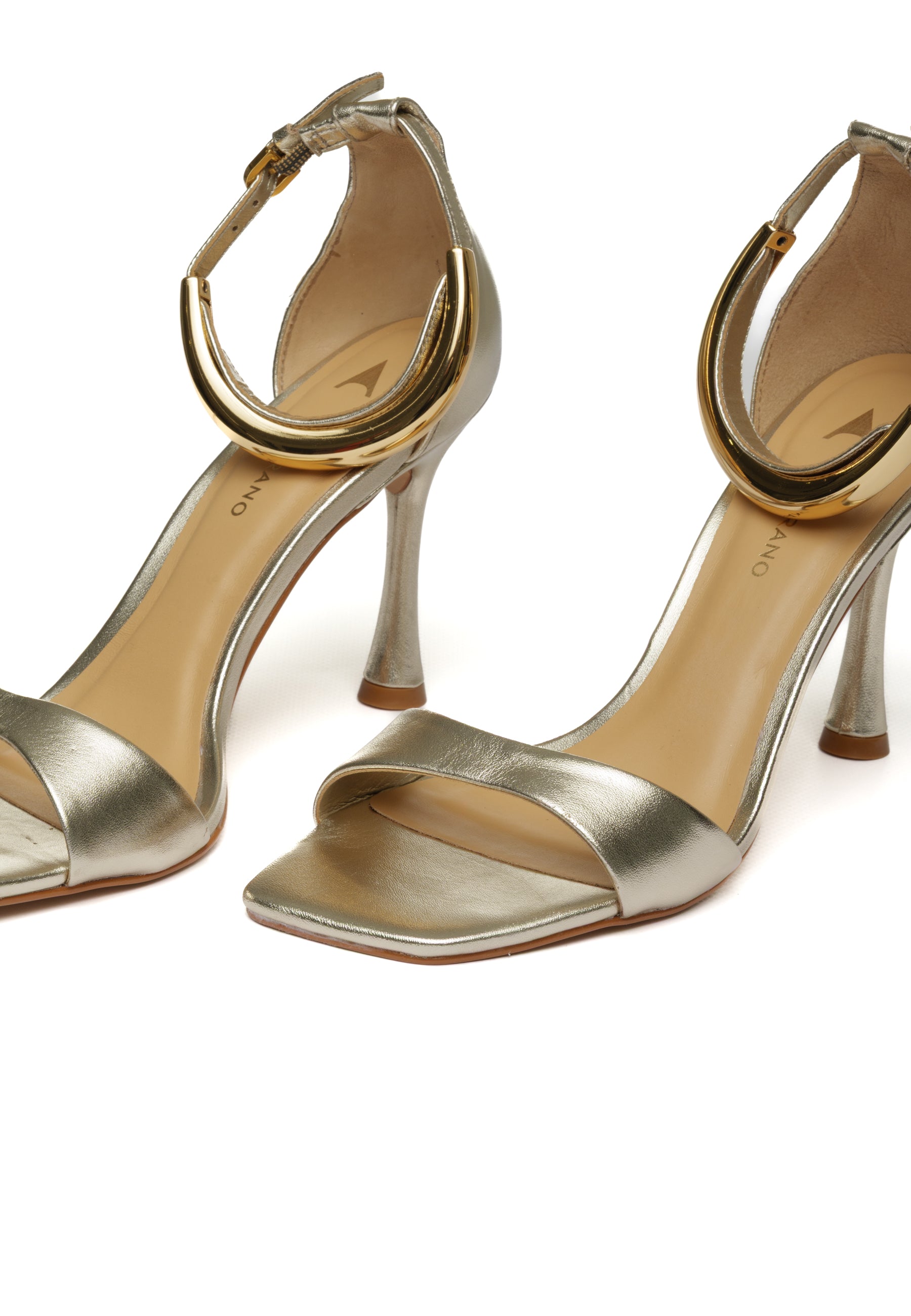 Elegante sandalo arricchito da un sofisticato accessorio in metallo dorato che abbellisce la caviglia. Il design raffinato combina comfort e stile, perfetto per occasioni speciali o per chi desidera un tocco di lusso nel proprio guardaroba. La finitura dorata aggiunge un dettaglio prezioso che valorizza ogni look, dalla sera alla giornata più elegante.