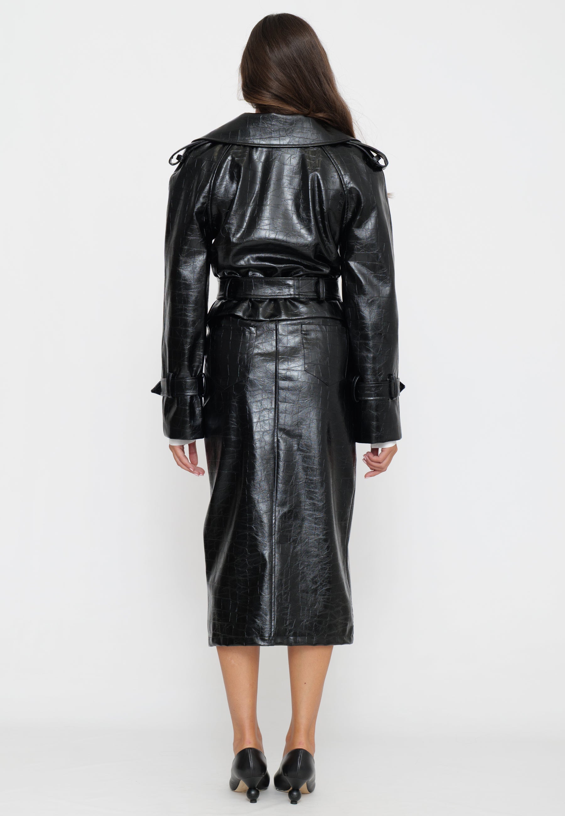 TRENCH CORTO IN ECOPELLE EFFETTO CROCO