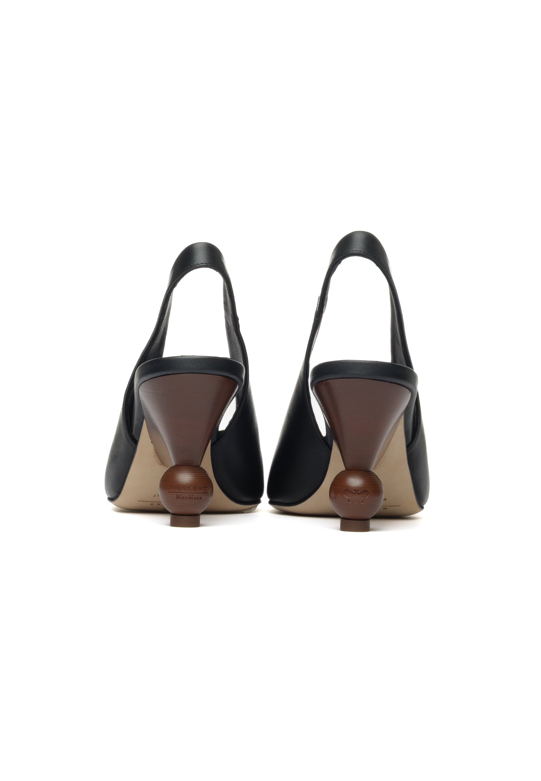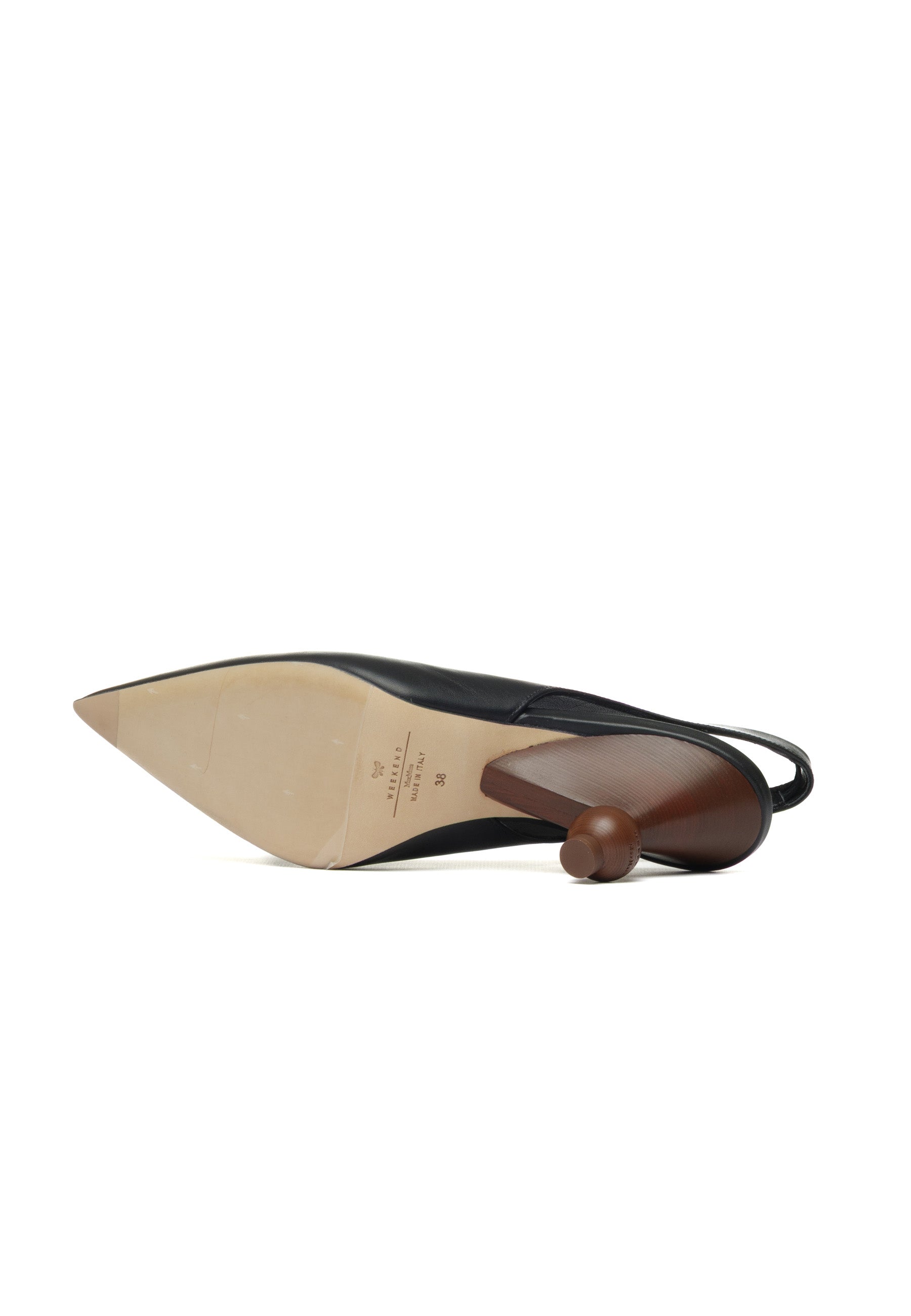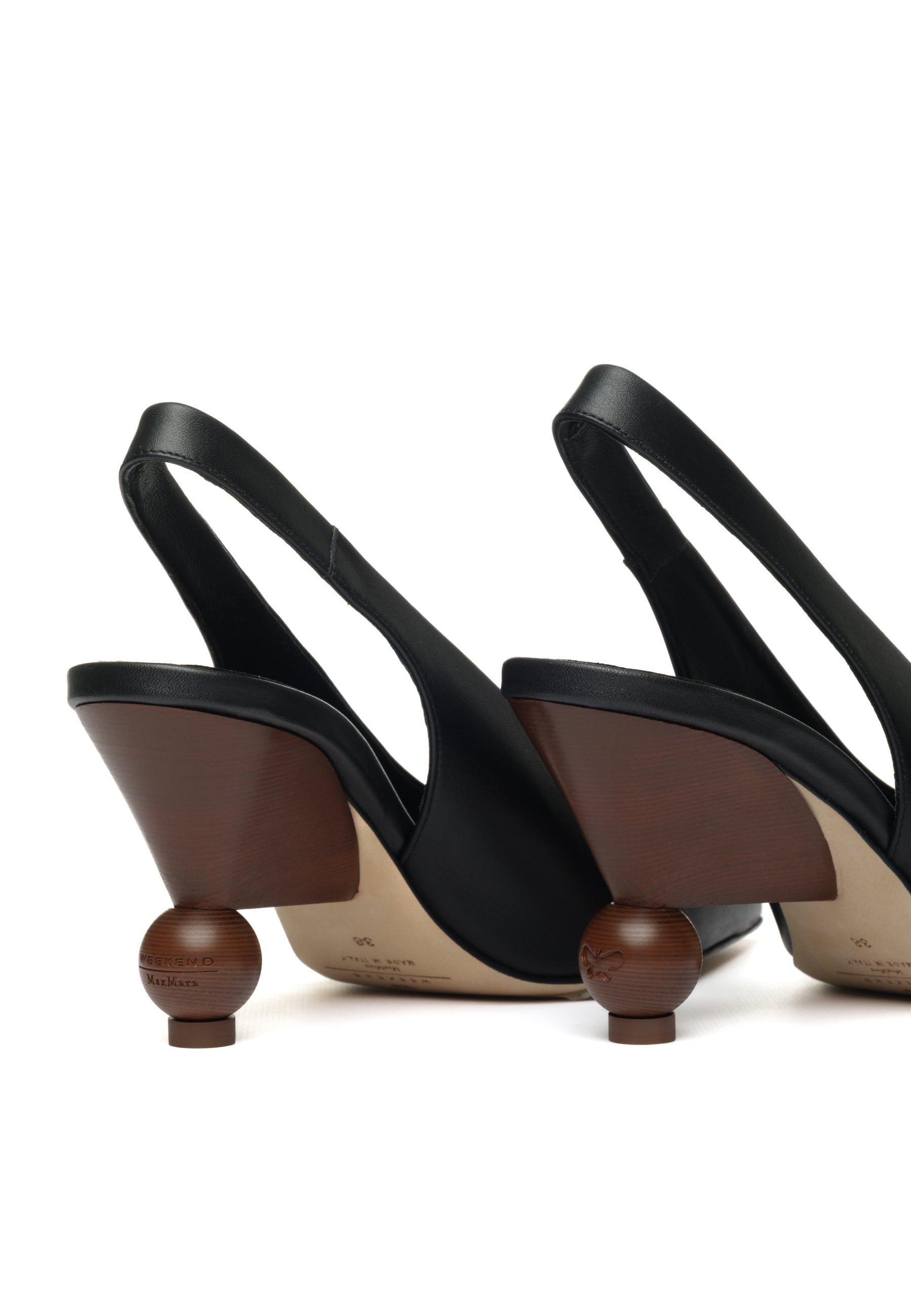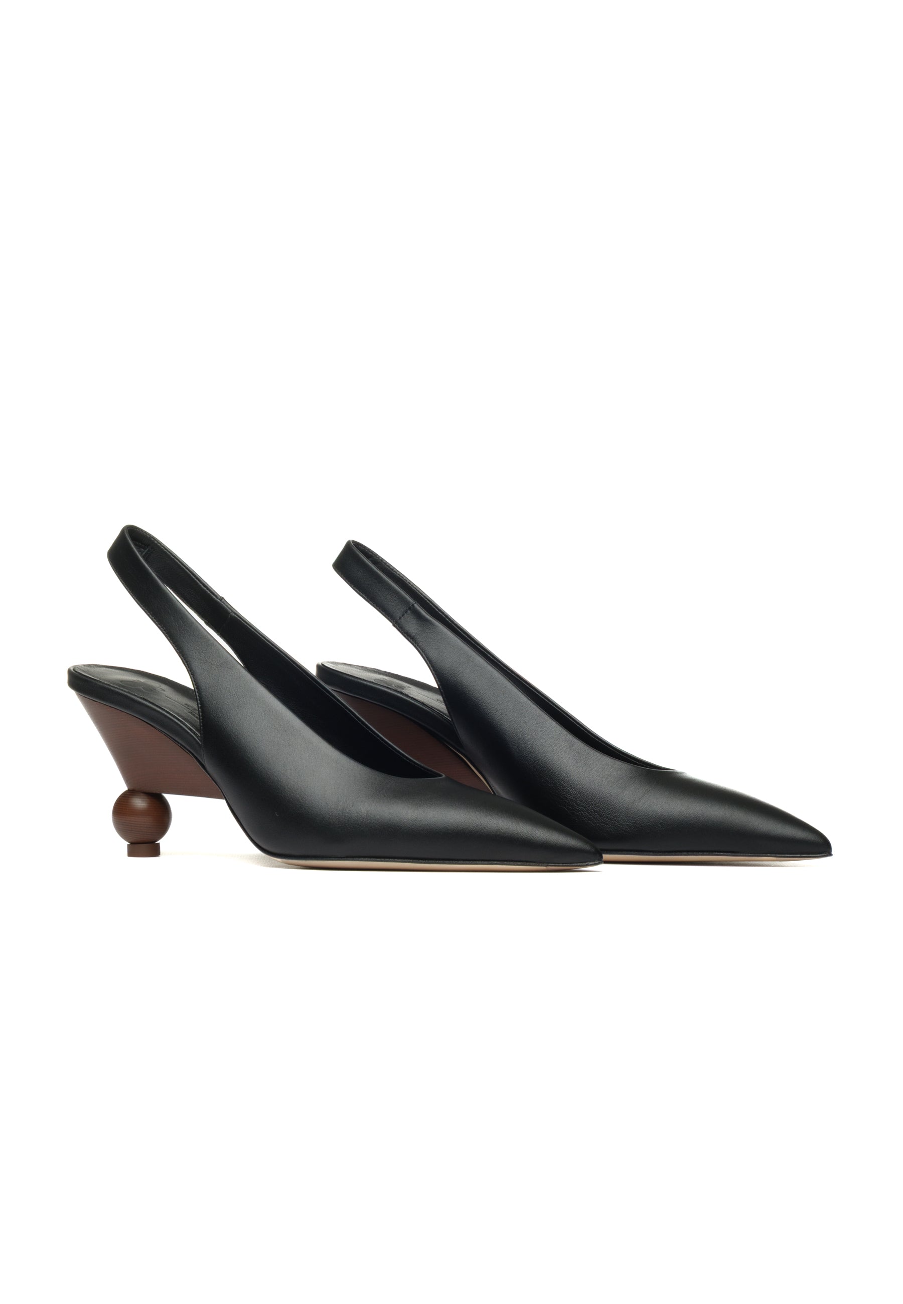Slingback in pelle di vitello con scollo a uovo montante e tacco boule da 8,5 cm, ispirato all'iconica linea Pasticcino Bag. La fodera in morbida nappa di agnello e la suola in cuoio pomiciato naturale garantiscono comfort e qualità artigianale. Design esclusivo con calzata stabile, perfetto per chi ricerca eleganza e raffinatezza nel dettaglio.