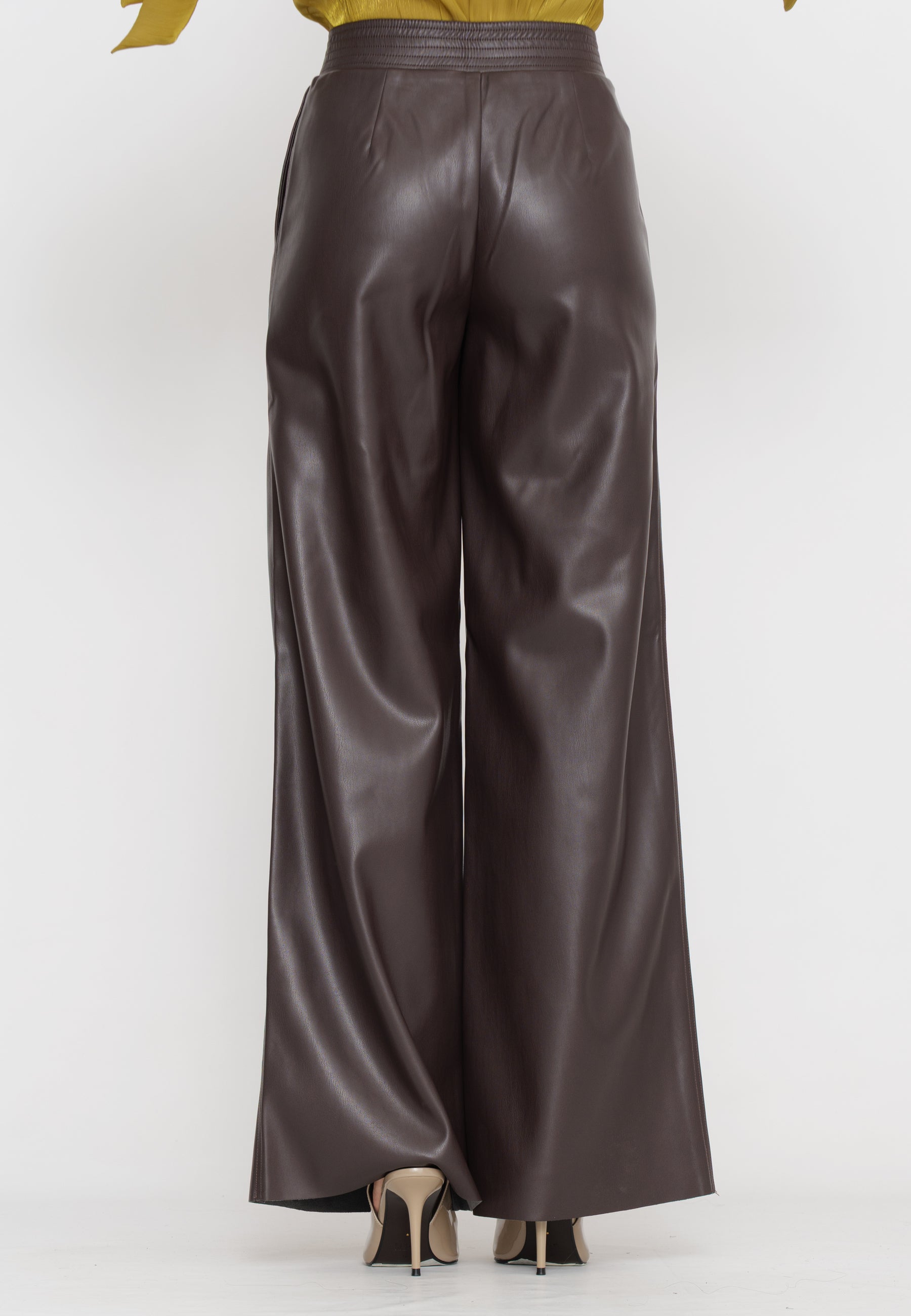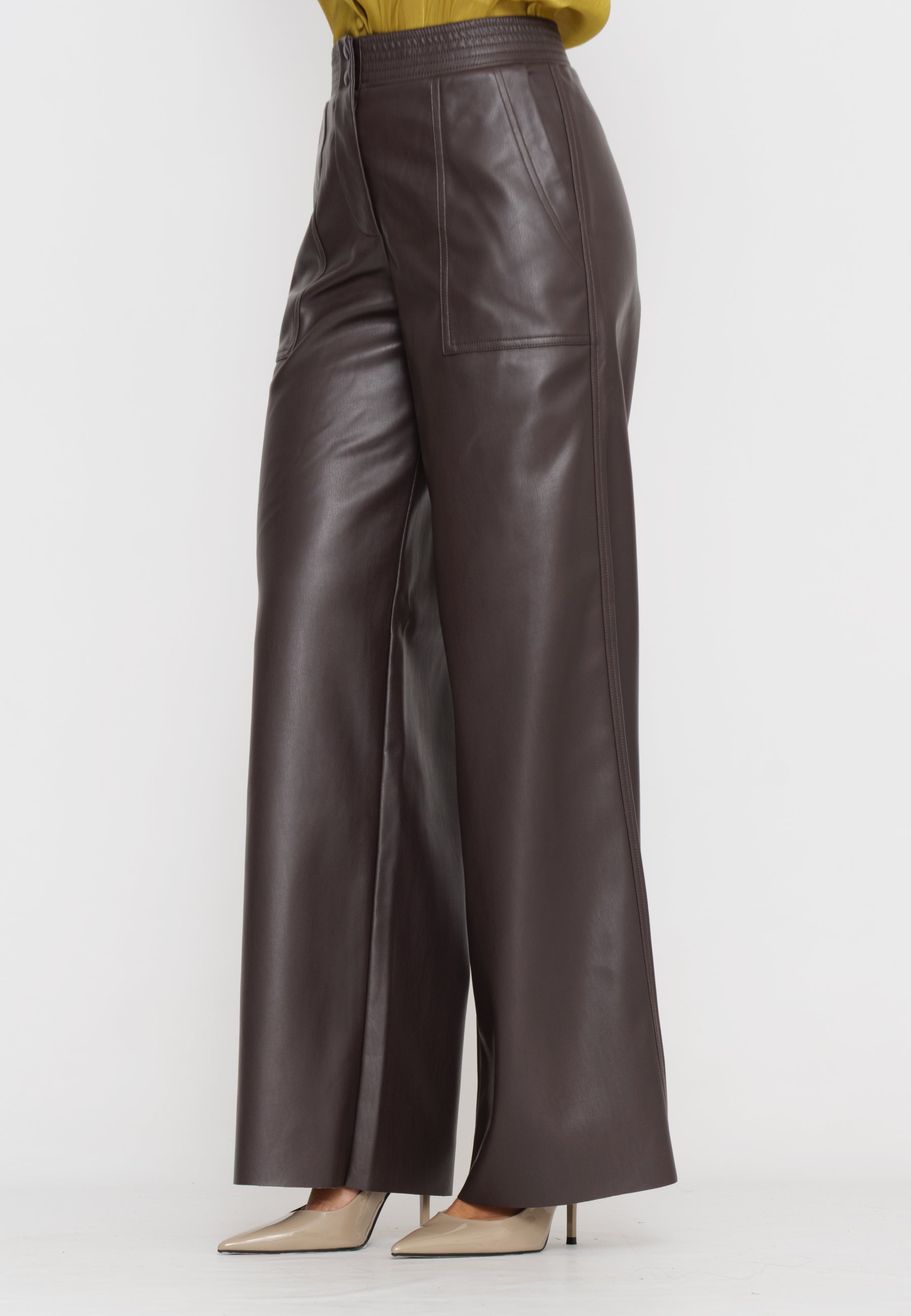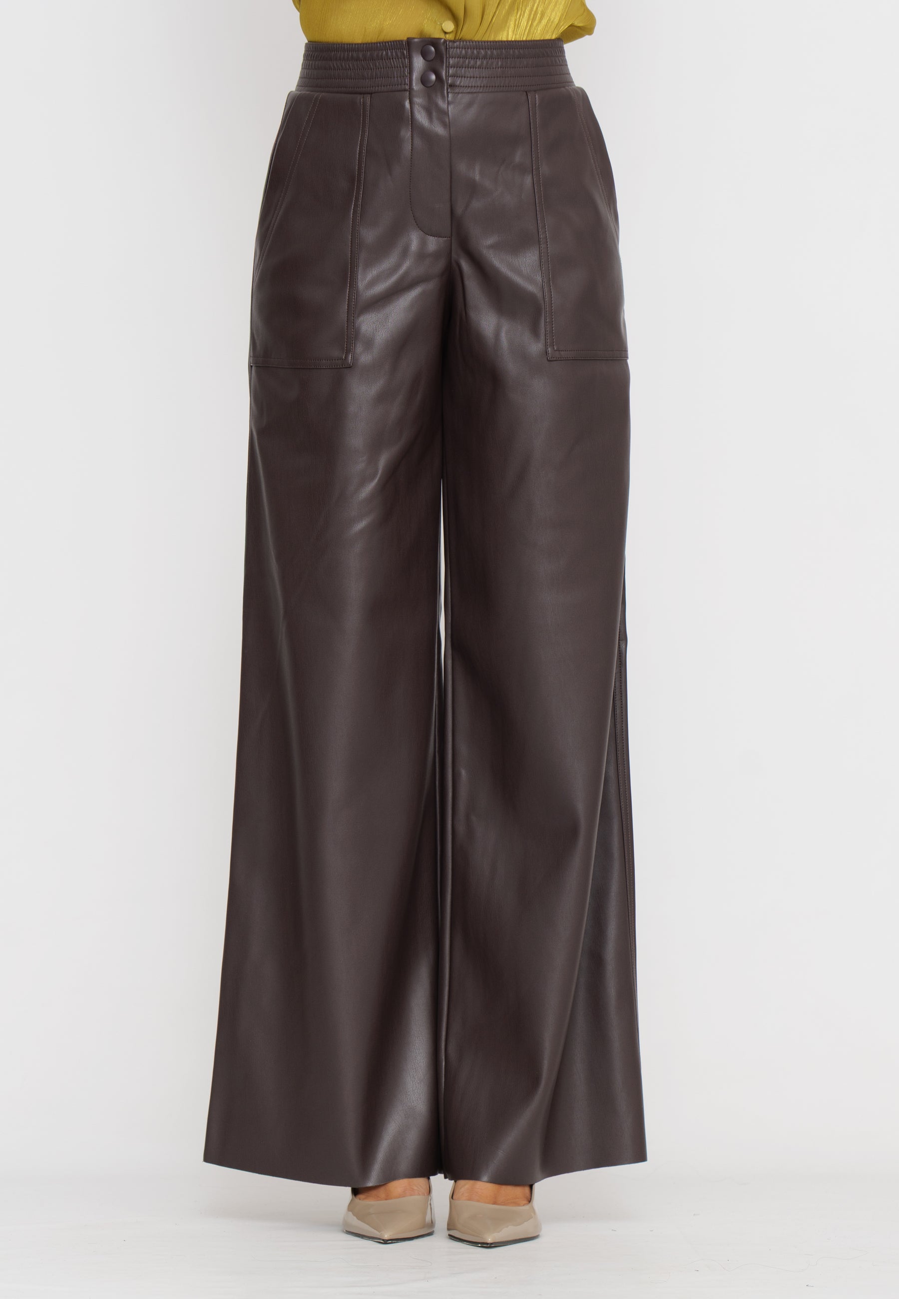 Pantaloni che uniscono stile e sostenibilità grazie all'elegante ecopelle e al taglio a gamba larga. Questo design offre comfort e una silhouette moderna, ideale per occasioni formali o look casual raffinati. Perfetti per chi cerca un capo versatile che abbina tendenza e responsabilità ambientale.